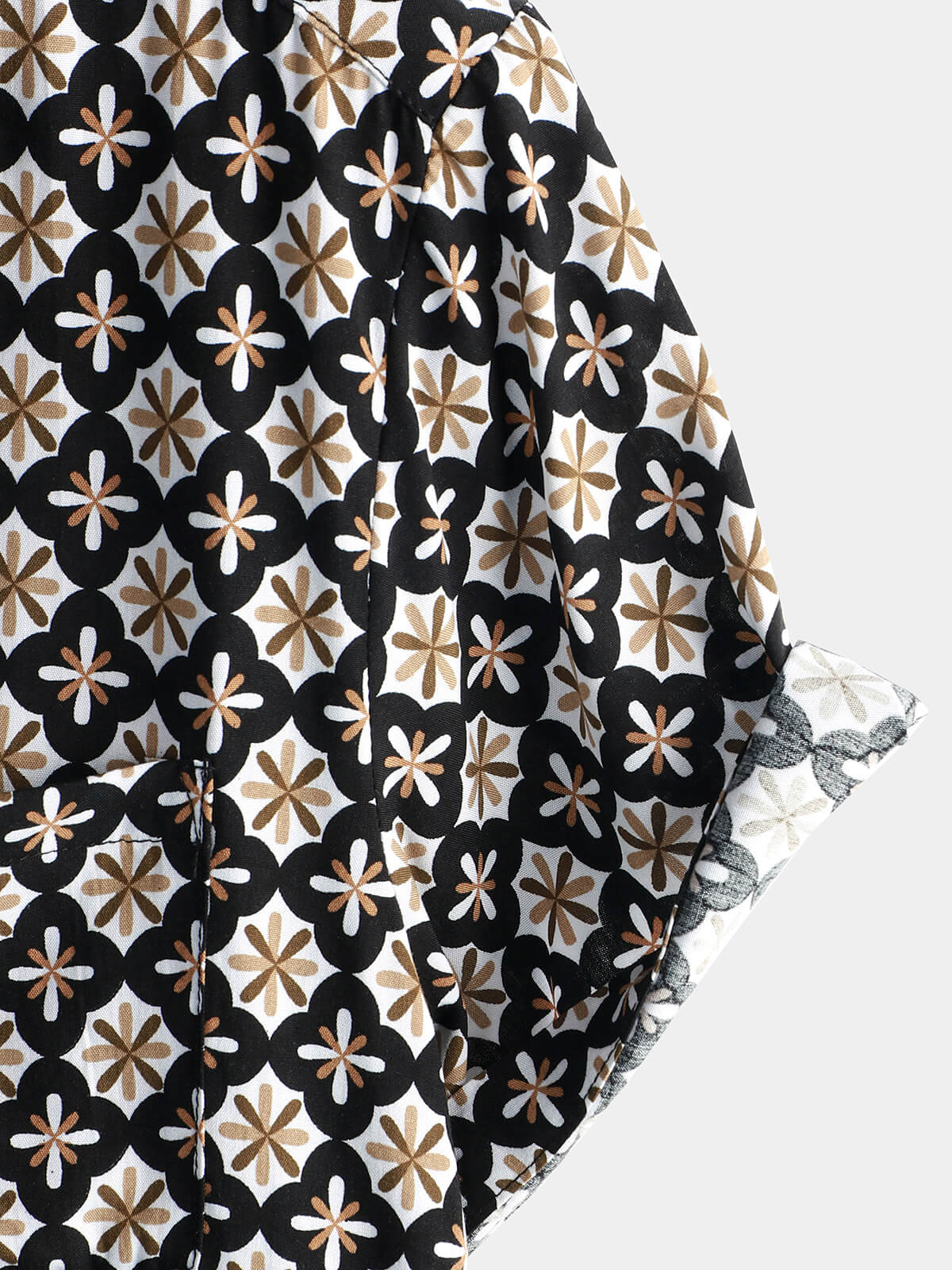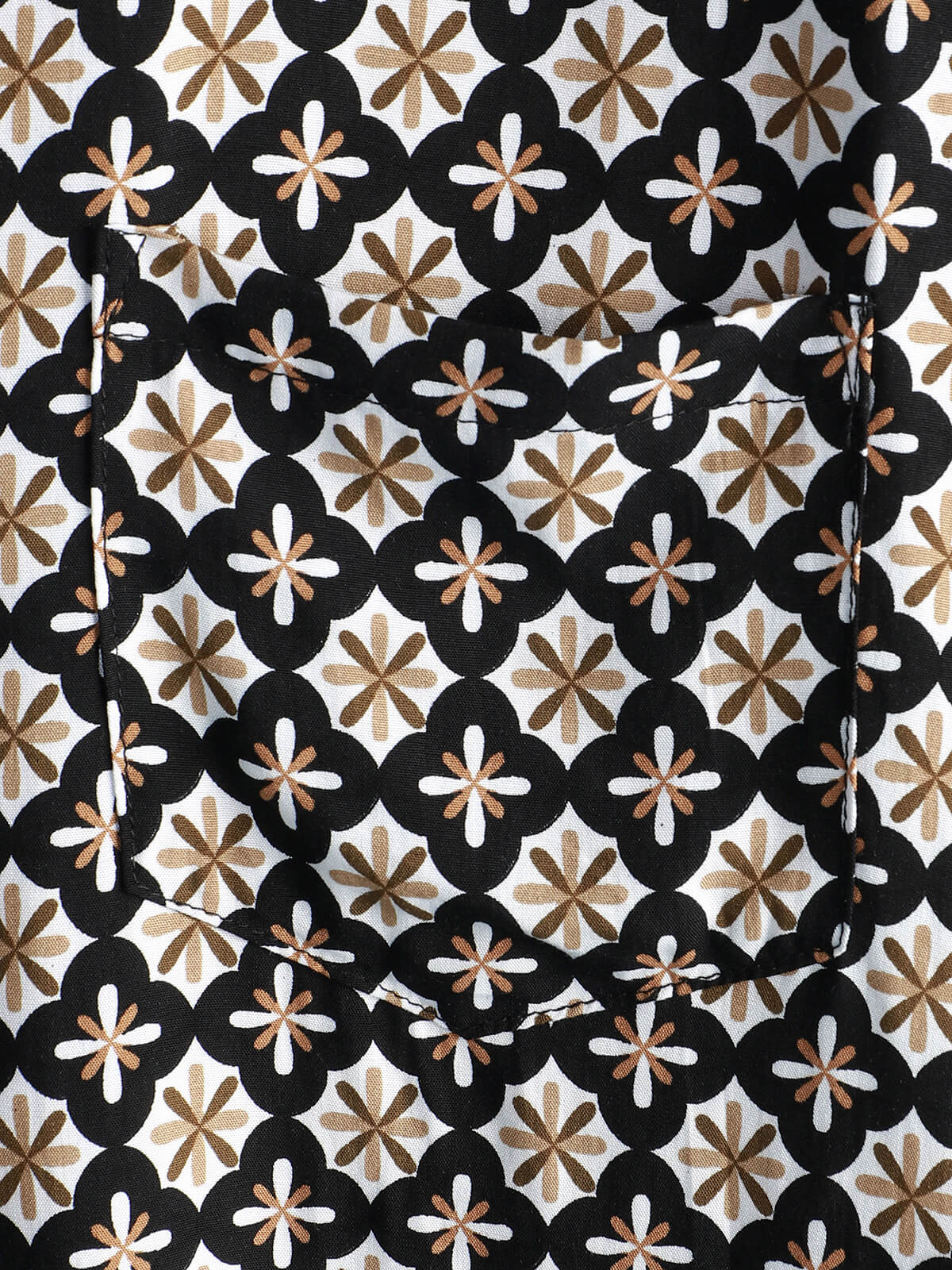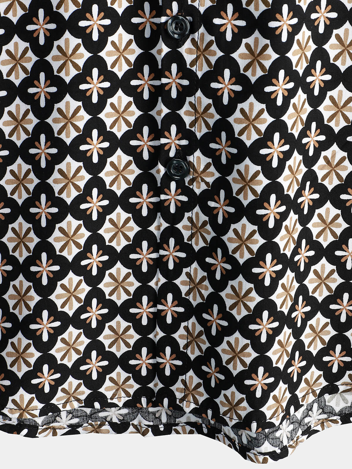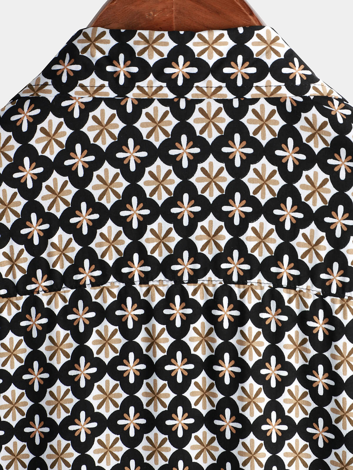 Men's Black Button Summer Beach Short Sleeve Shirt