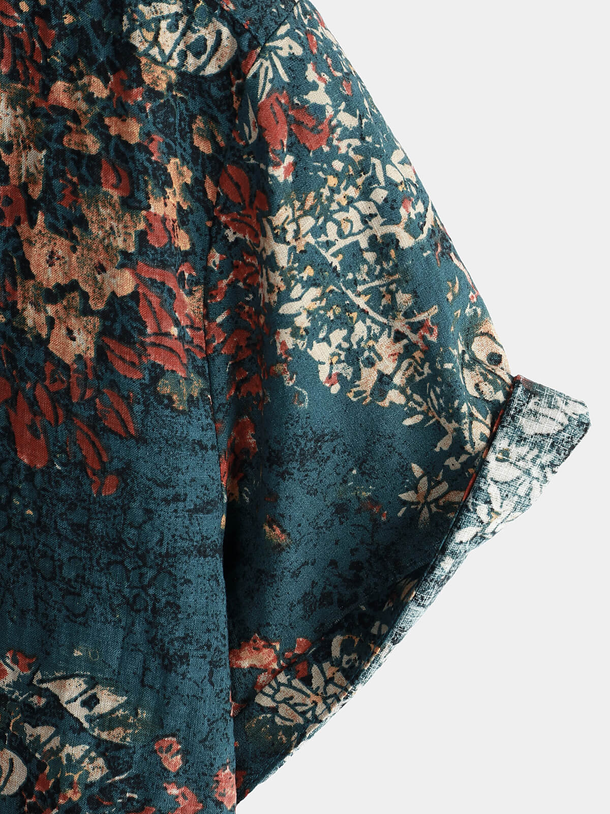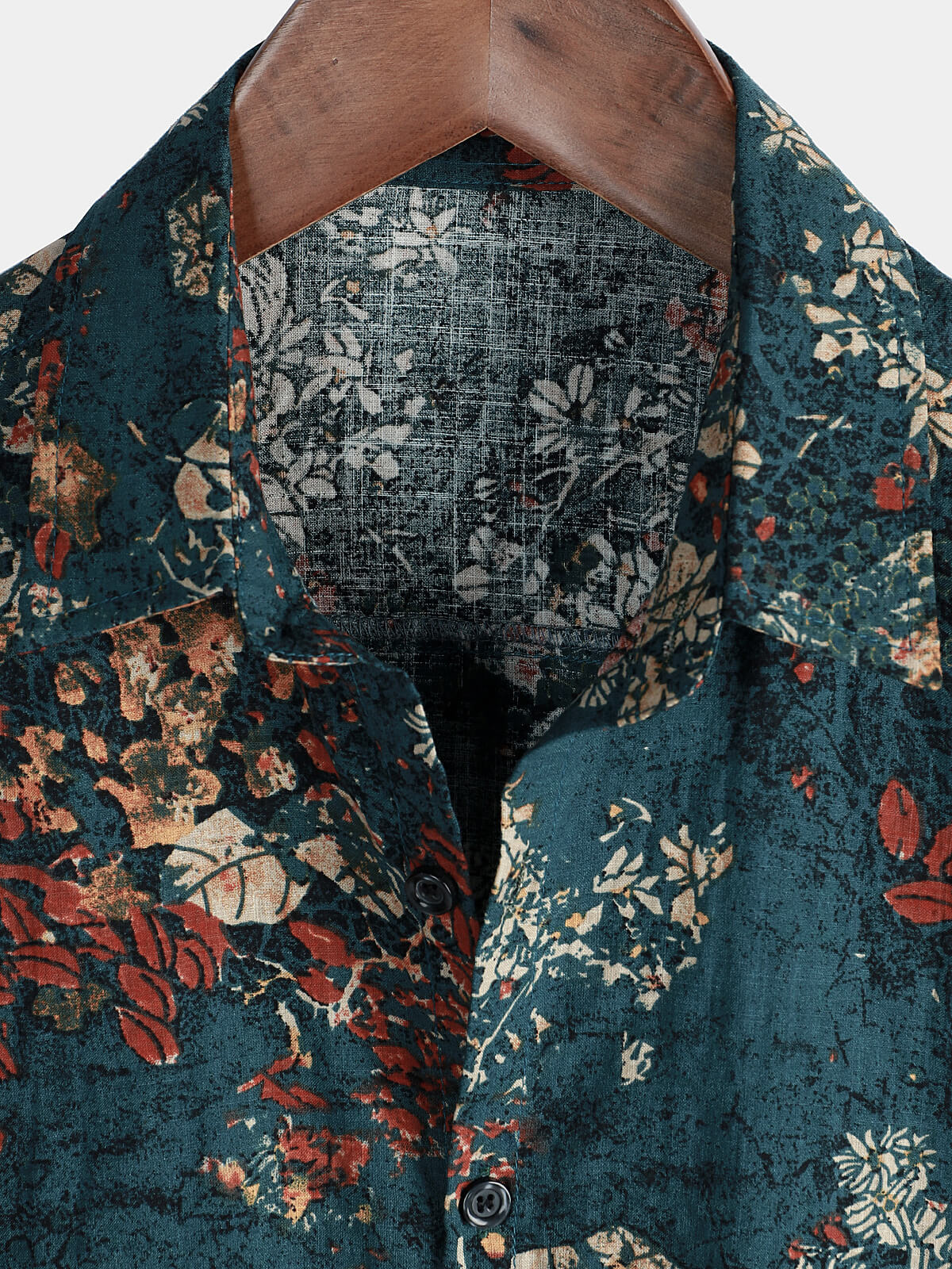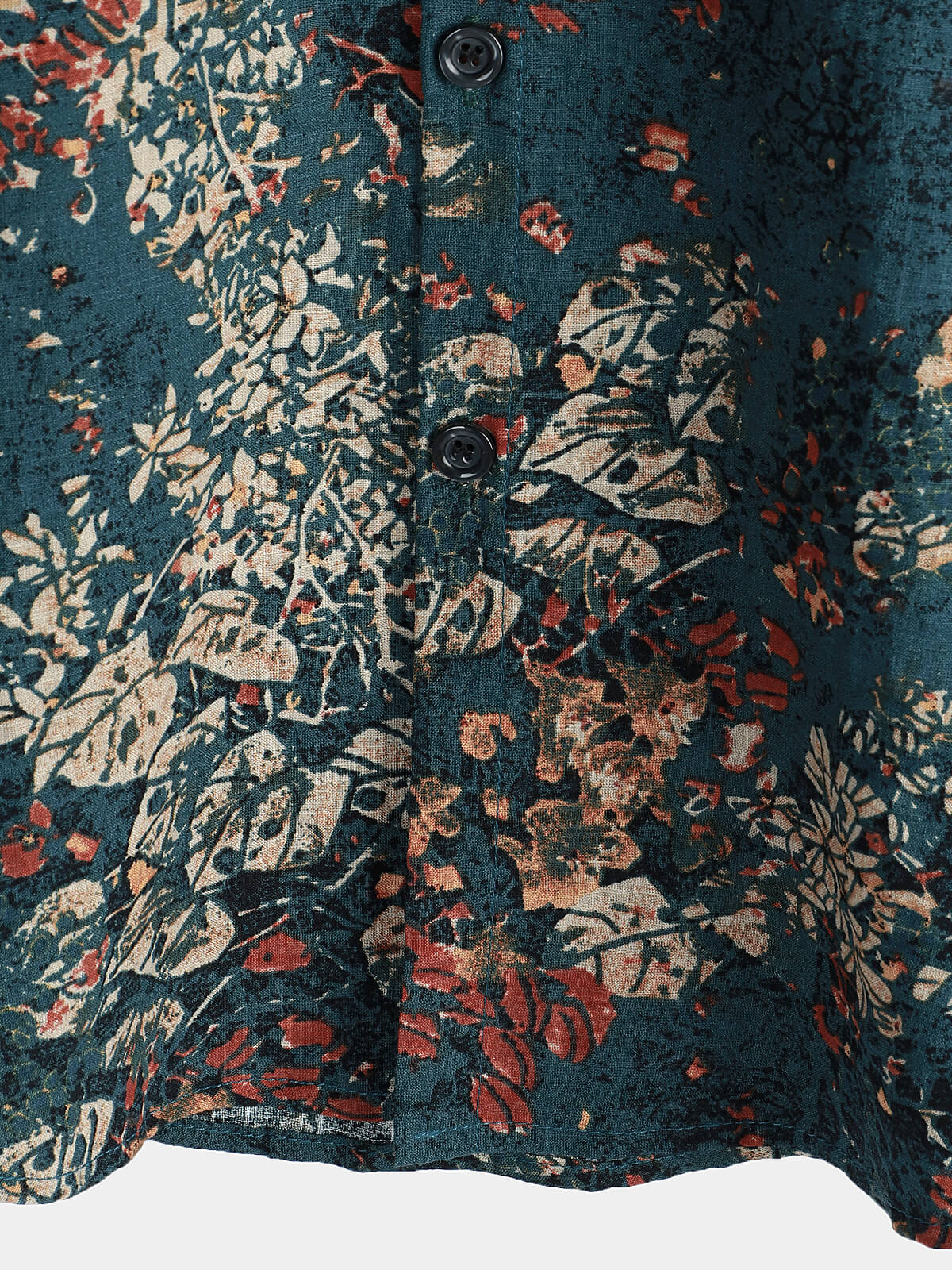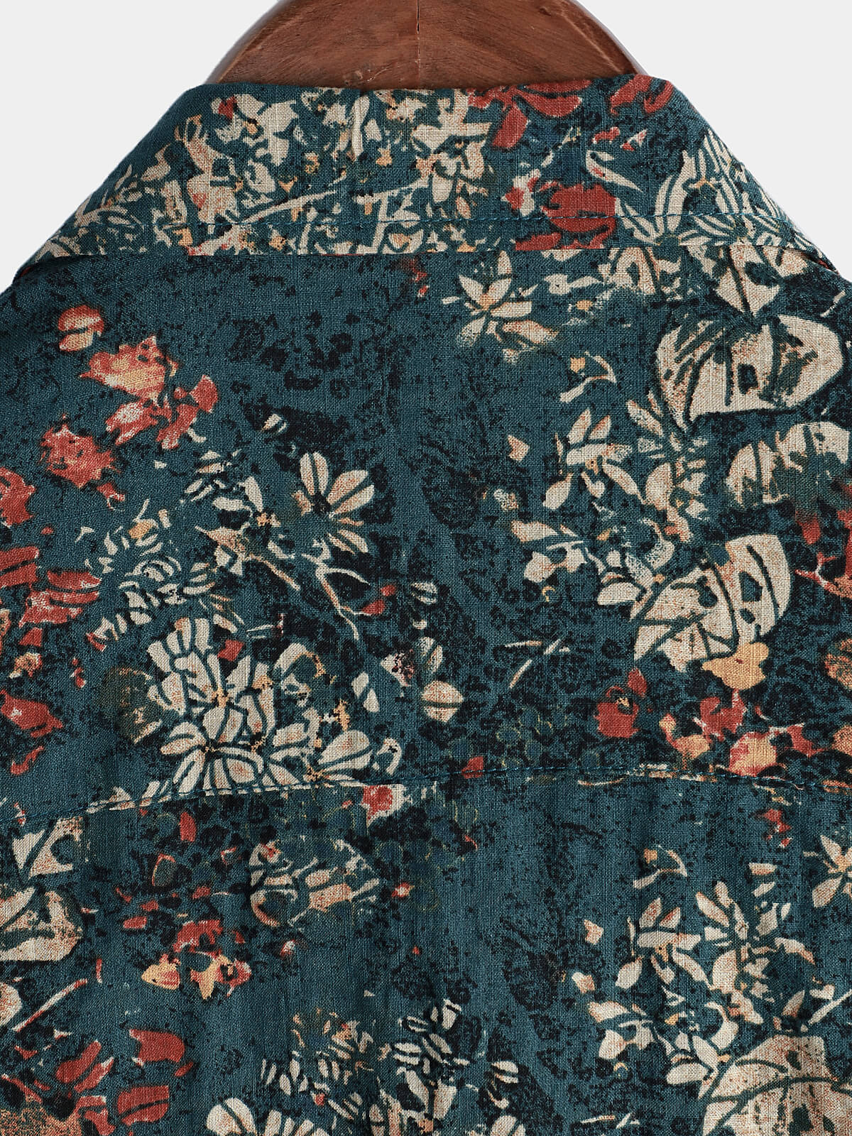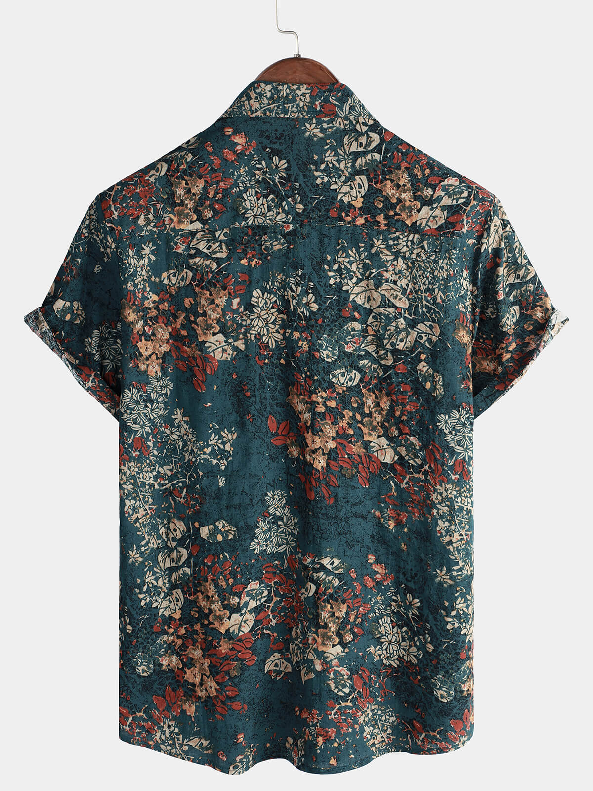 Men's Vintage Holiday Retro Cotton Floral Button Up Short Sleeve Shirt