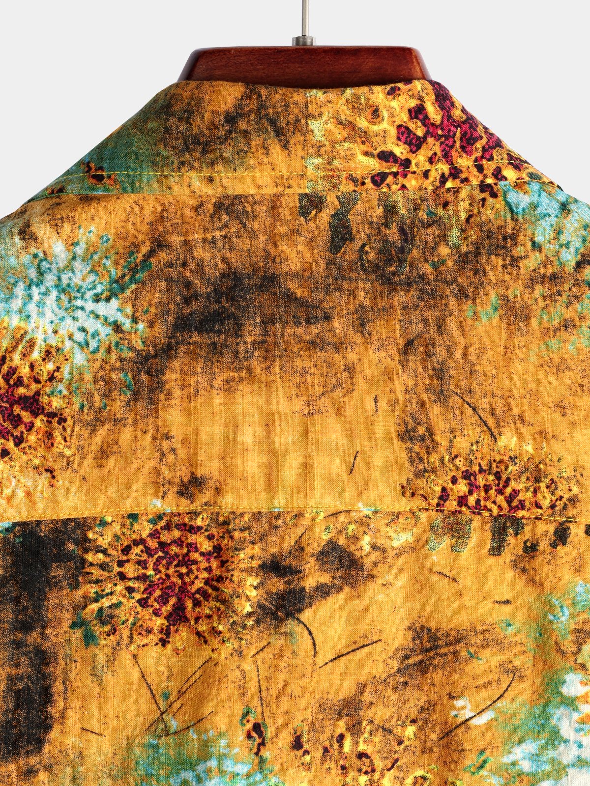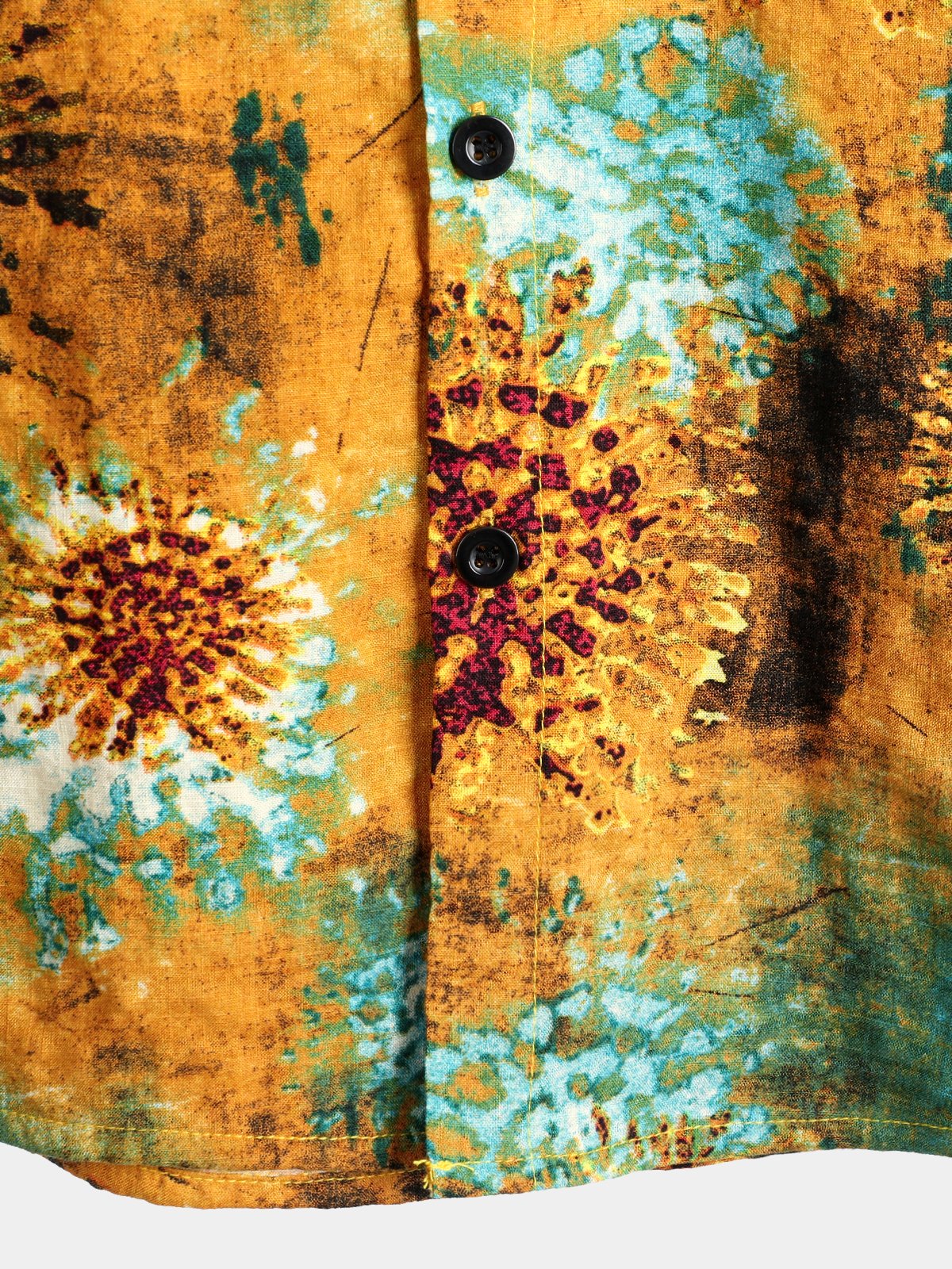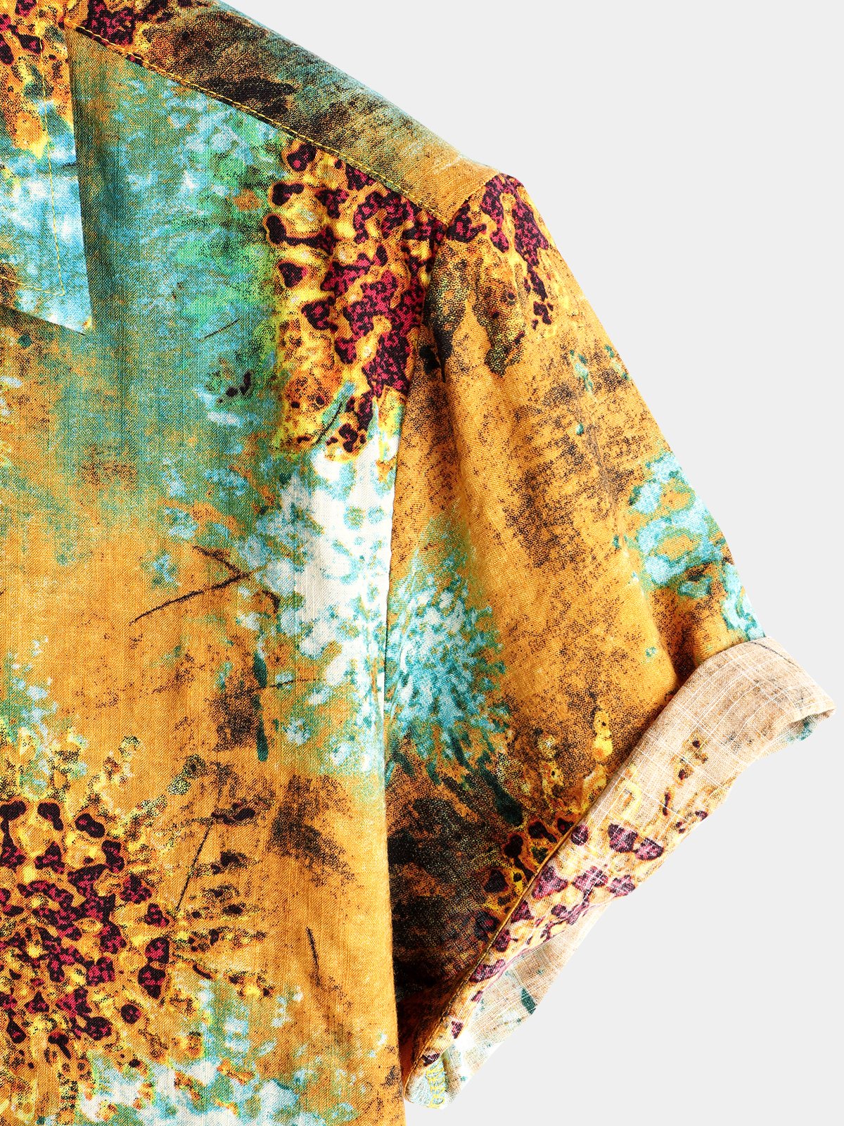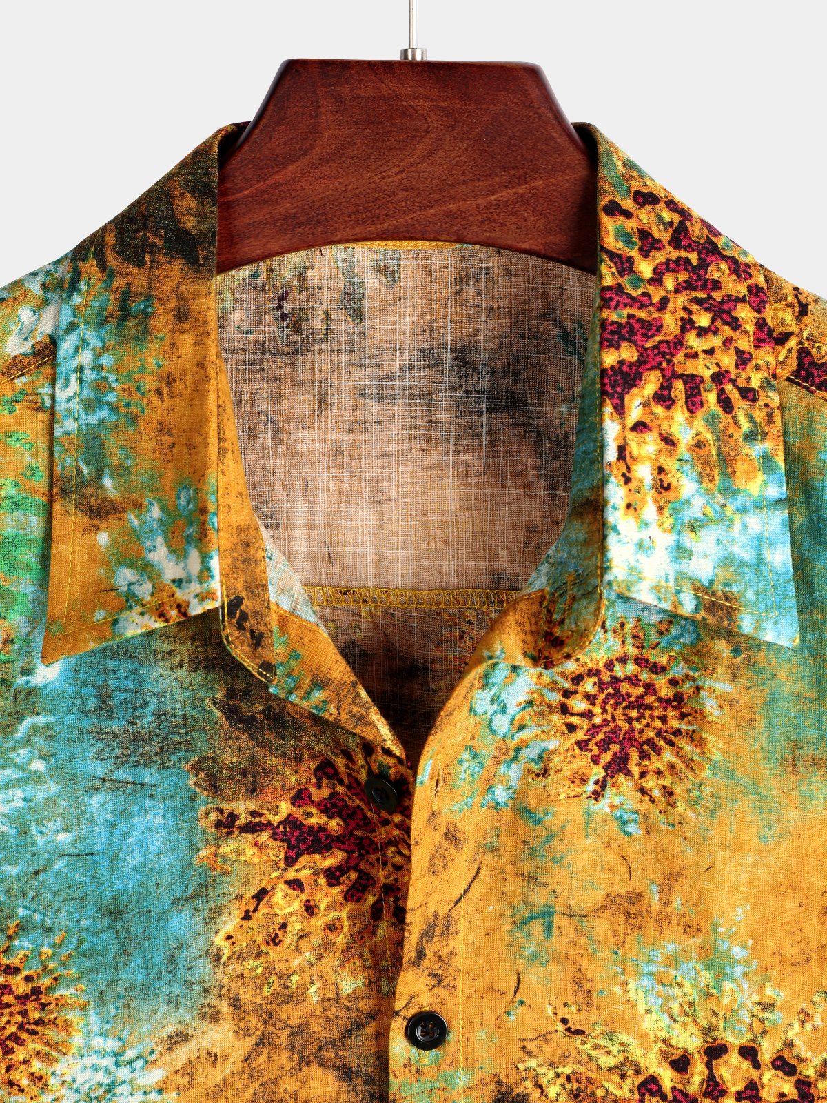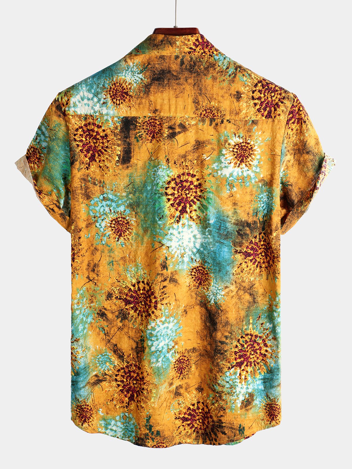 Men's Yellow Vintage Cotton Casual Retro Short Sleeve Shirt