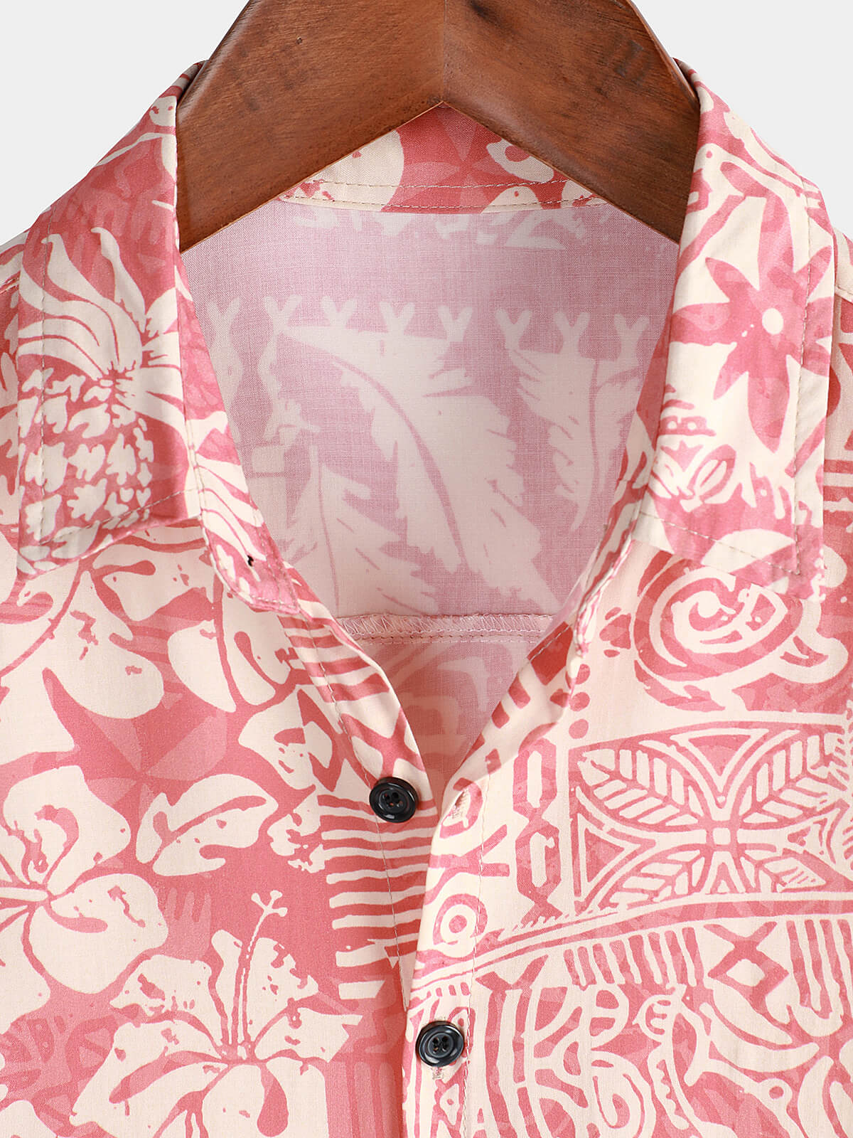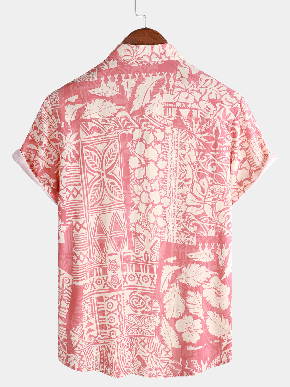 Men's Pink Tropical Floral Holiday Hawaiian Short Sleeve Button Up Shirt