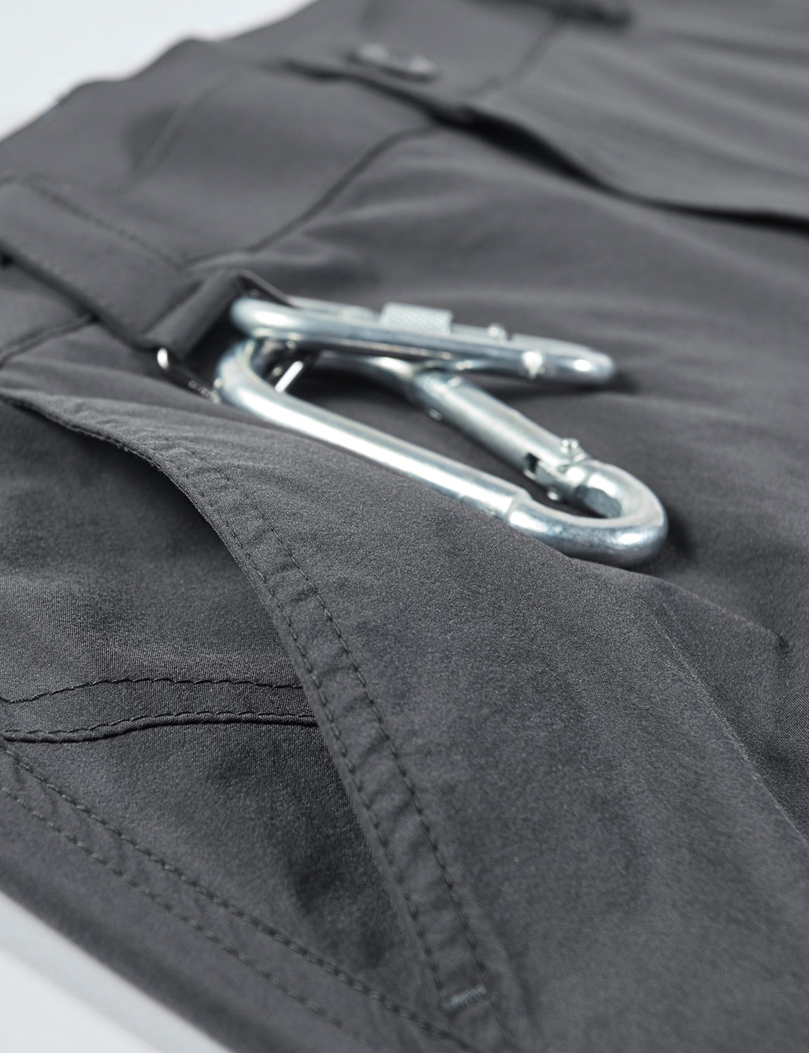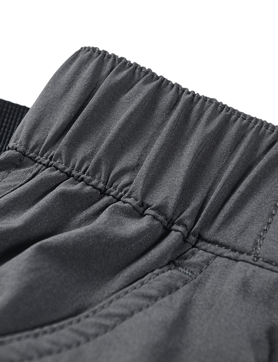 - Elastic waistband with inner drawcord and durable belt buckle for an adjustable fit