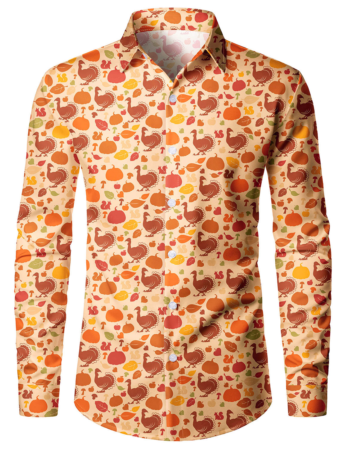 Men's Funny Thanksgiving Turkey Day Fall Festival Holiday Button Long Sleeve Shirt