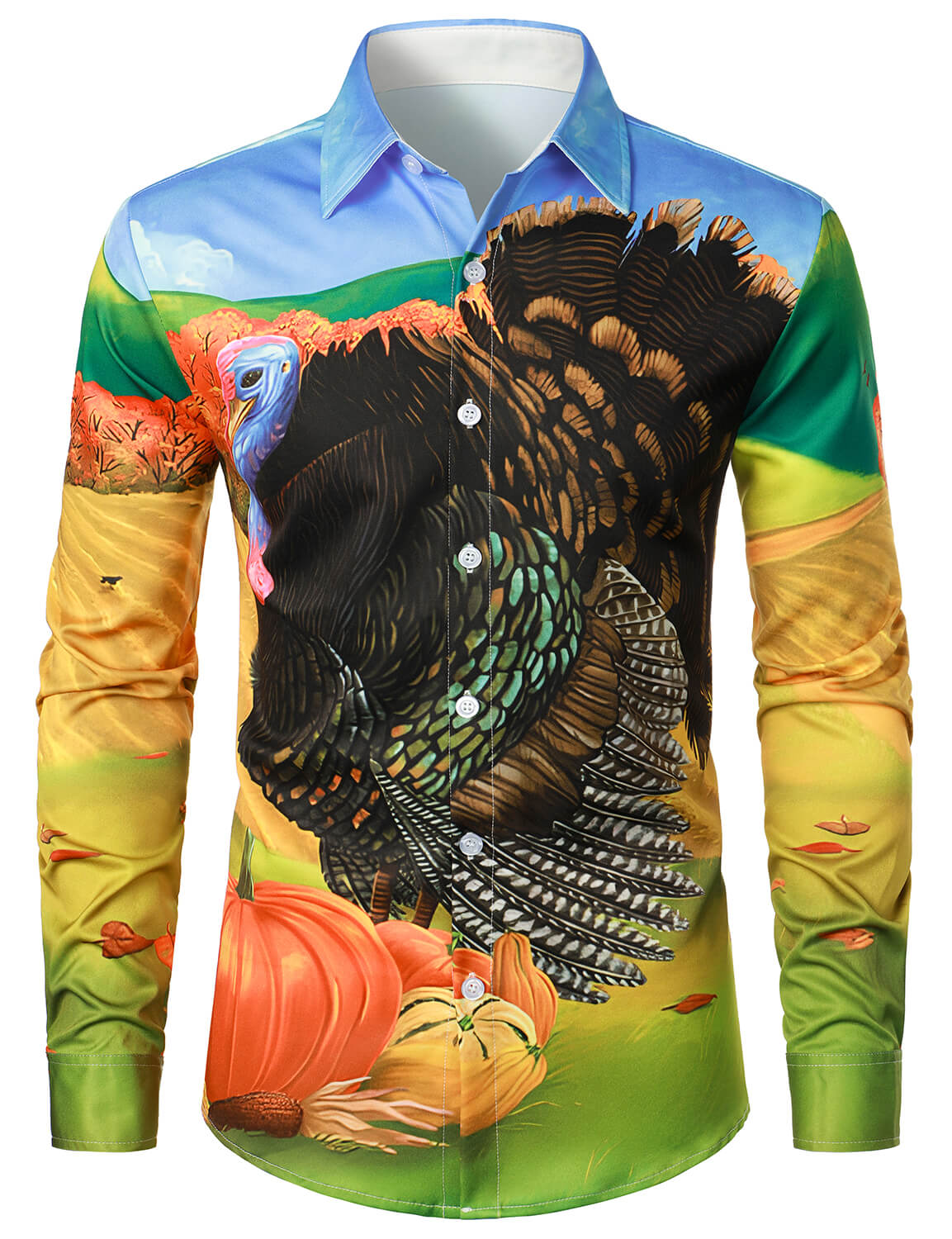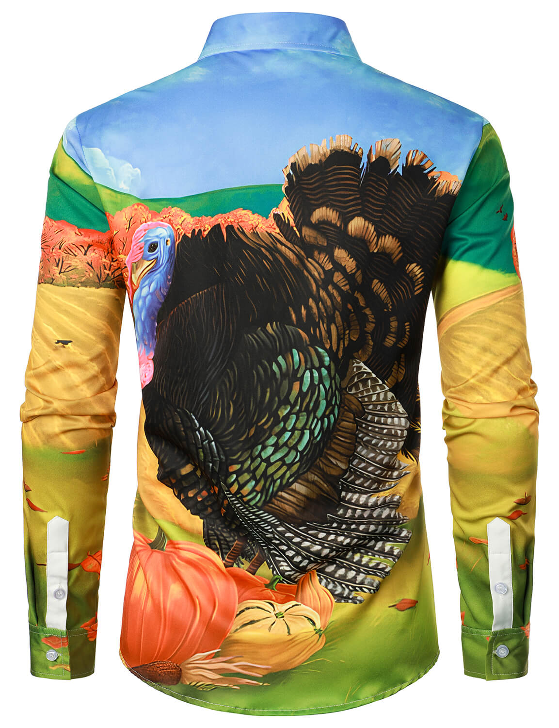 Men's Thanksgiving Day Festival Turkey Button Long Sleeve Shirt