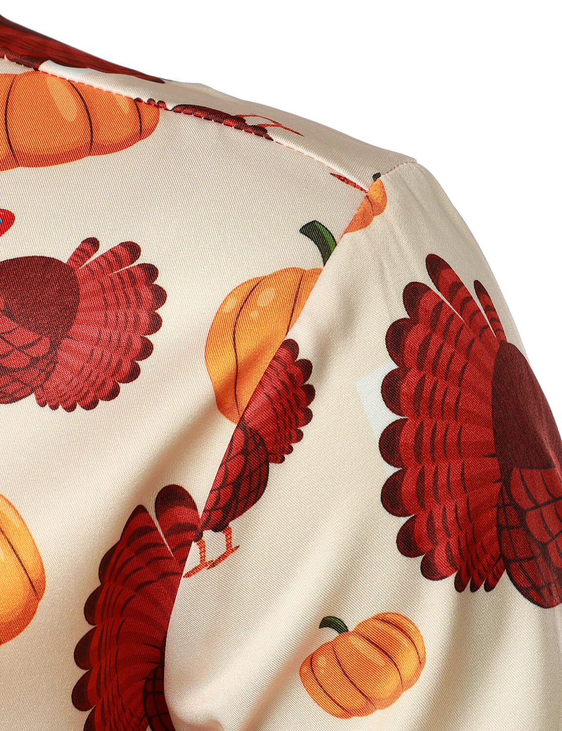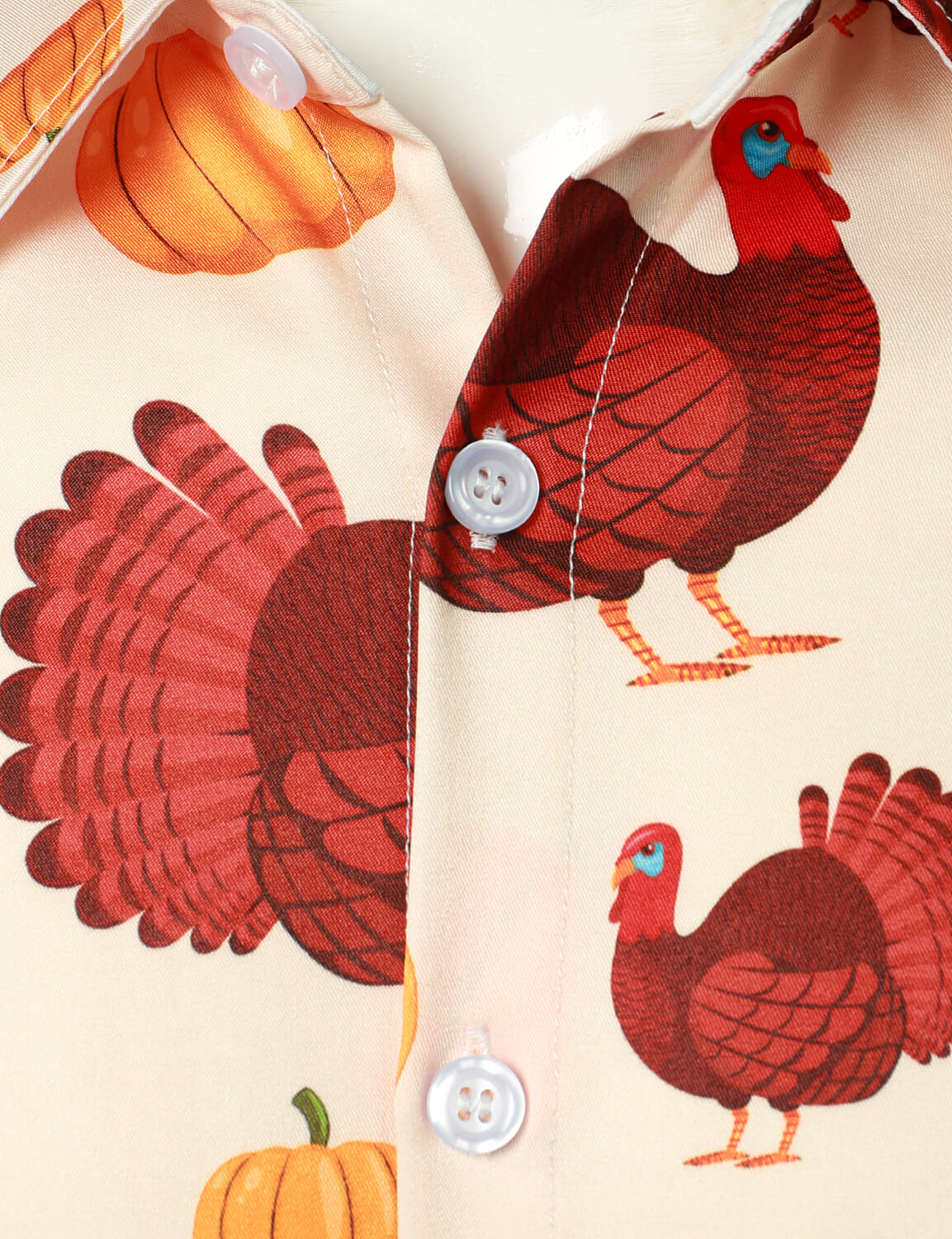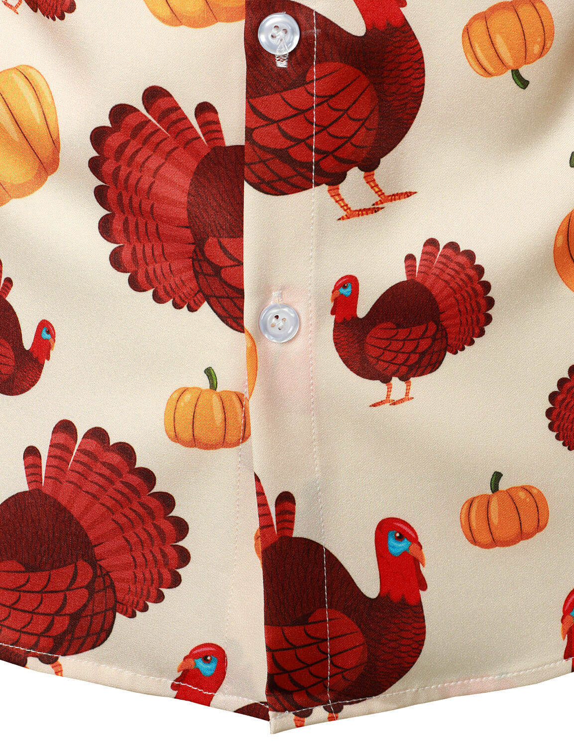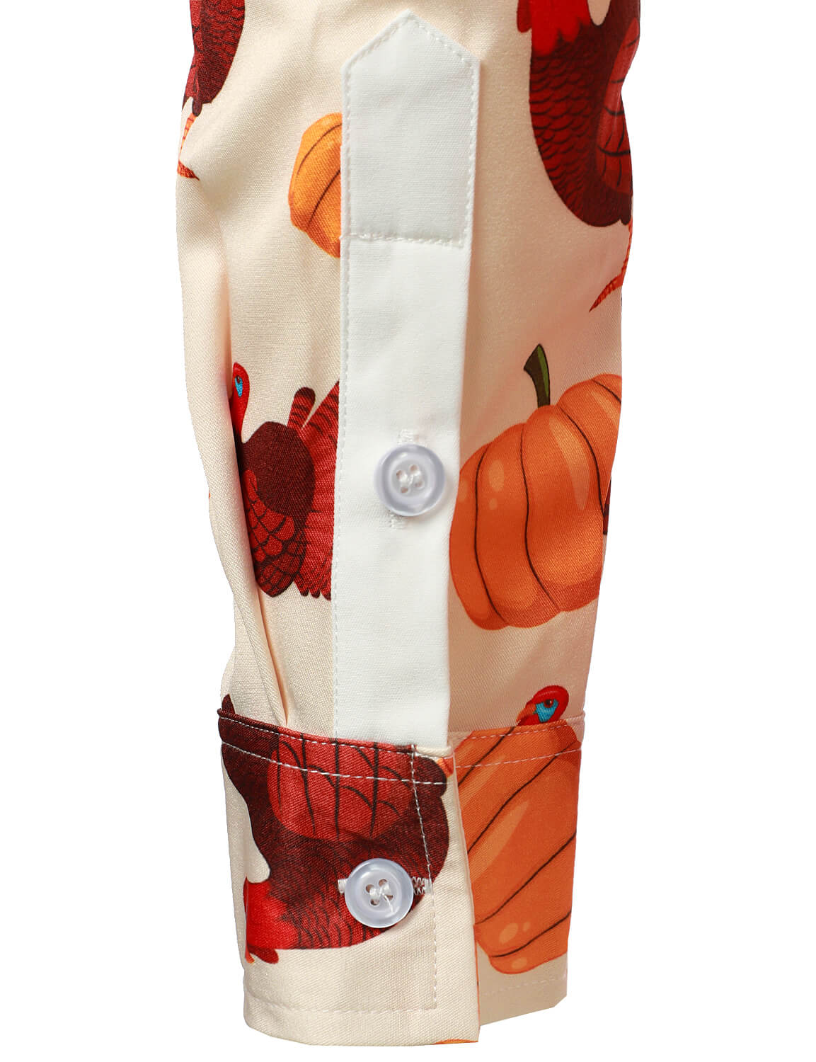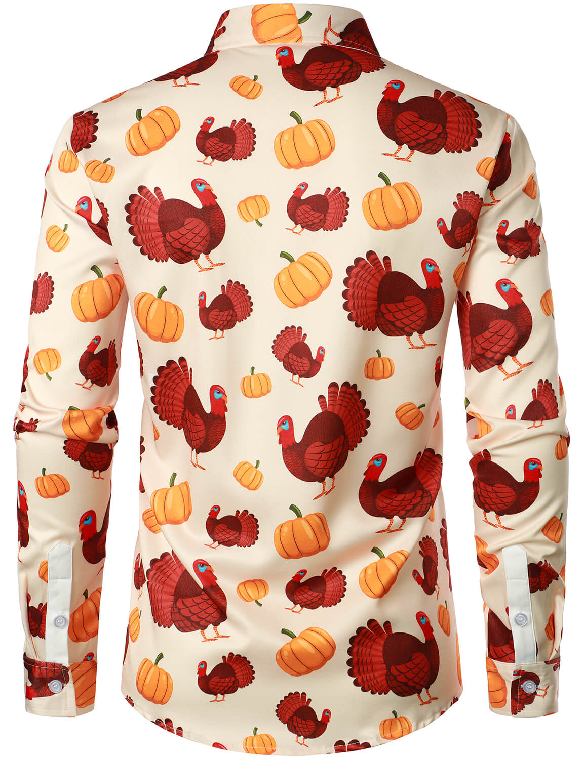 Men's Thanksgiving Holiday Funny Turkey Pumpkin Button Long Sleeve Shirt