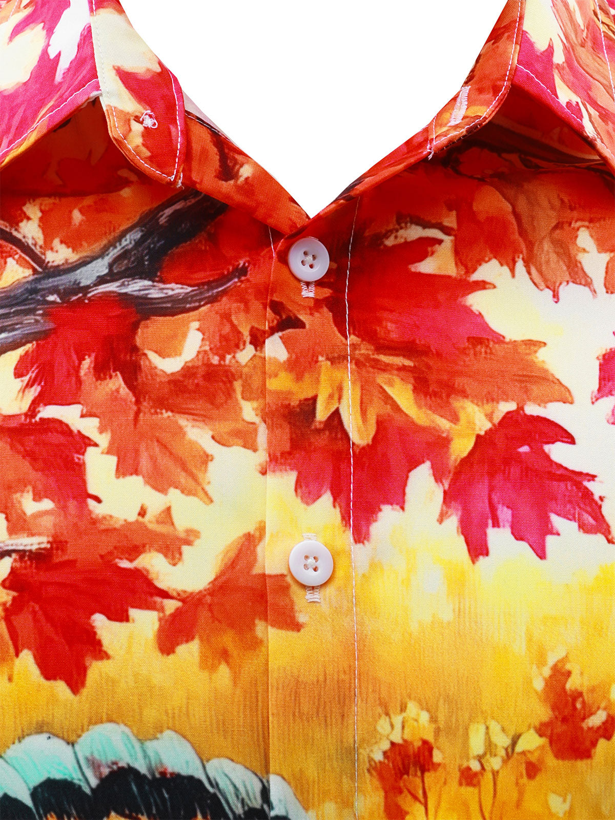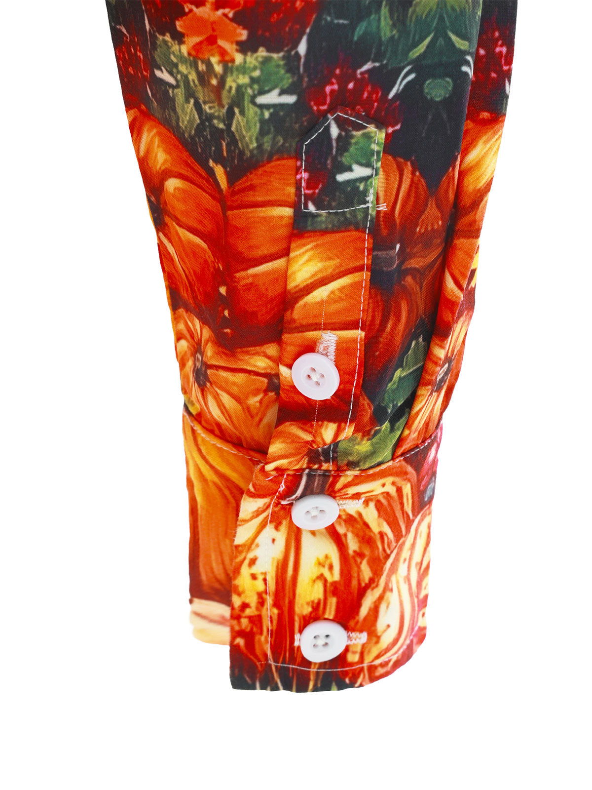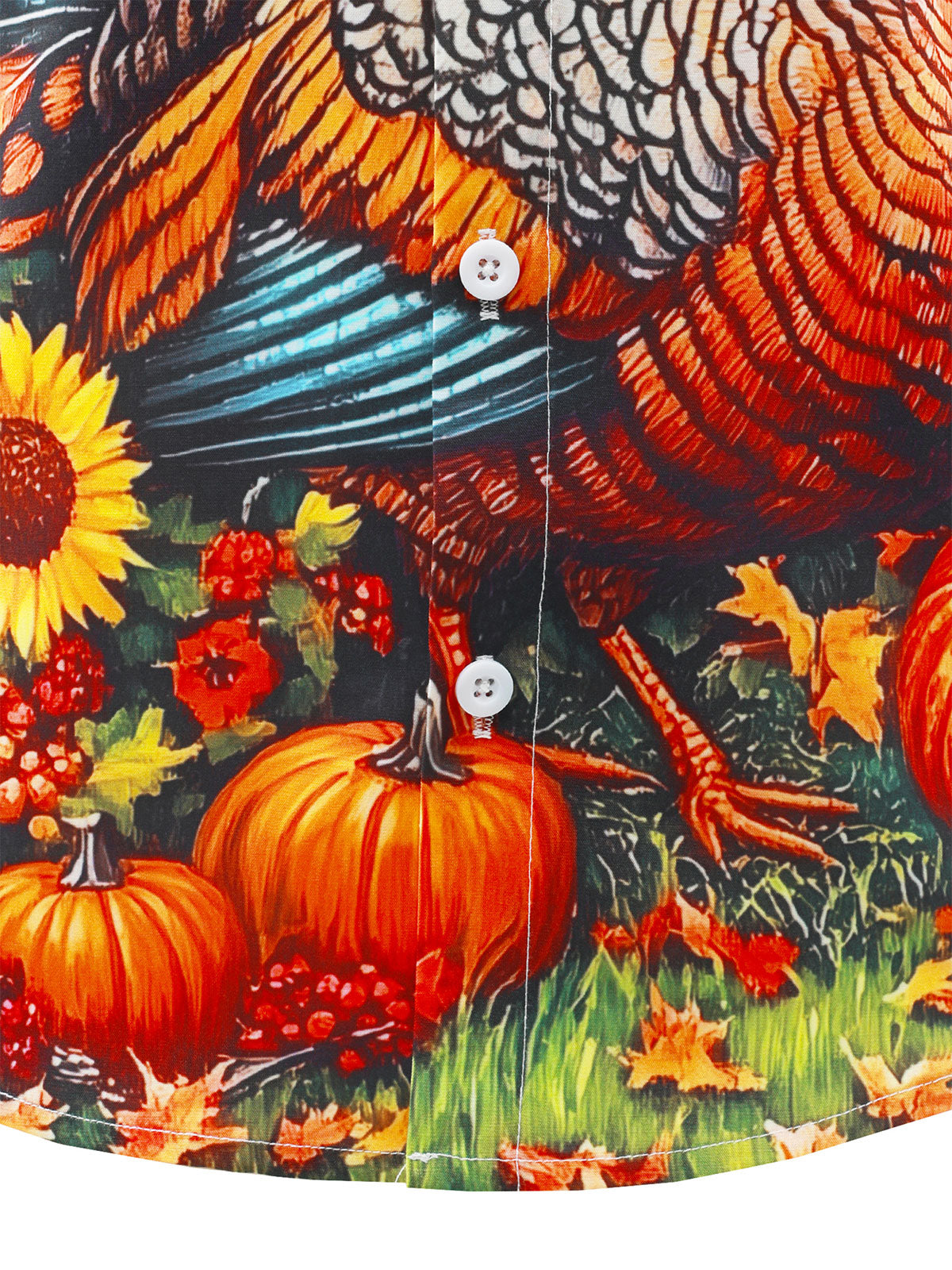 Men's Thanksgiving Pumpkin Turkey Holiday Button Long Sleeve Shirt