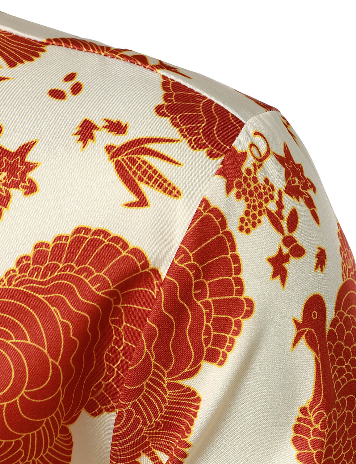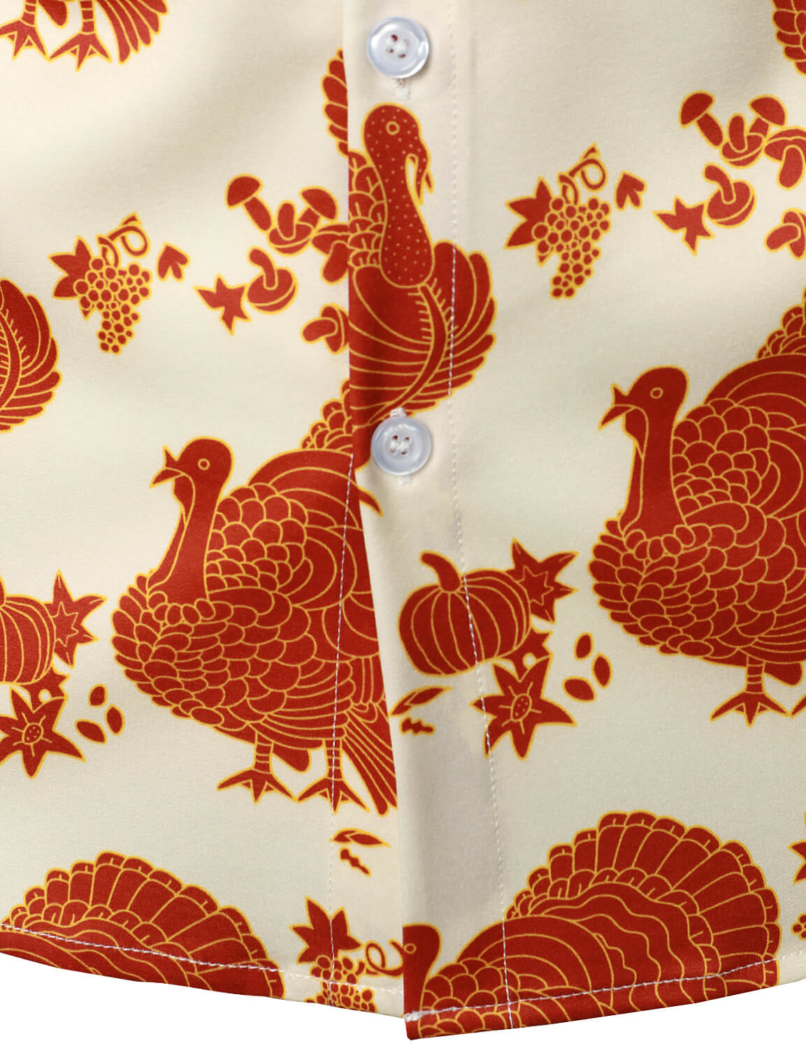 Men's Thanksgiving Turkey Day Fall Festival Gift Funny Holiday Button Long Sleeve Shirt