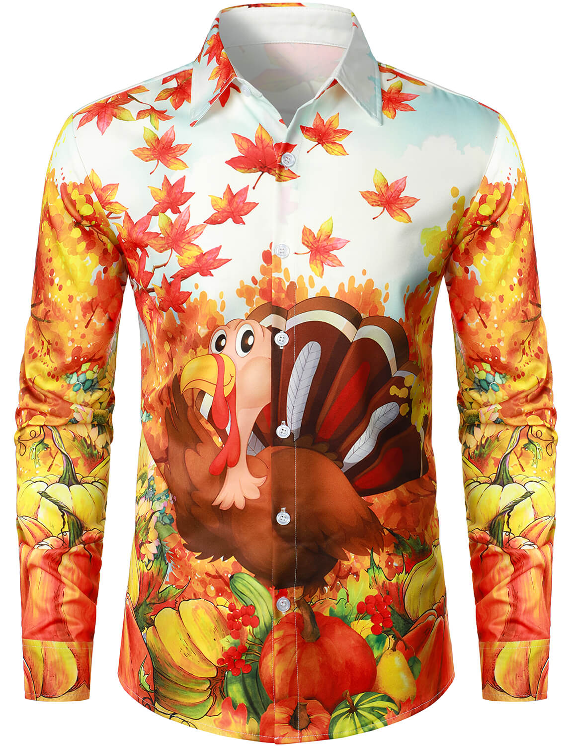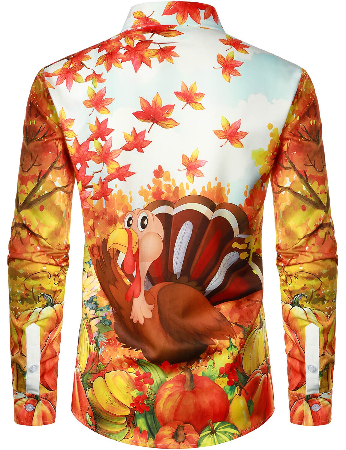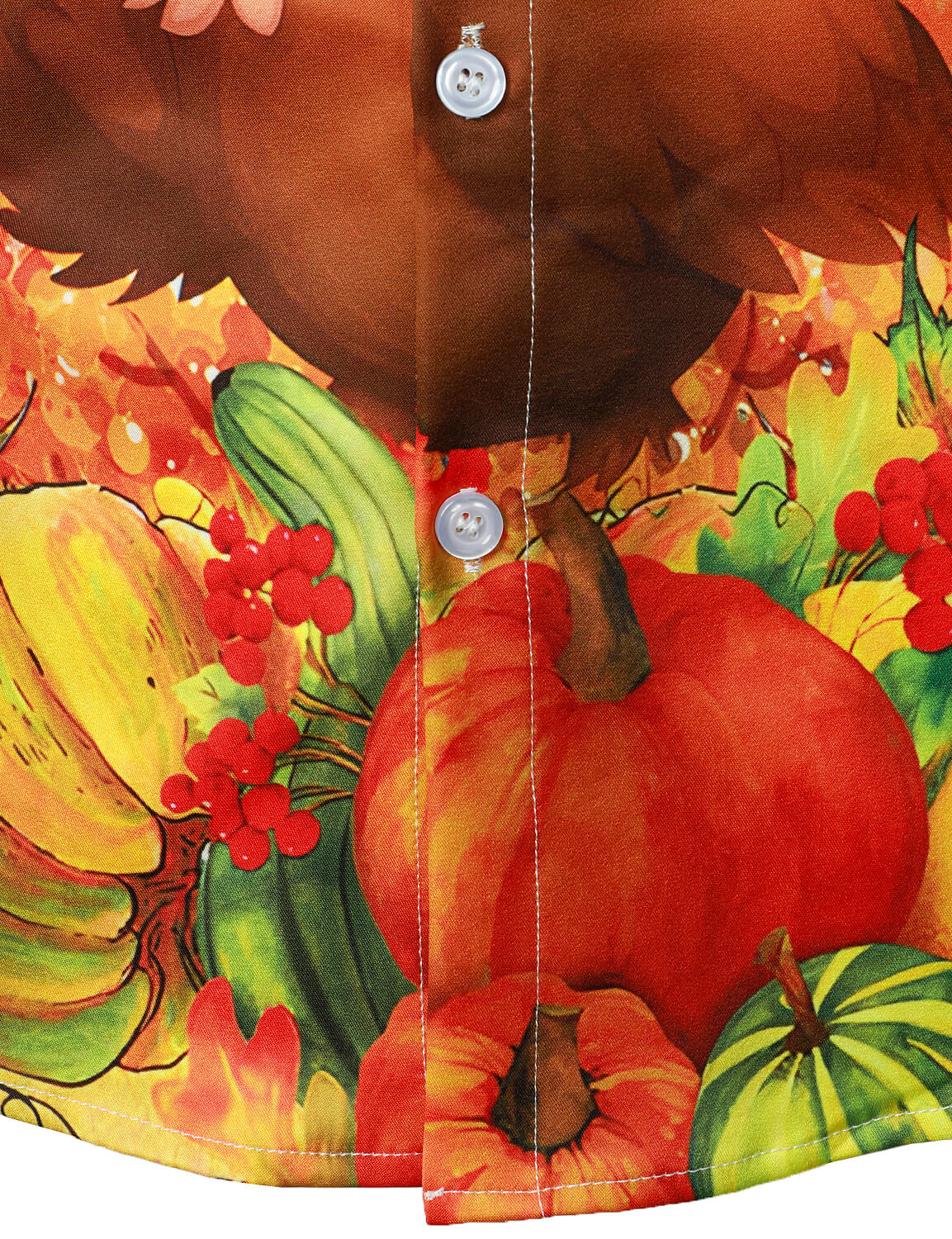Men's Turkey Thanksgiving Fall Festival Pumpkin Holiday Button Up Long Sleeve Shirt