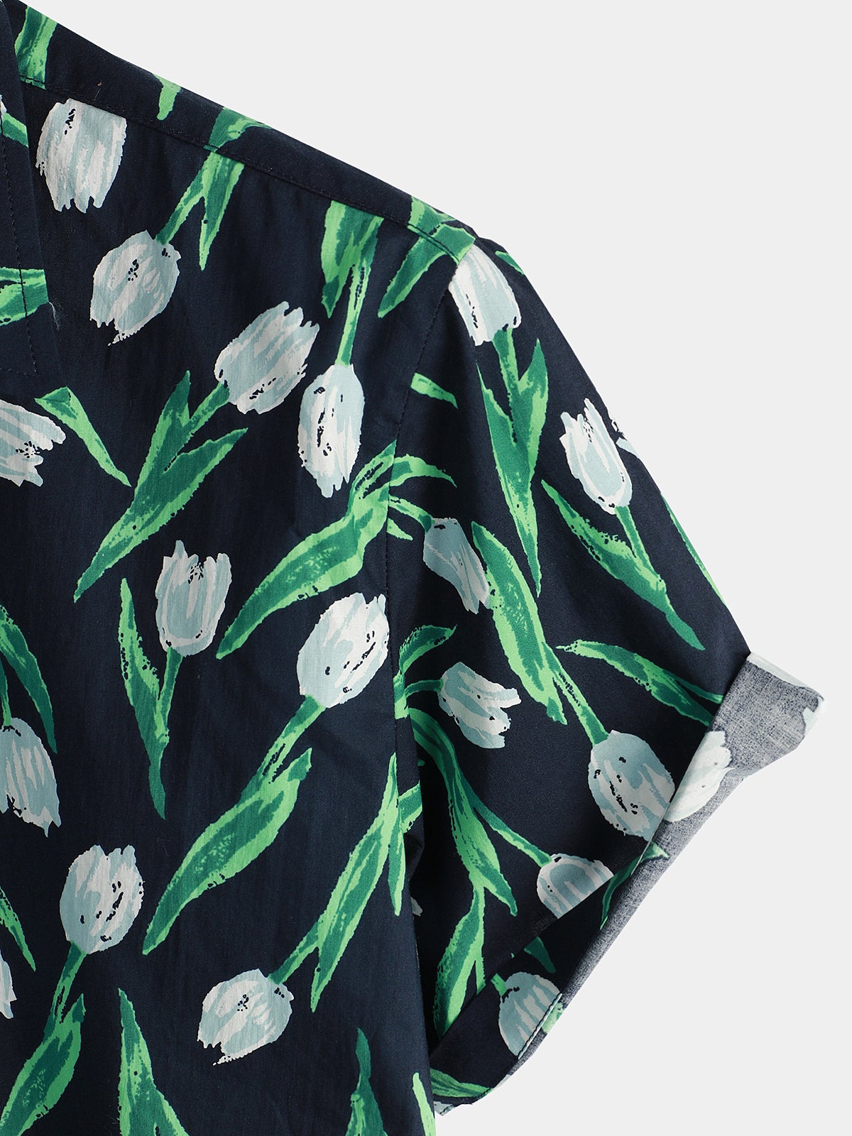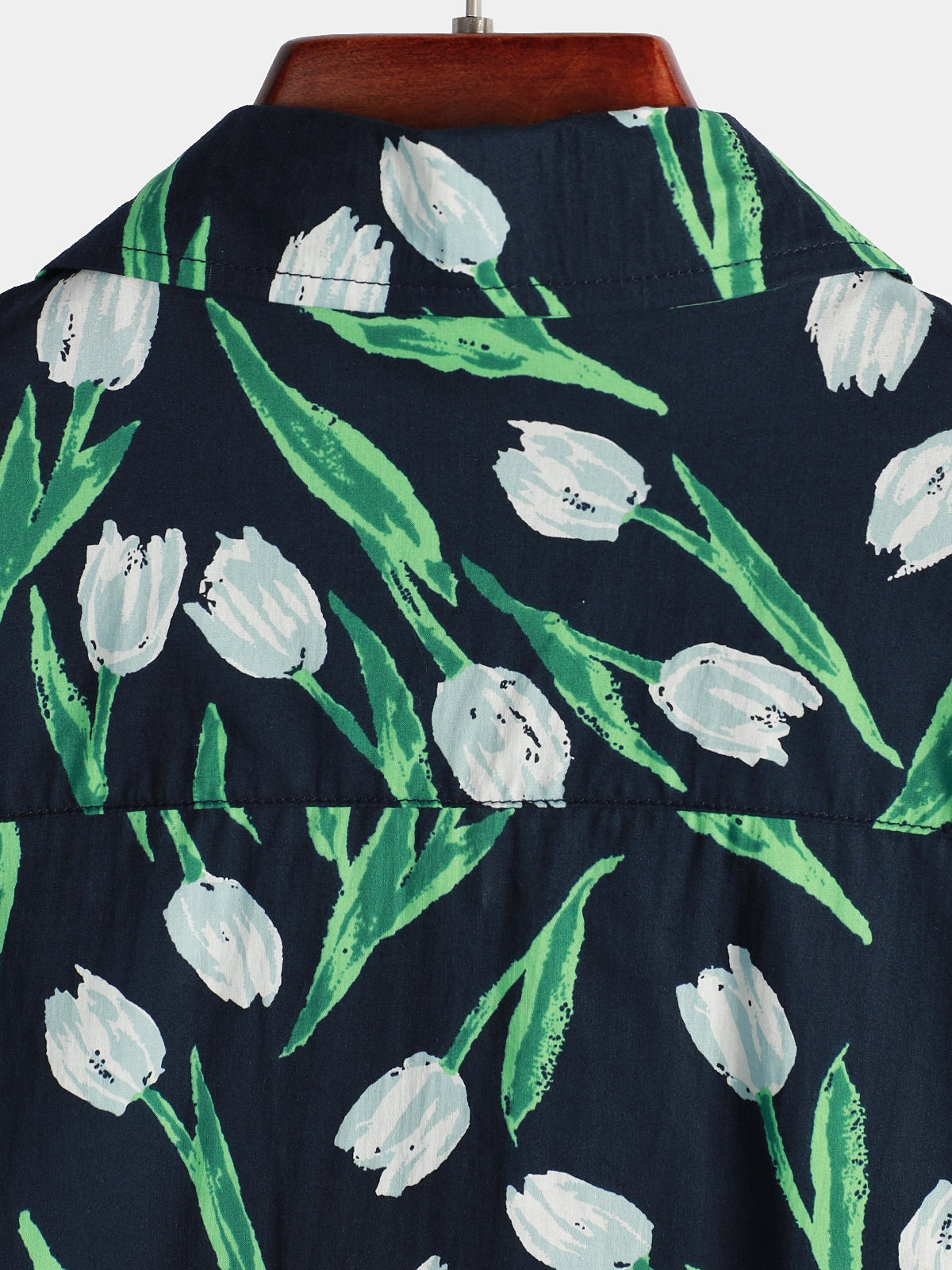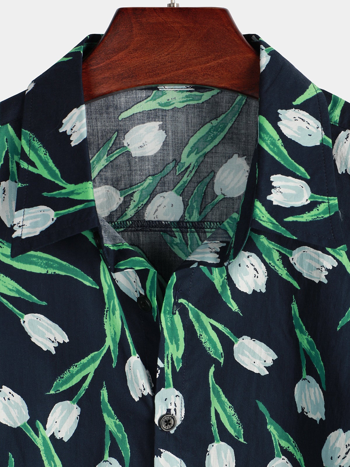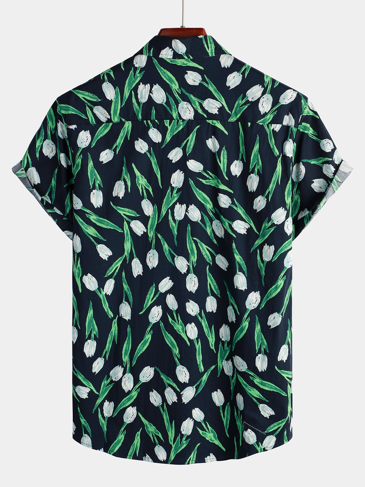 Men's Floral Cotton Short Sleeve Hawaiian Shirt