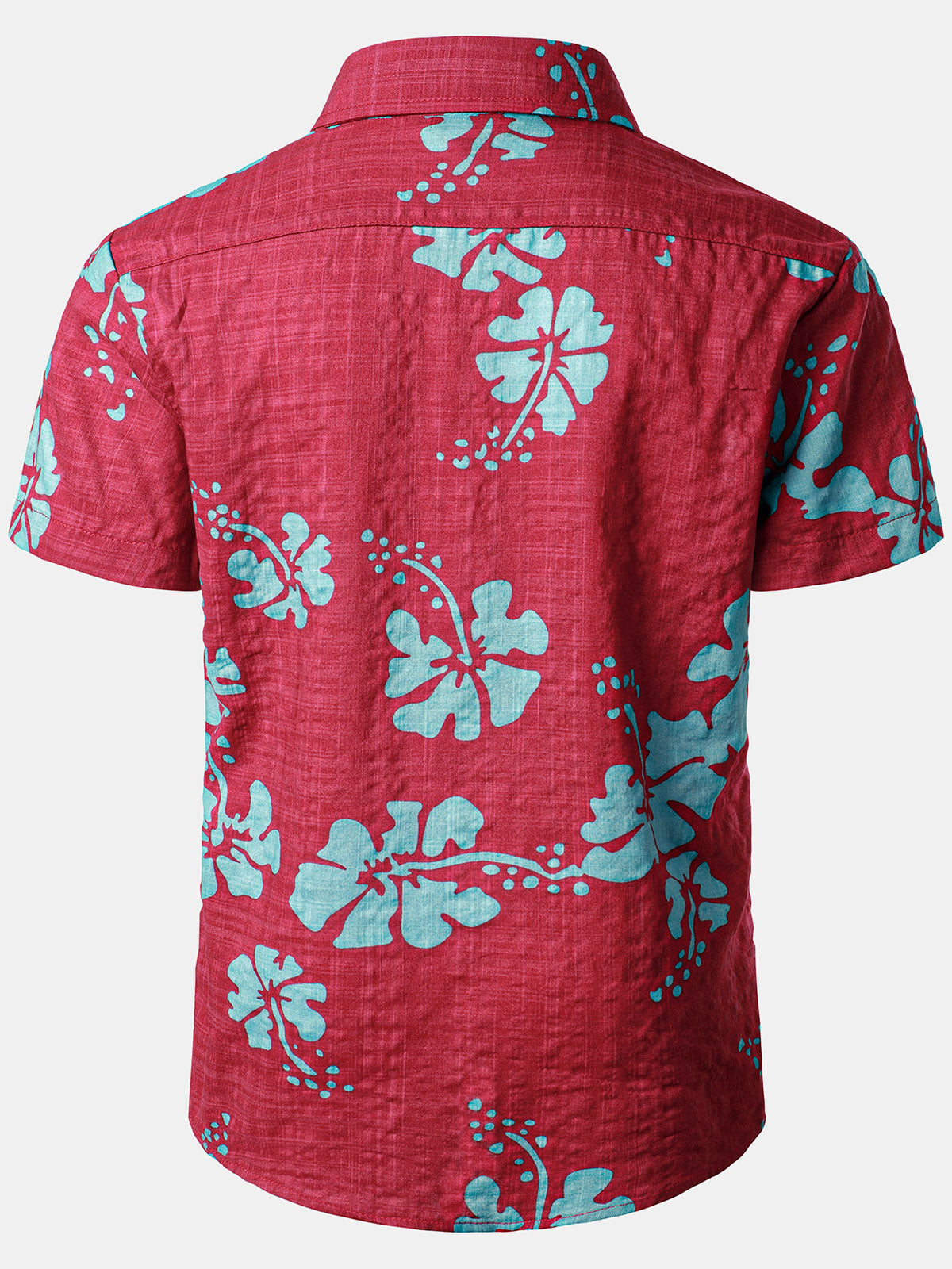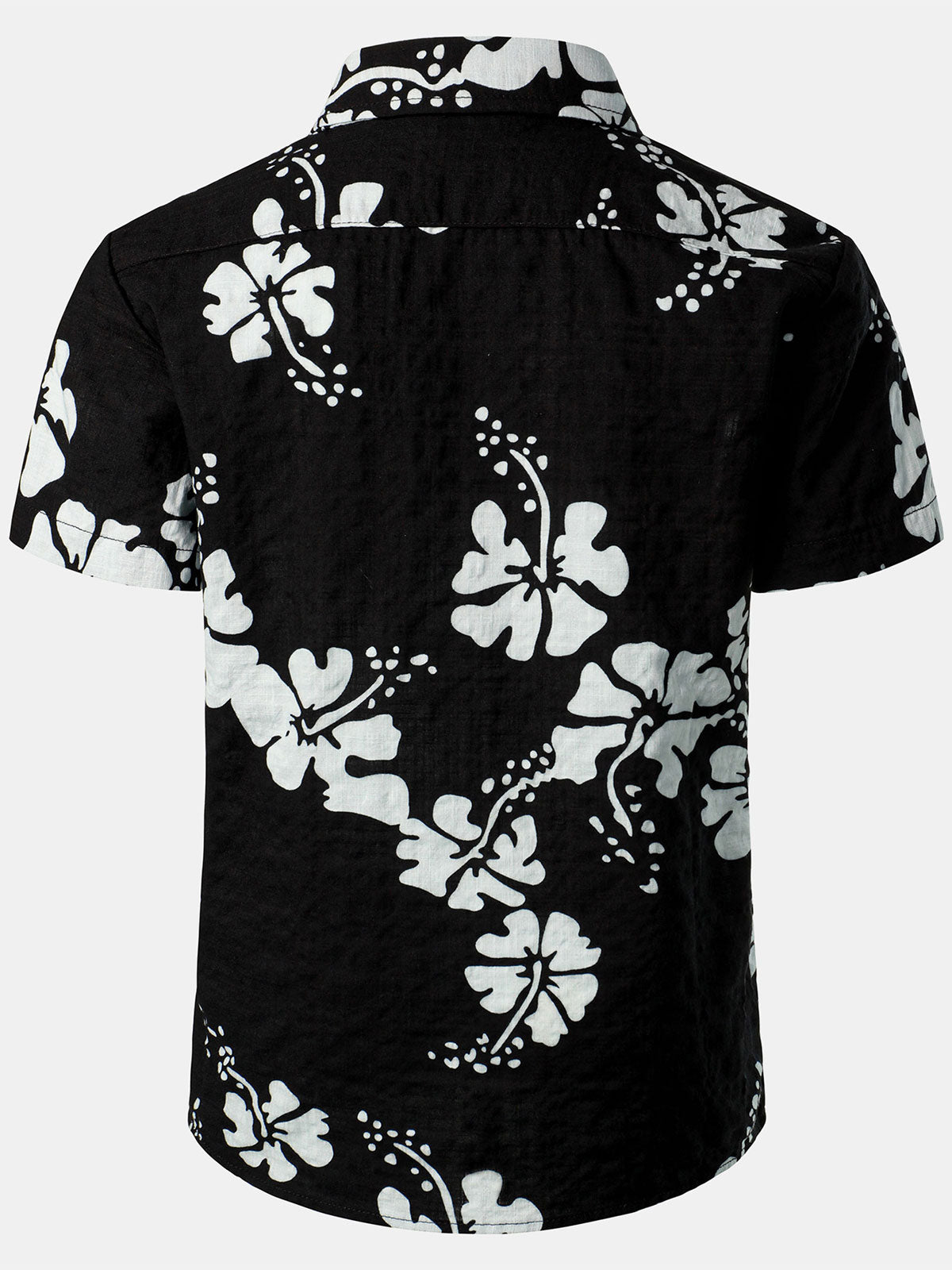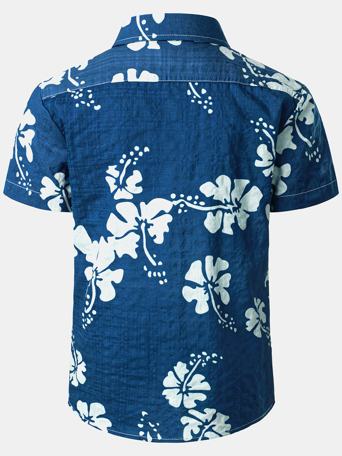 Children's Hawaiian Floral Print Tropical Aloha Holiday Beach Short Sleeve Shirt
