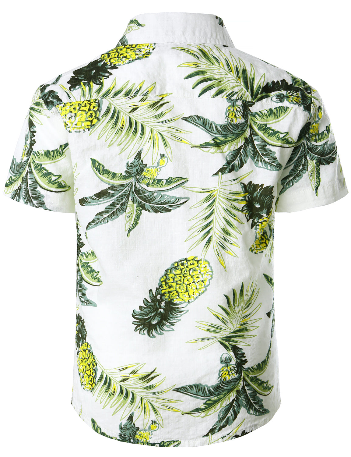 Children's Pineapple Print Tropical Aloha Holiday Beach White Short Sleeve Shirt