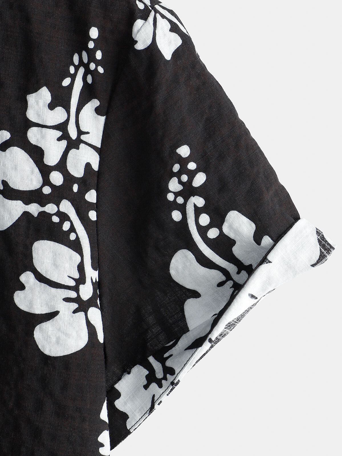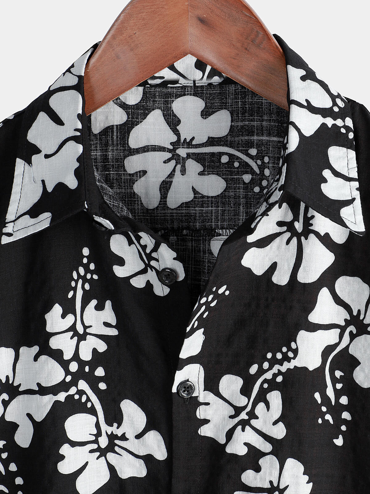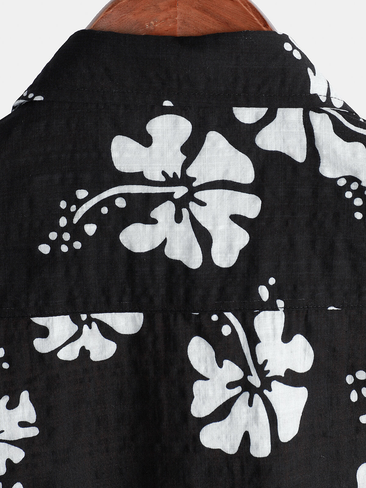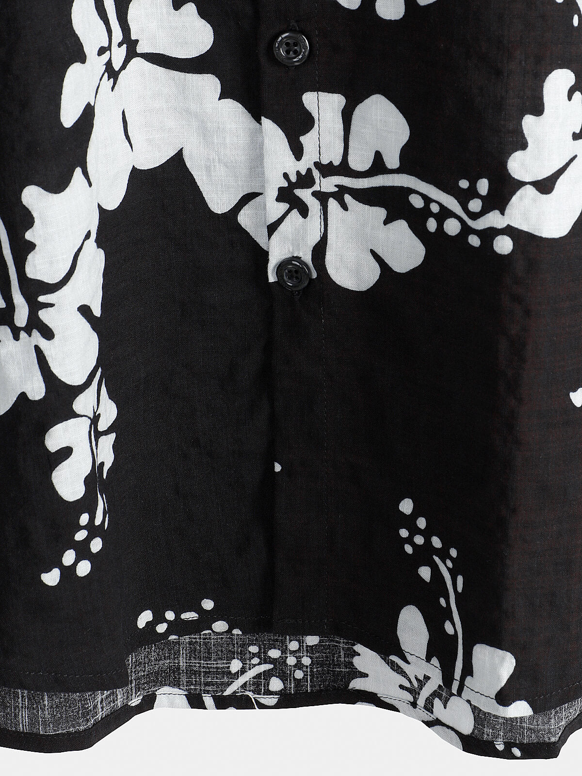 Men's Black Floral Short Sleeve Button Up Beach Tropical Hawaiian Shirt
