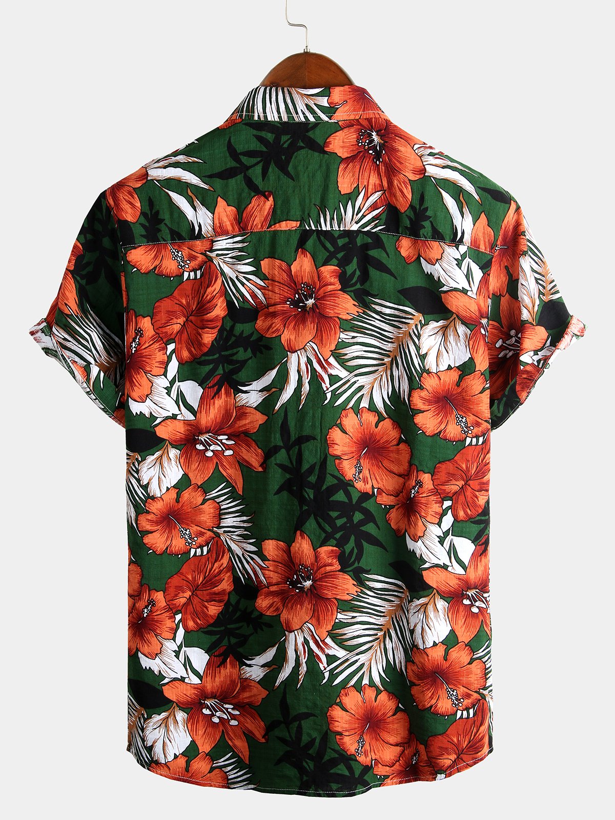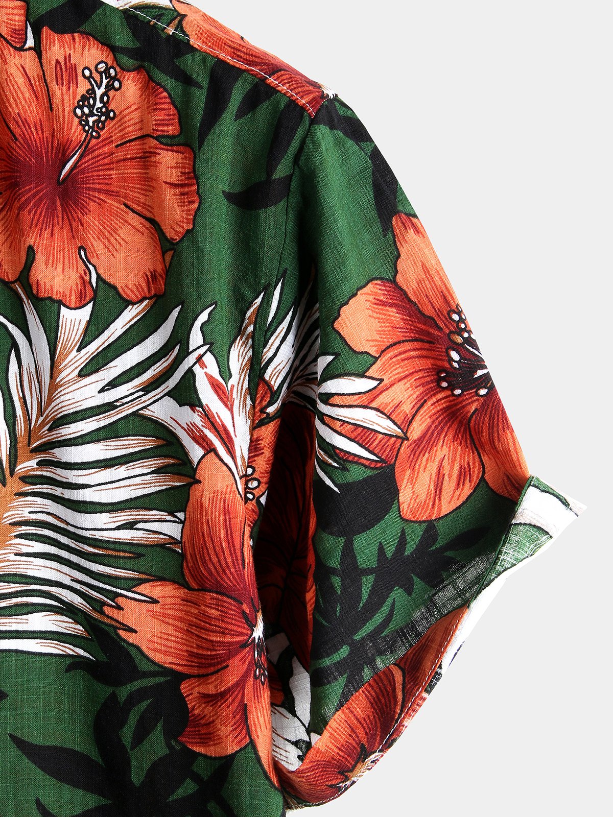 Men's Hawaiian Tropical Plant Floral Print Cotton Short Sleeve Shirts
