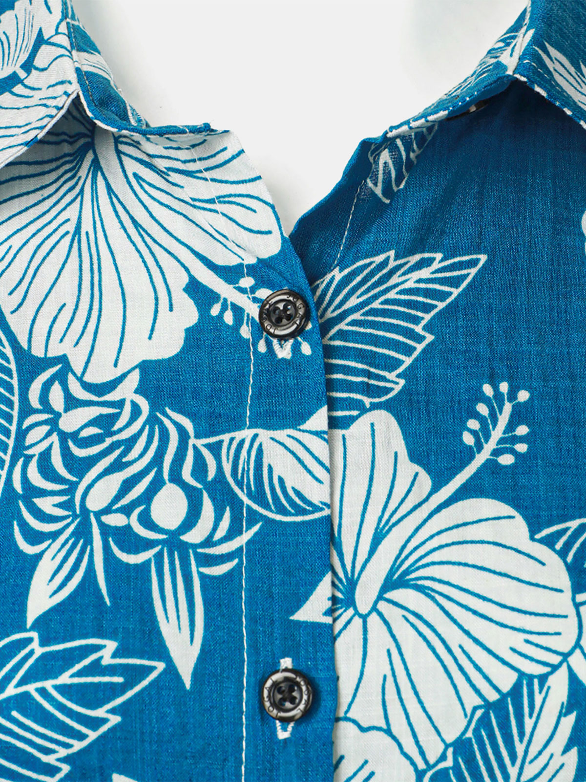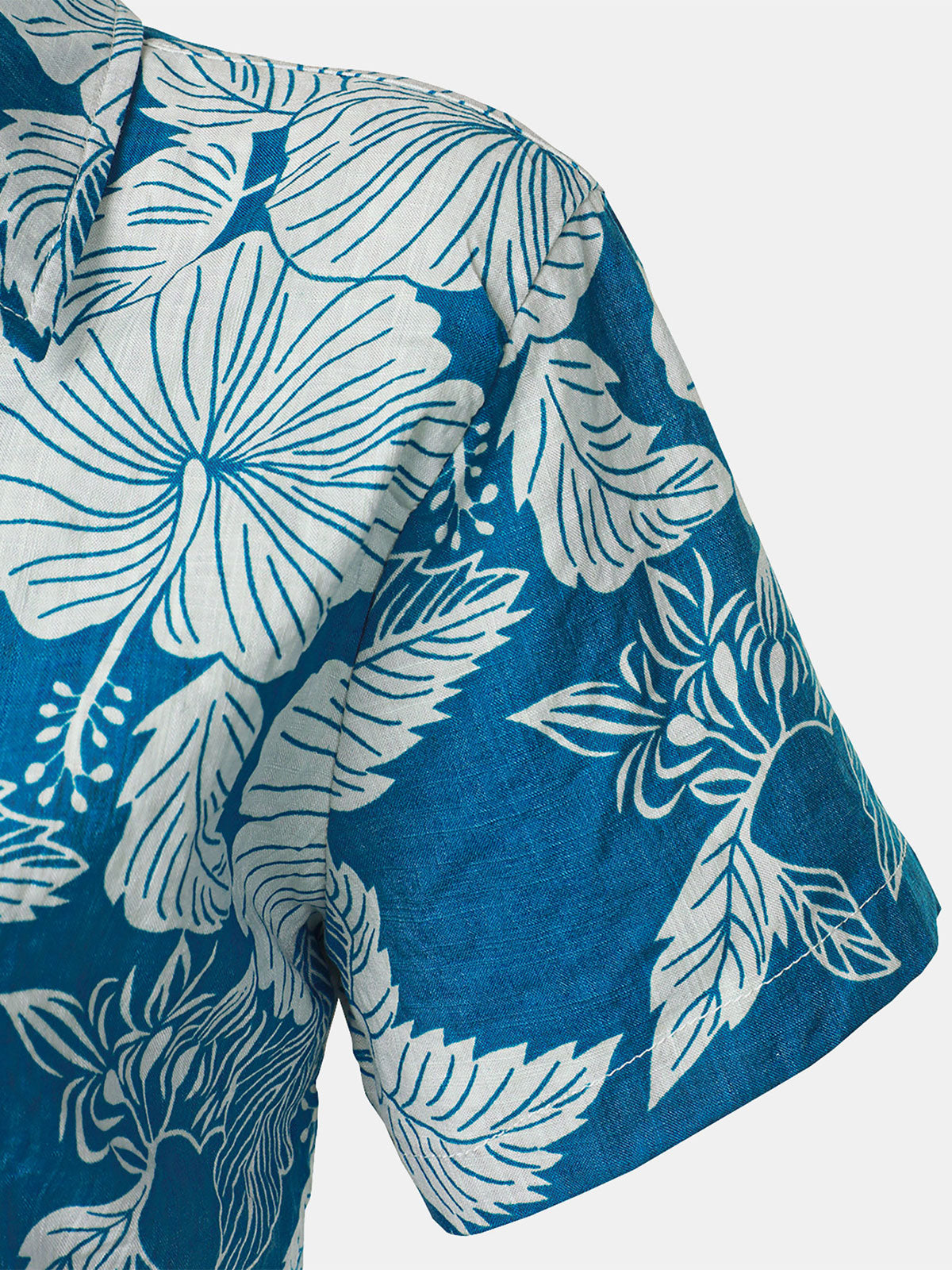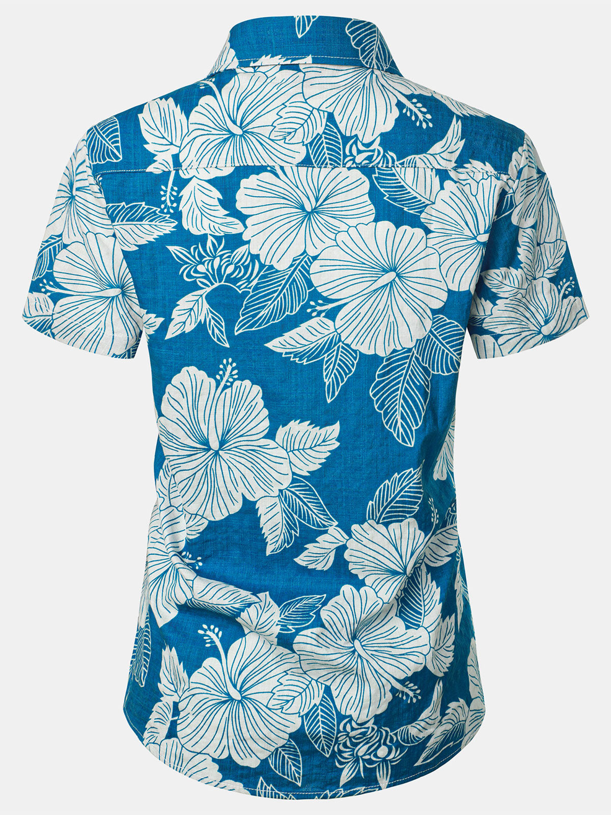 Women's Blue Floral Print Blouse Hawaiian Cotton Beach Summer Aloha Short Sleeve Shirt