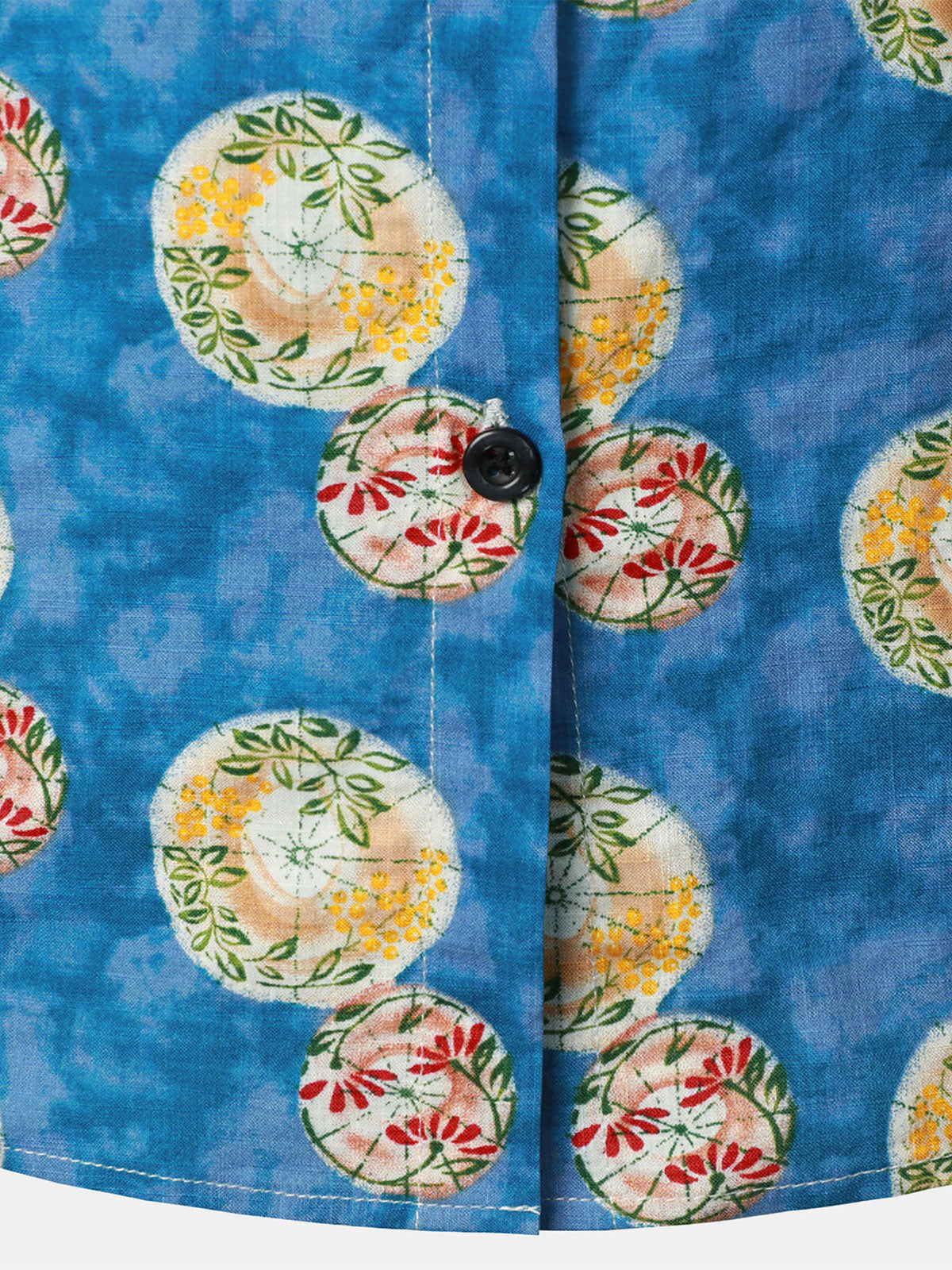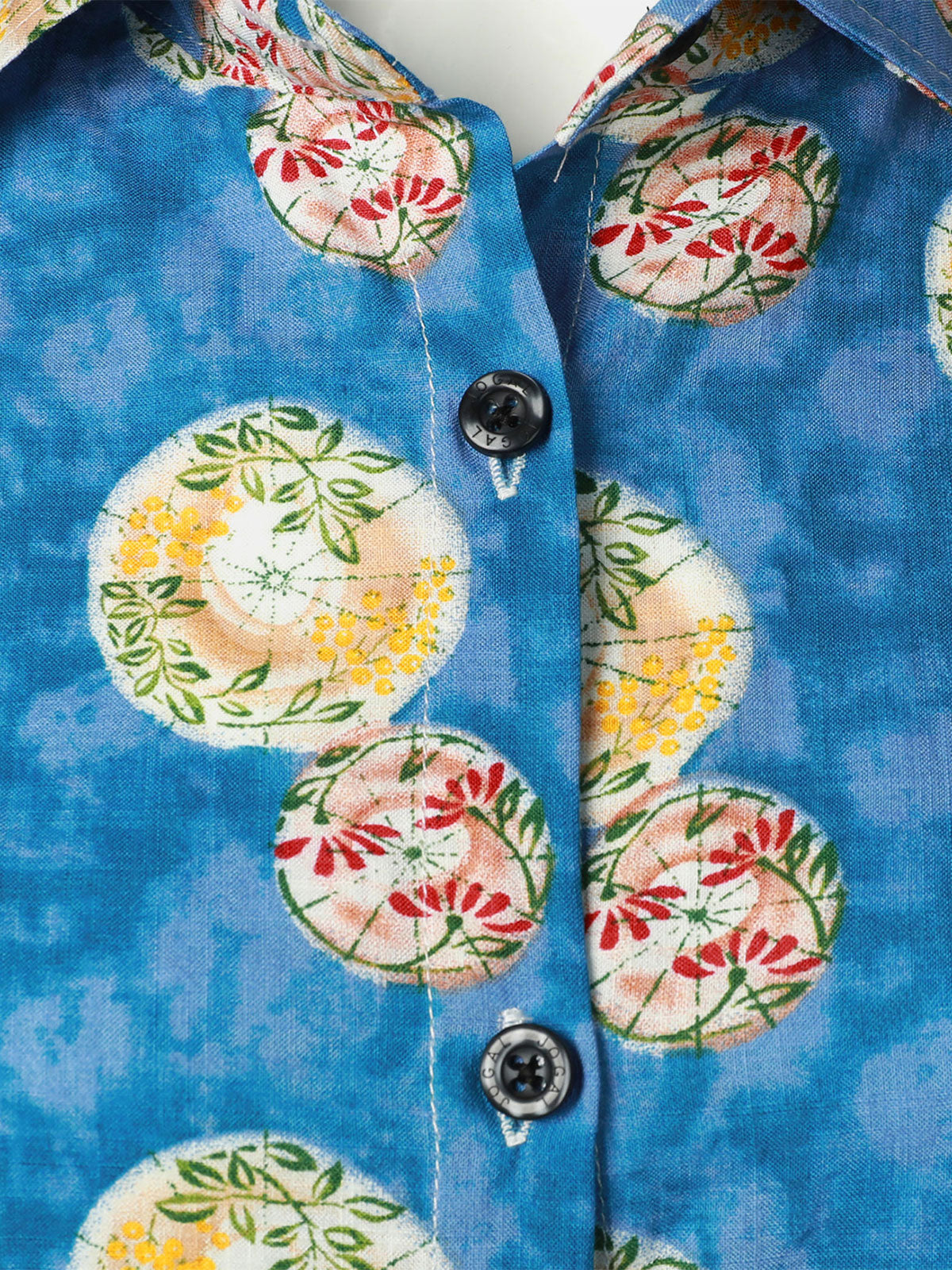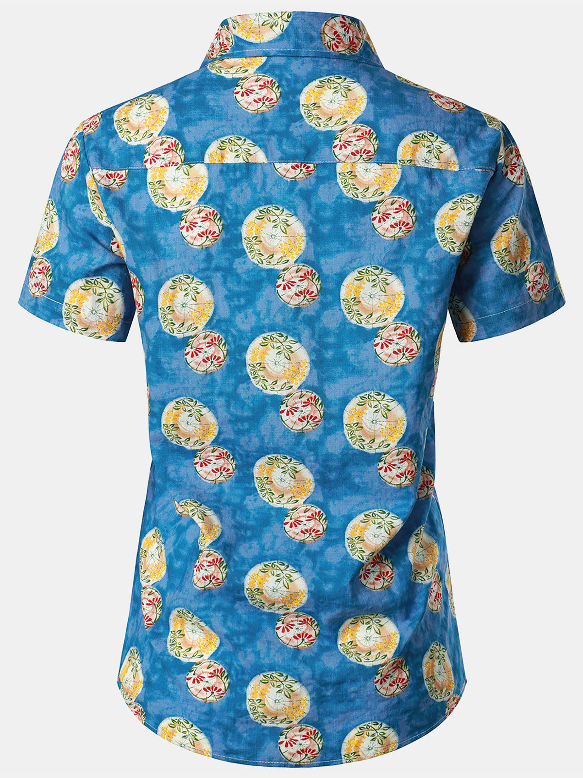 Women's Floral Print Blouse Flower Hawaiian Cotton Beach Summer Aloha Short Sleeve Shirt