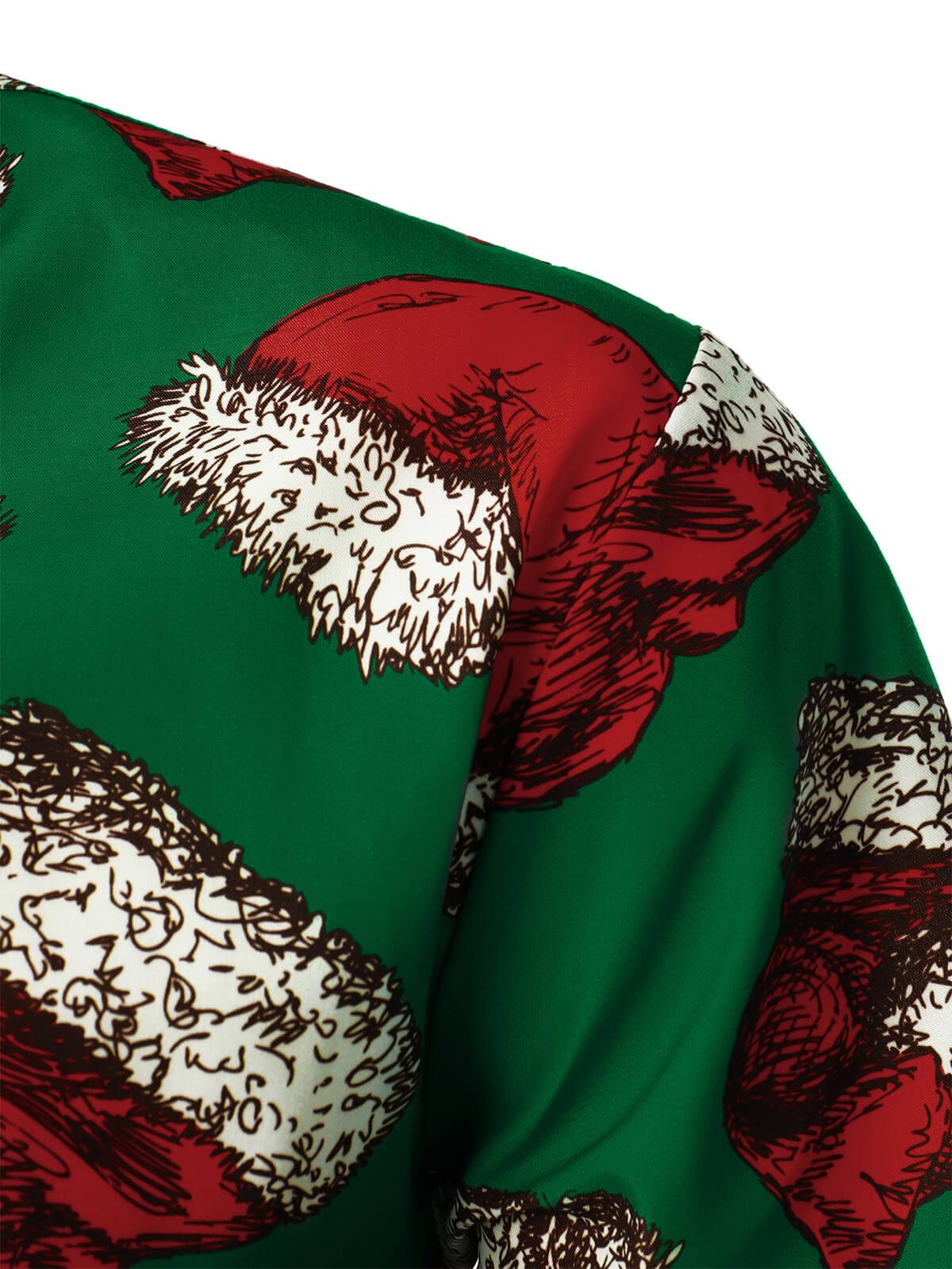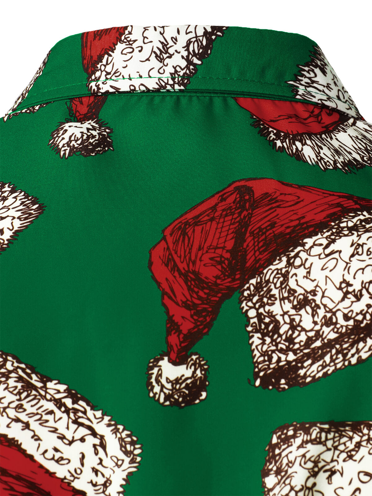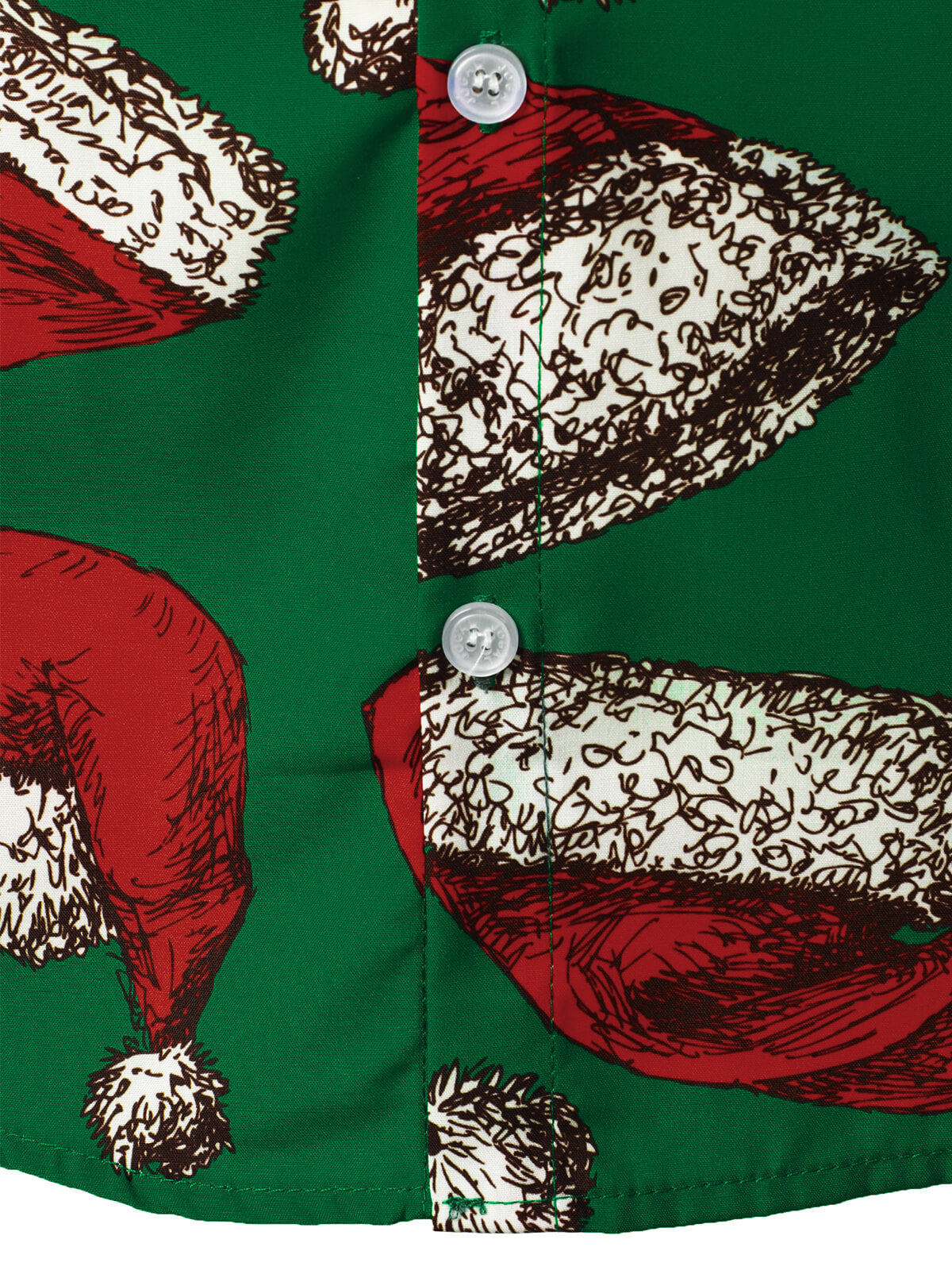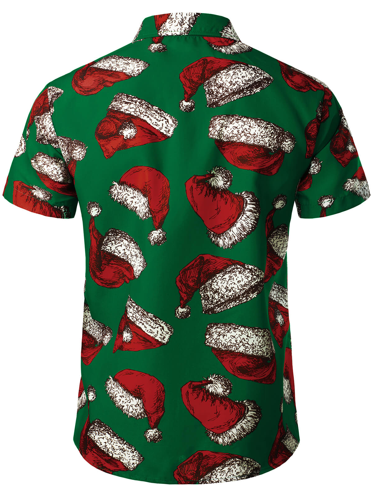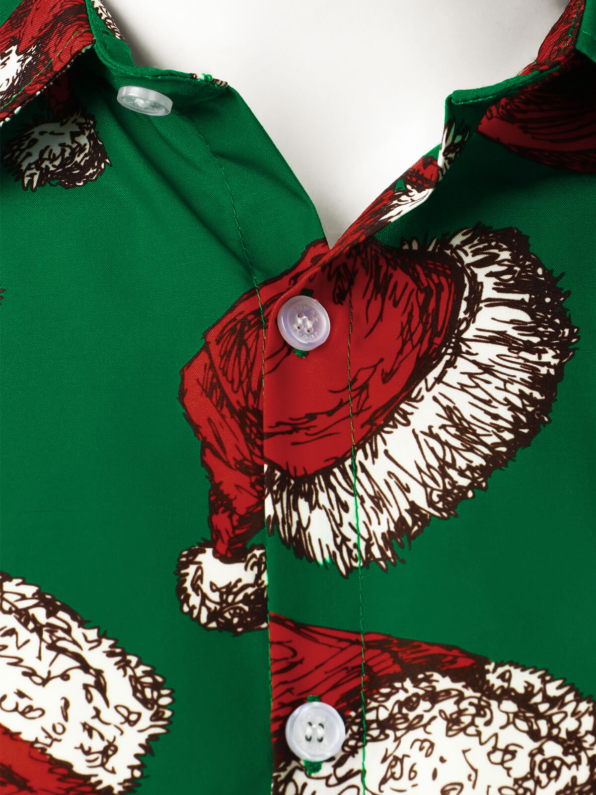 Men's Green Christmas Santa Hat Print Button Up Short Sleeve Shirt
