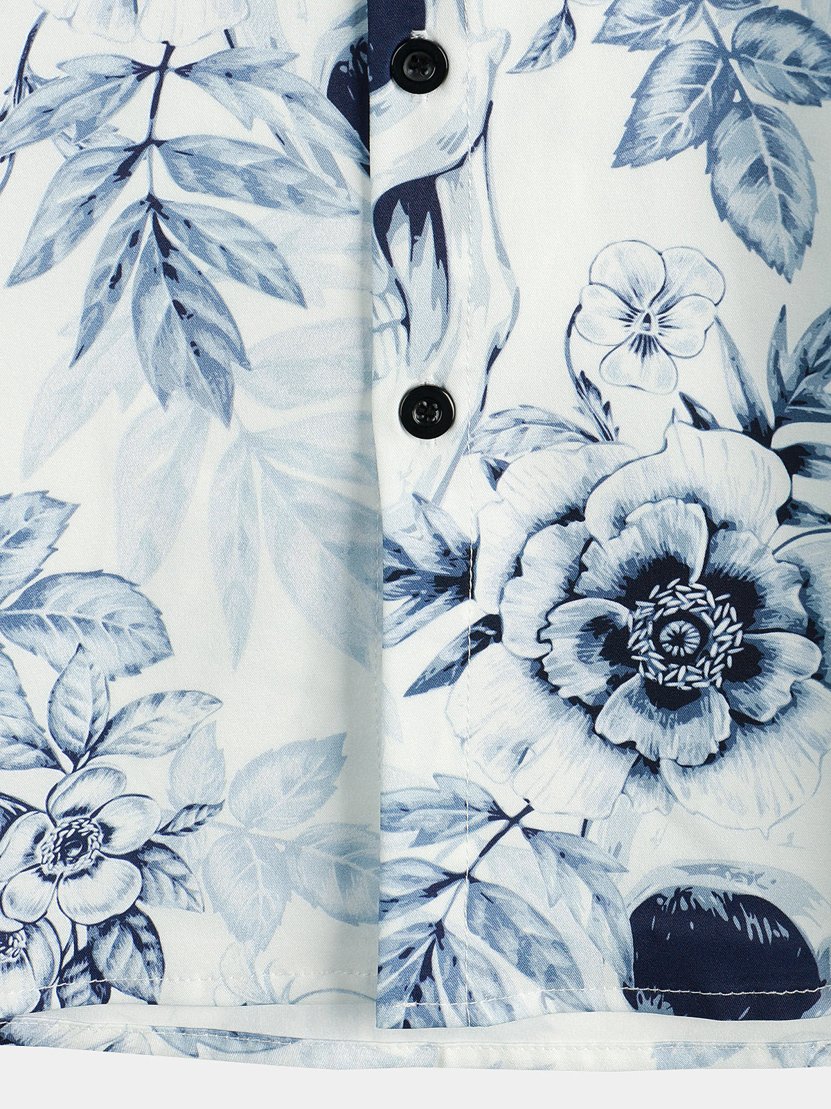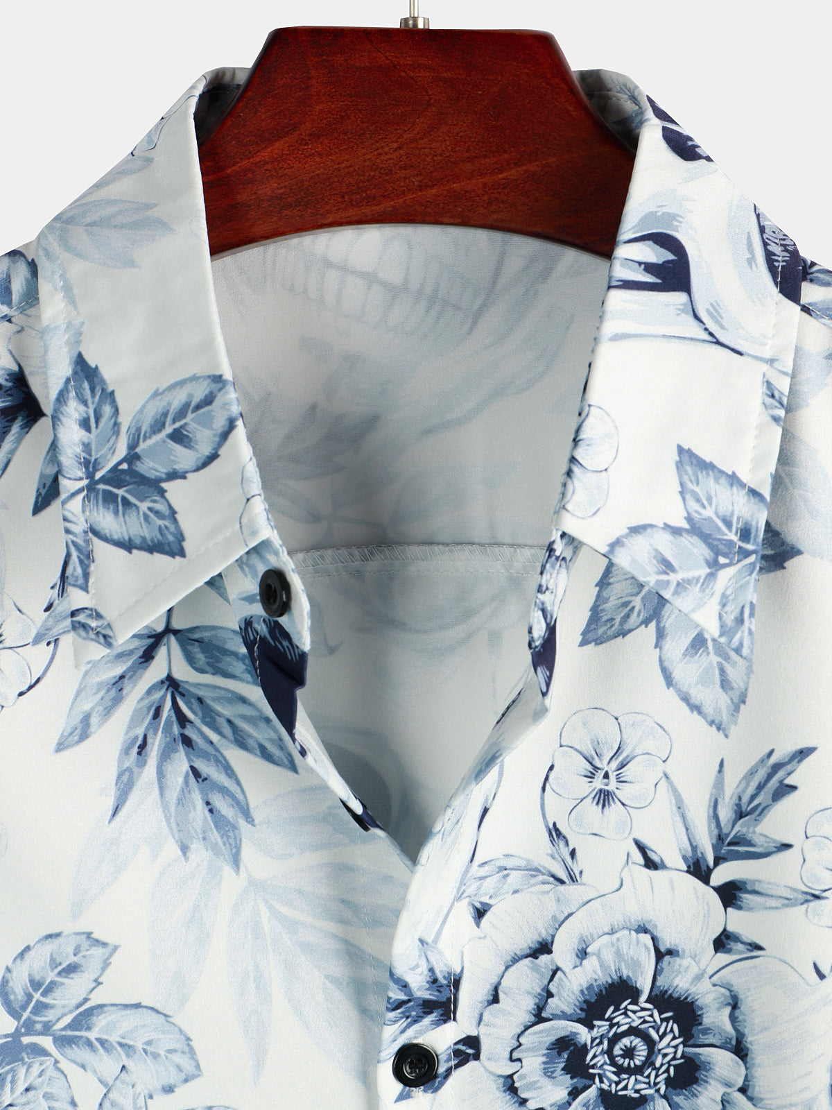 Men's Skull Floral Print Casual Lapel Button Short Sleeve Shirt