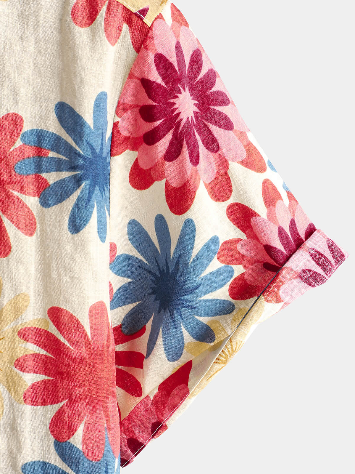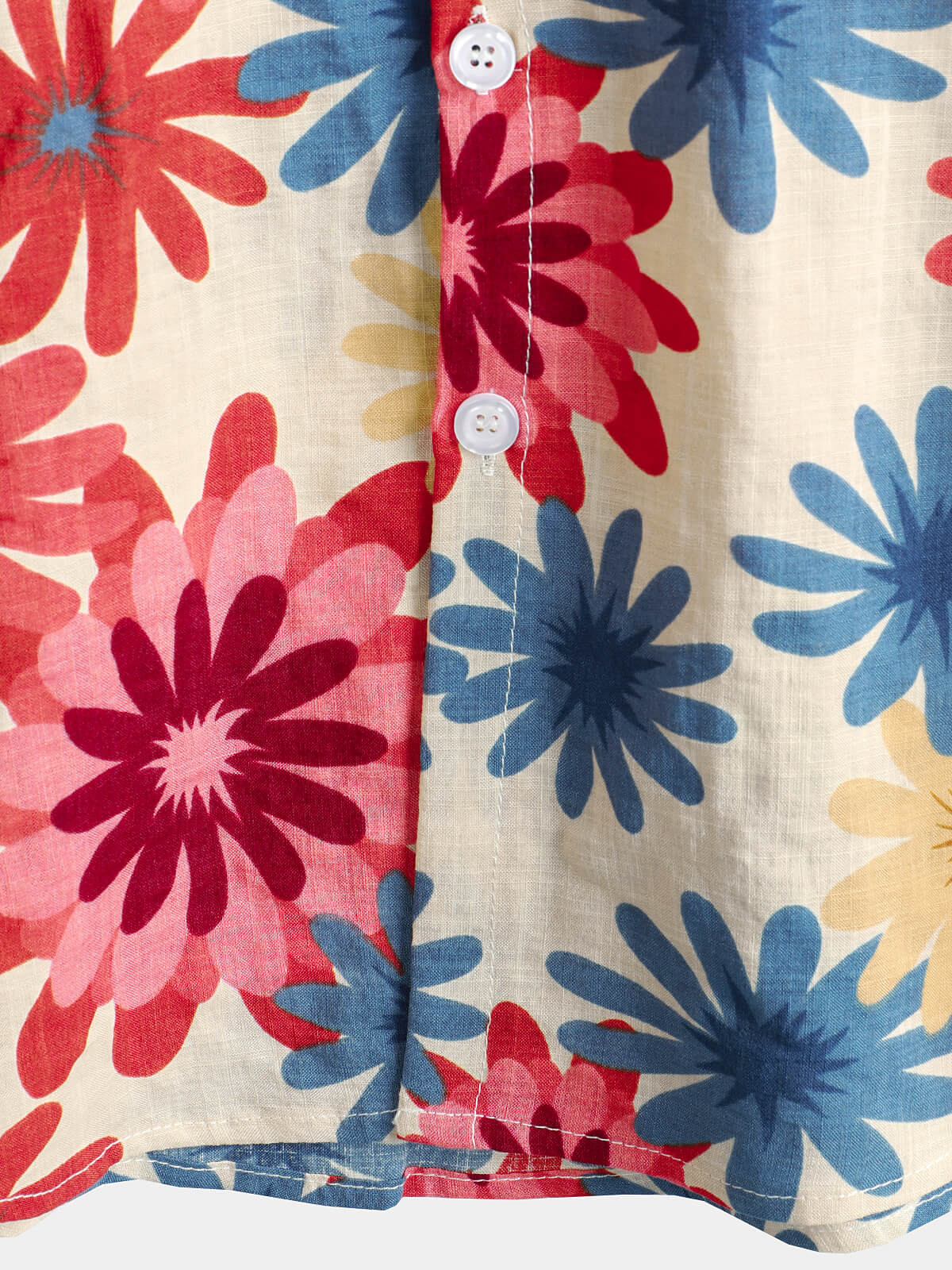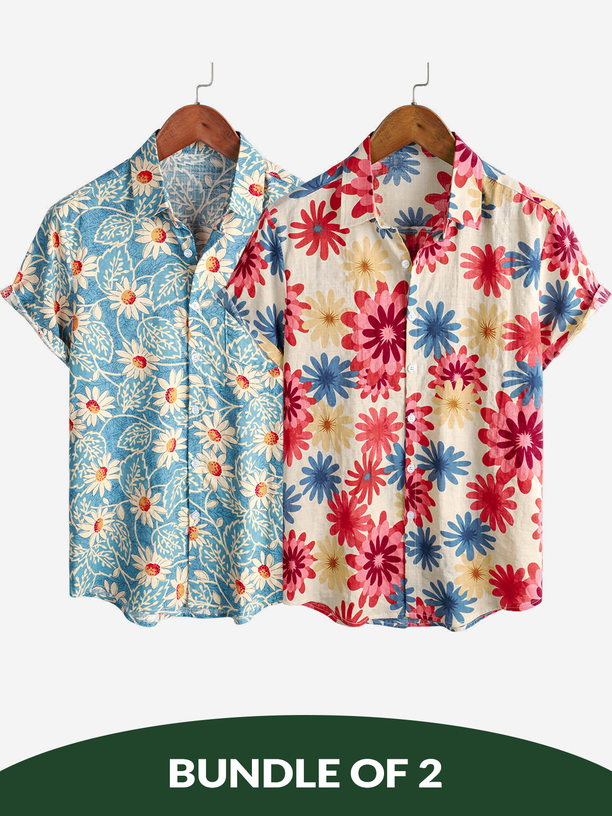 Bundle Of 2 | Men's Floral Cotton Daisy Flower Summer Beach Holiday Short Sleeve Hawaiian Shirts