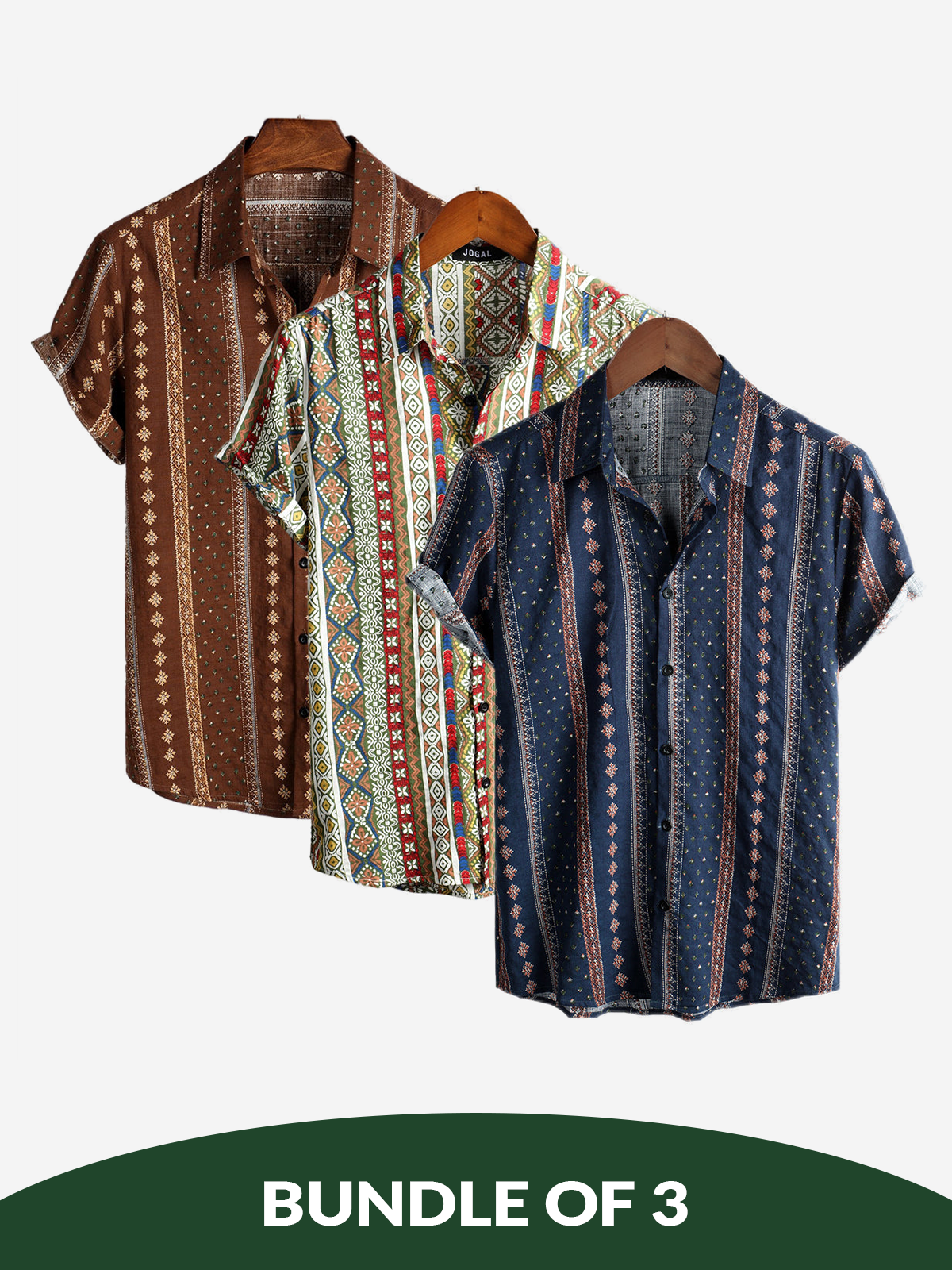 Bundle Of 3 | Men's Breathable Retro Short Sleeve Cotton Shirts