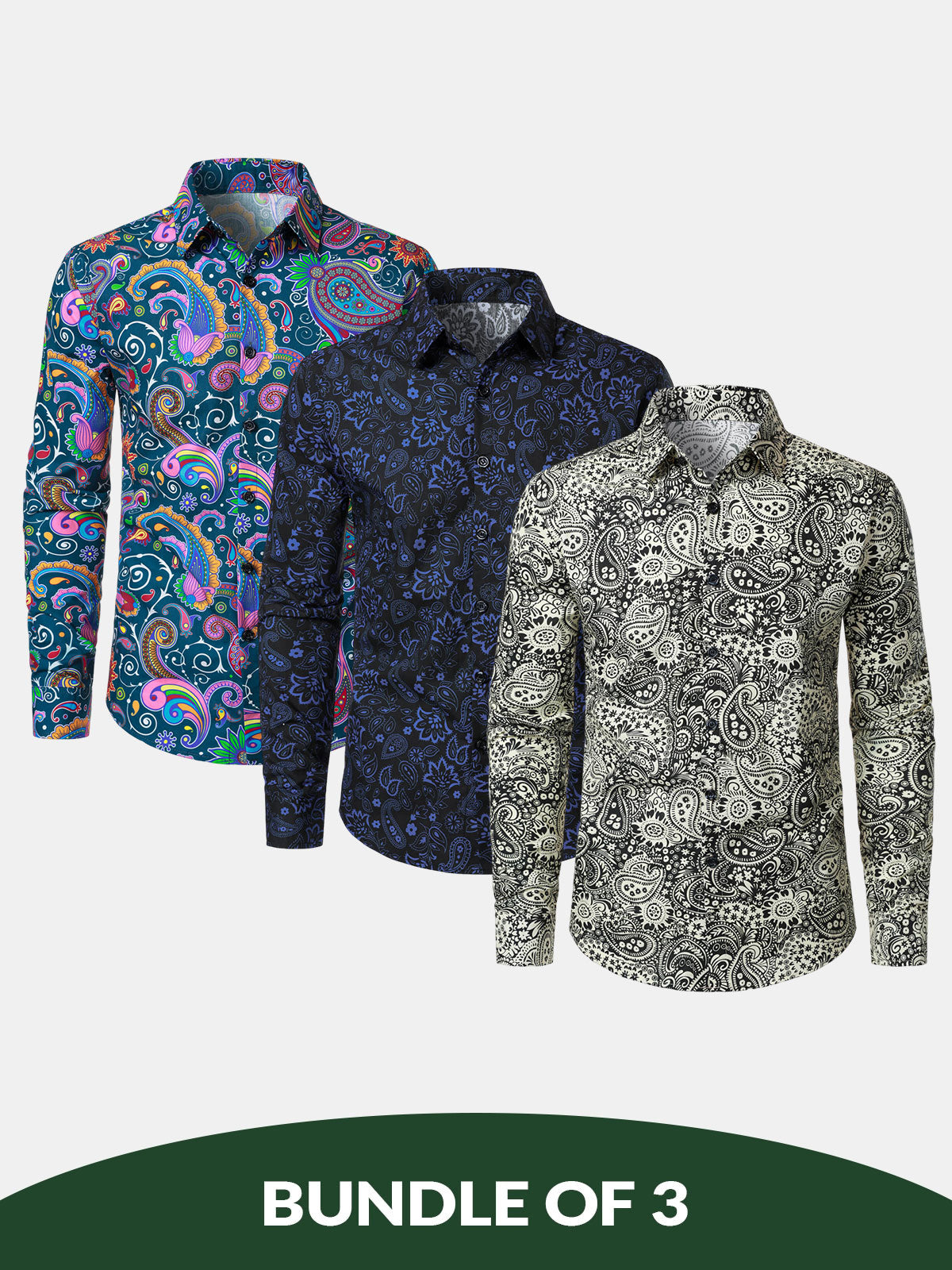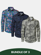 Bundle Of 3 | Men's Vintage Paisley Print Cotton Long Sleeve Shirts