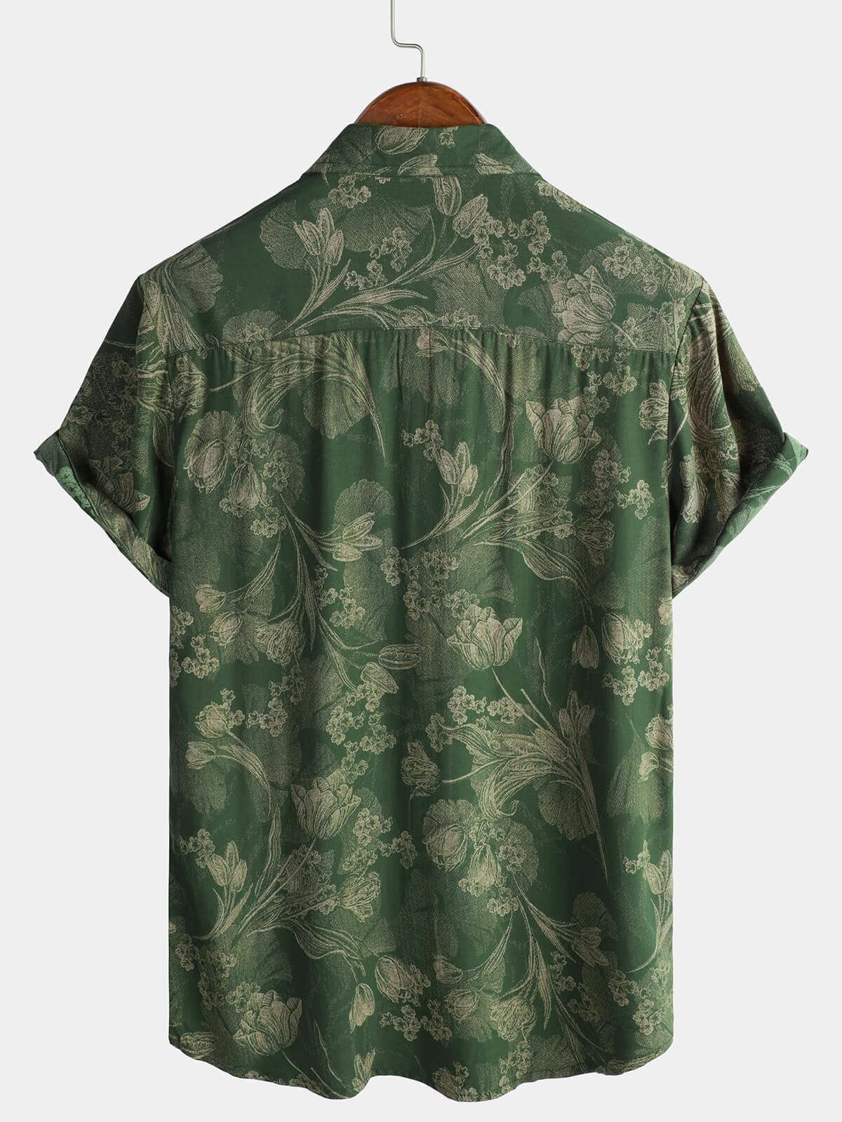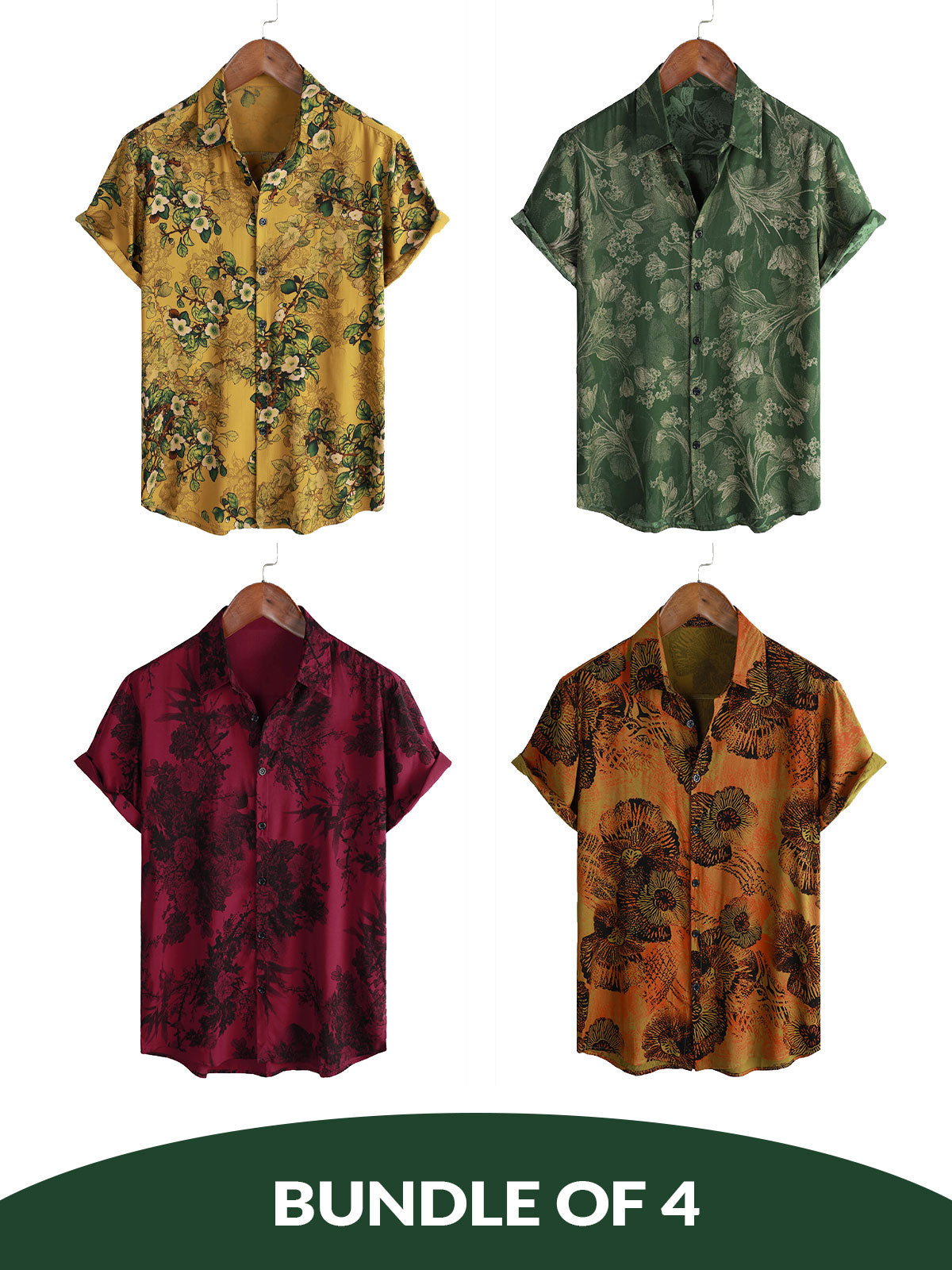 Bundle Of 4 | Men's Vintage Holiday Casual Rayon Soft Floral Short Sleeve Shirts