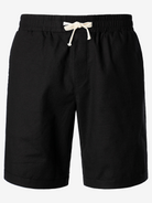 - Flat-front casual shorts with slanted side pockets and rear pockets, mid-rise, elastic waist and drawstring closure