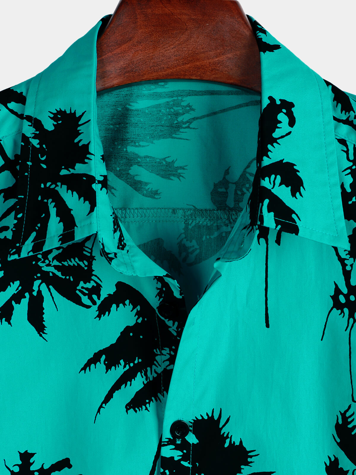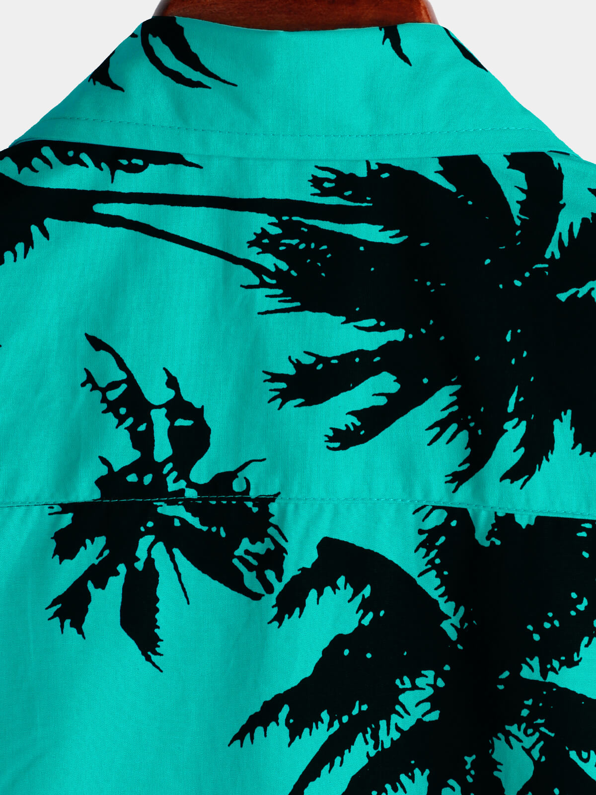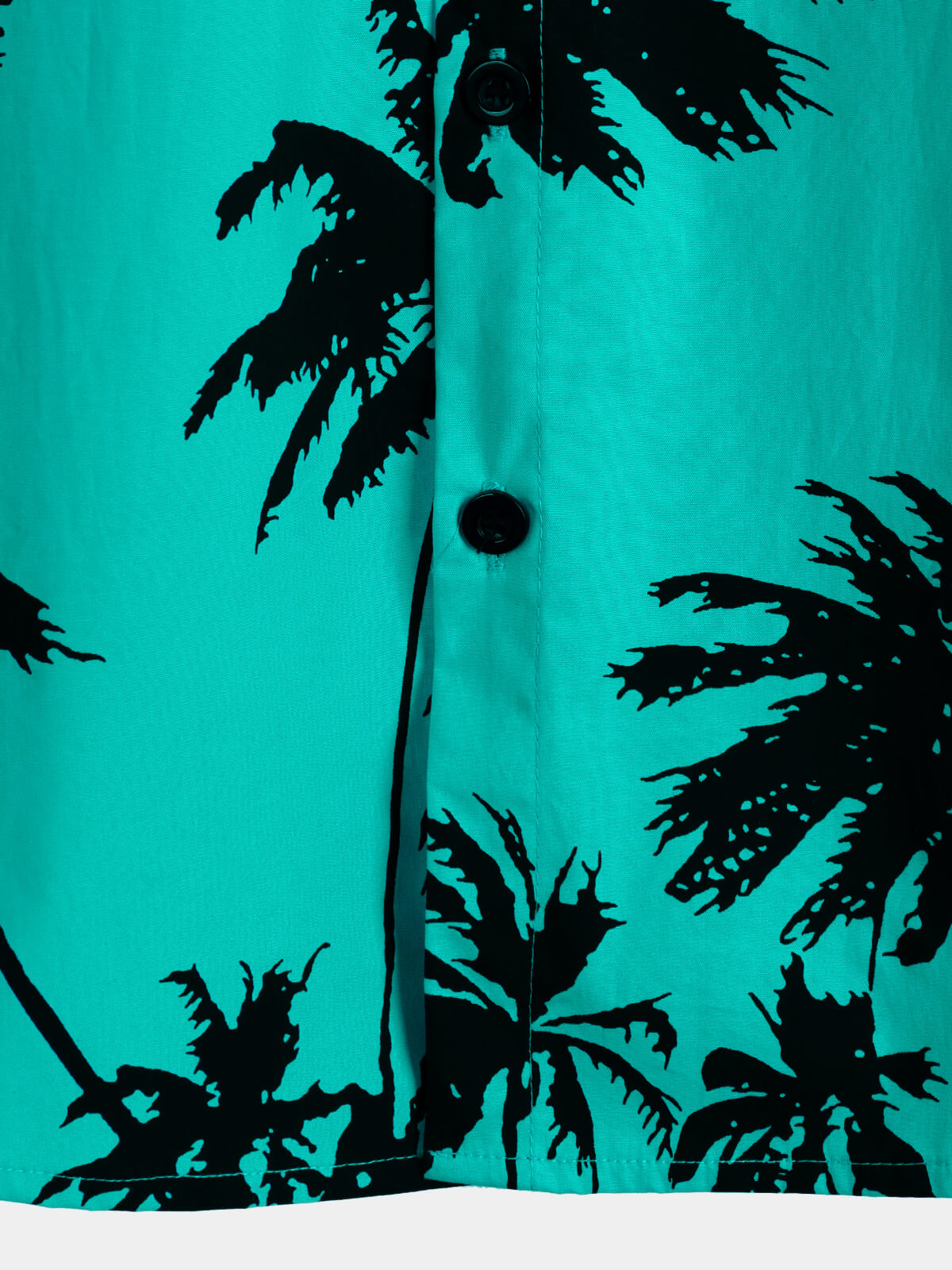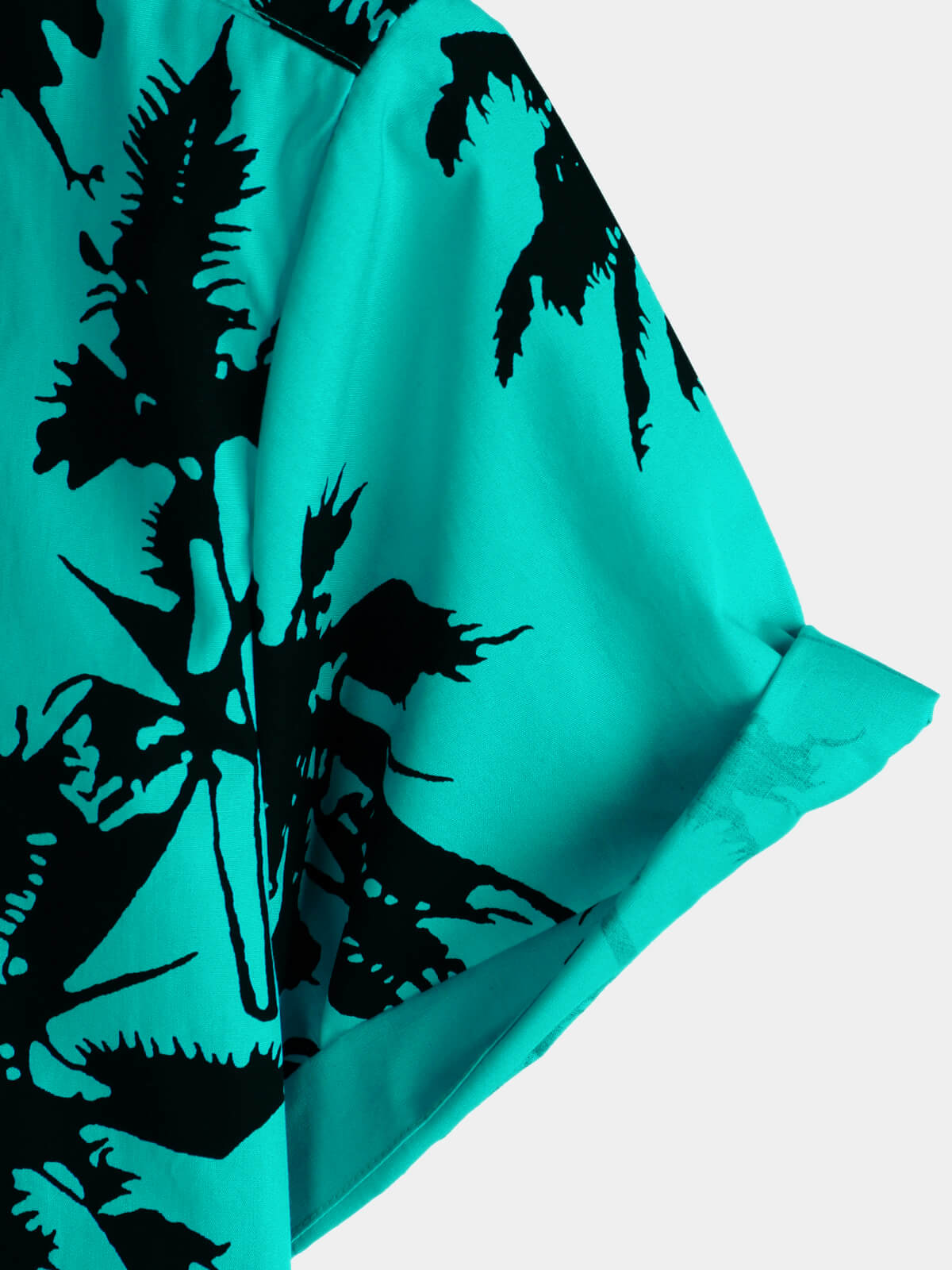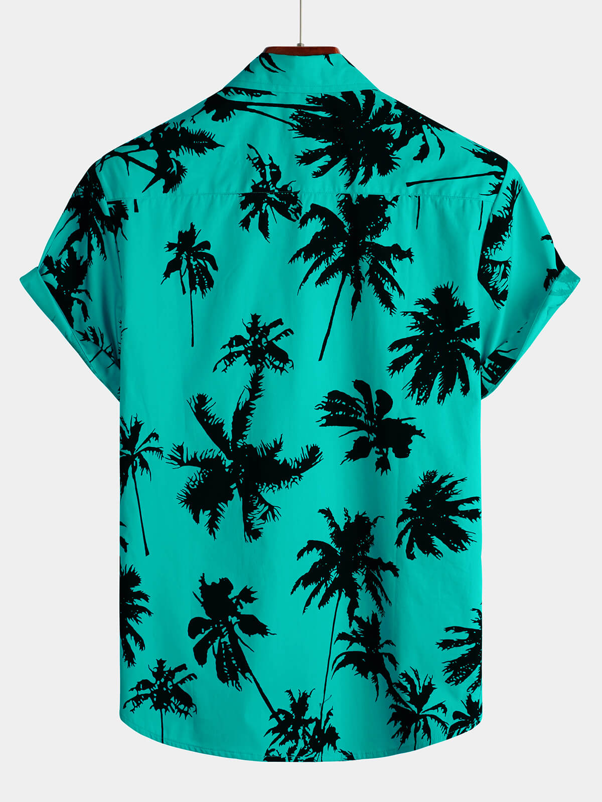 Men's 100% Cotton Palm Tree Print Summer Beach Hawaiian Short Sleeve Shirt