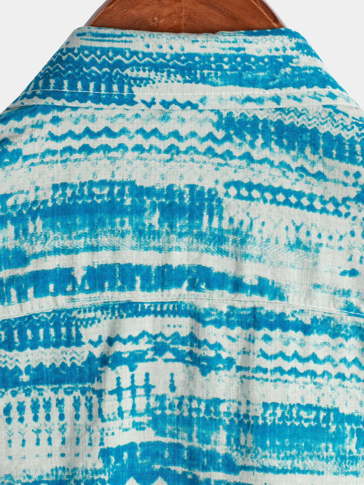 Men's Blue Vintage Pocket Short Sleeve Shirt
