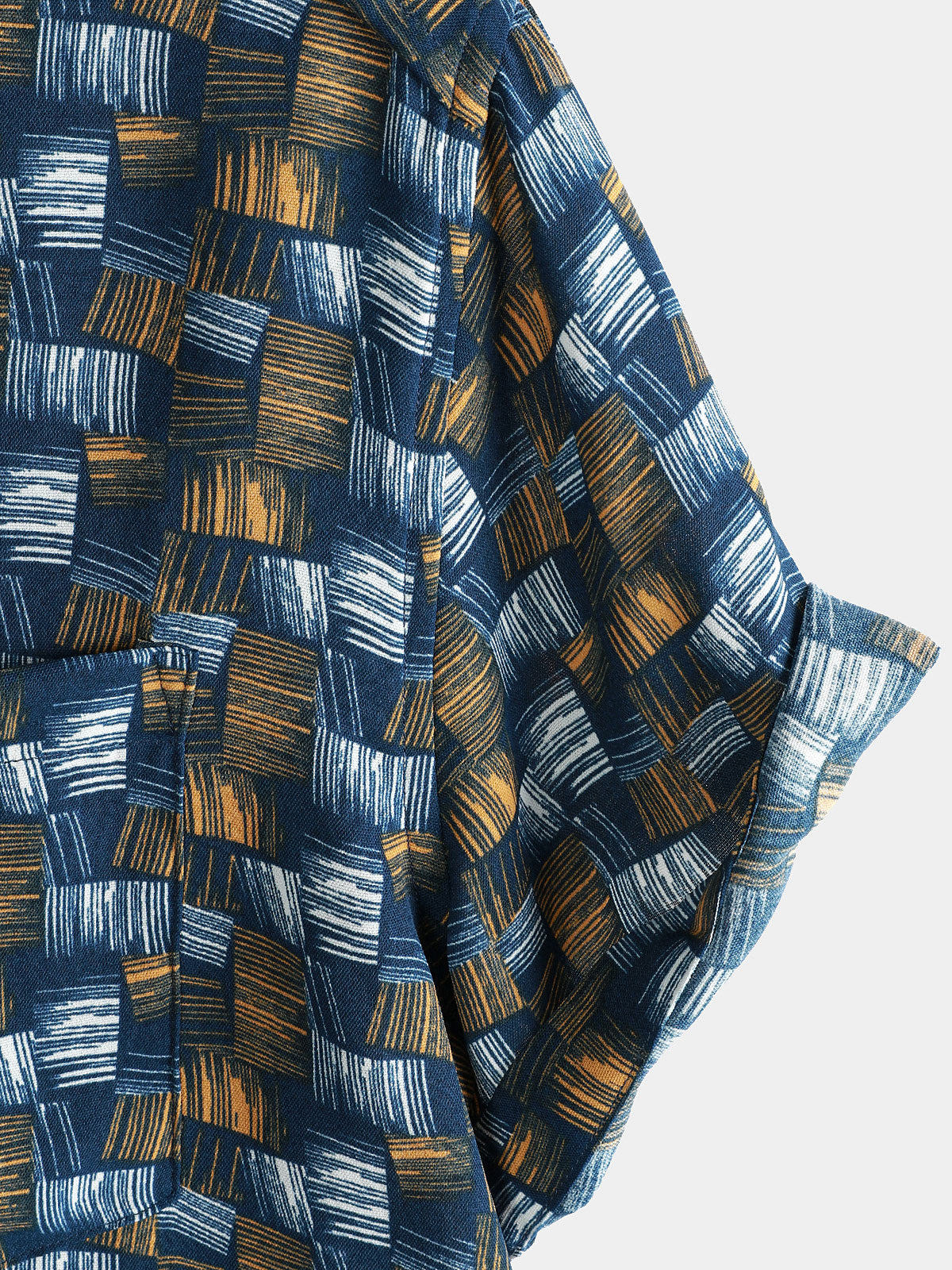 Men's Blue Casual Summer Holiday Retro Short Sleeve Shirt
