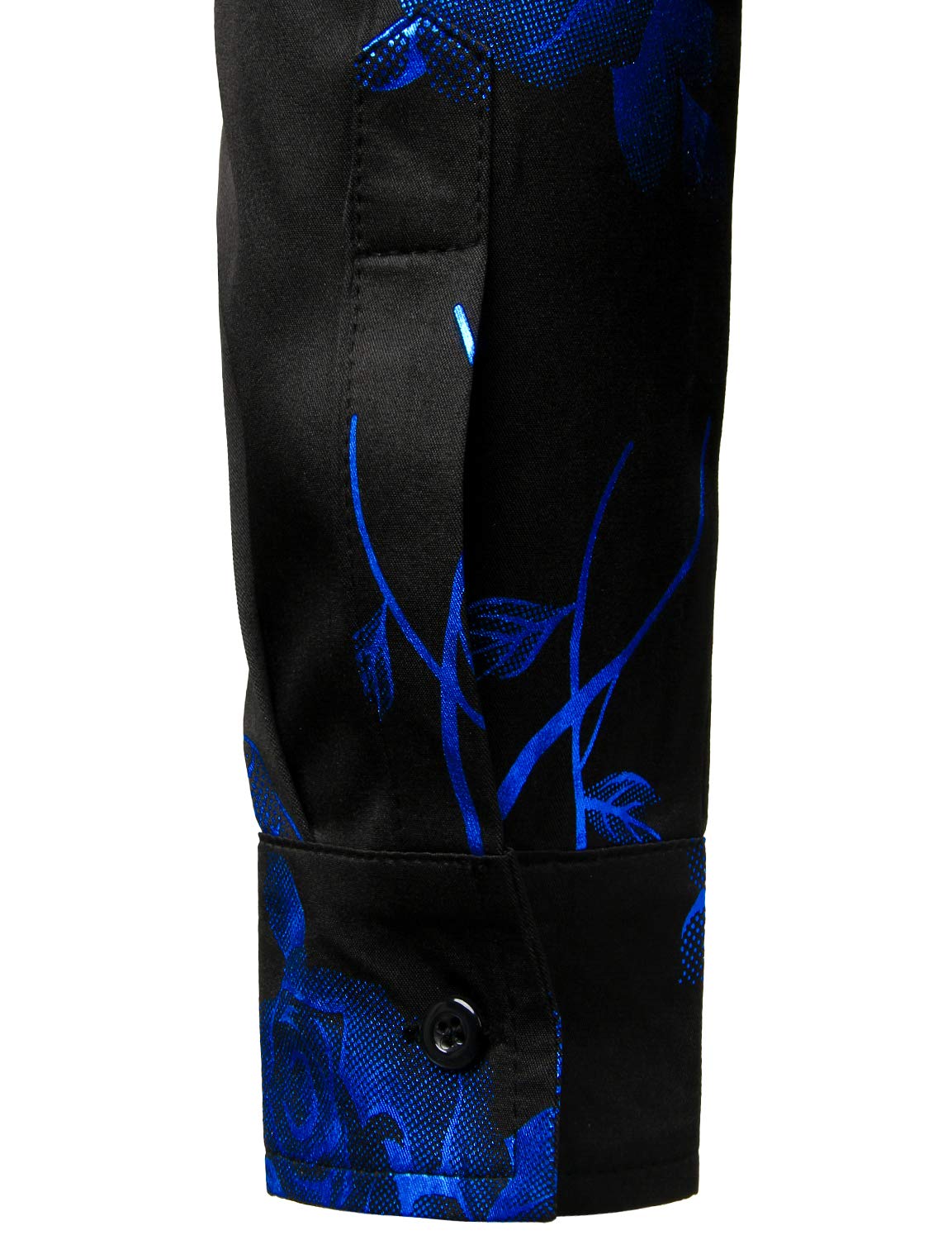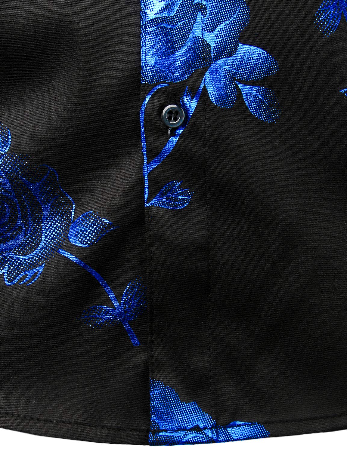 Men's Blue Rose Floral Print Long Sleeve Button Up Dress Shirt