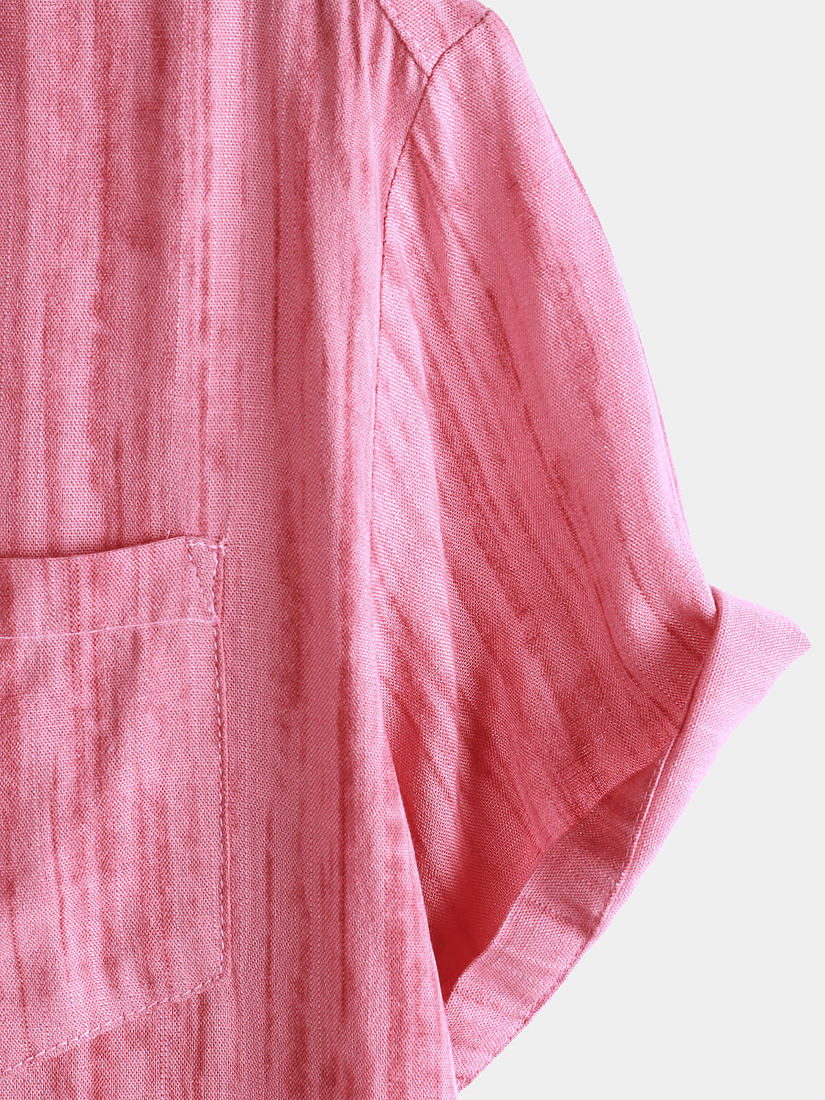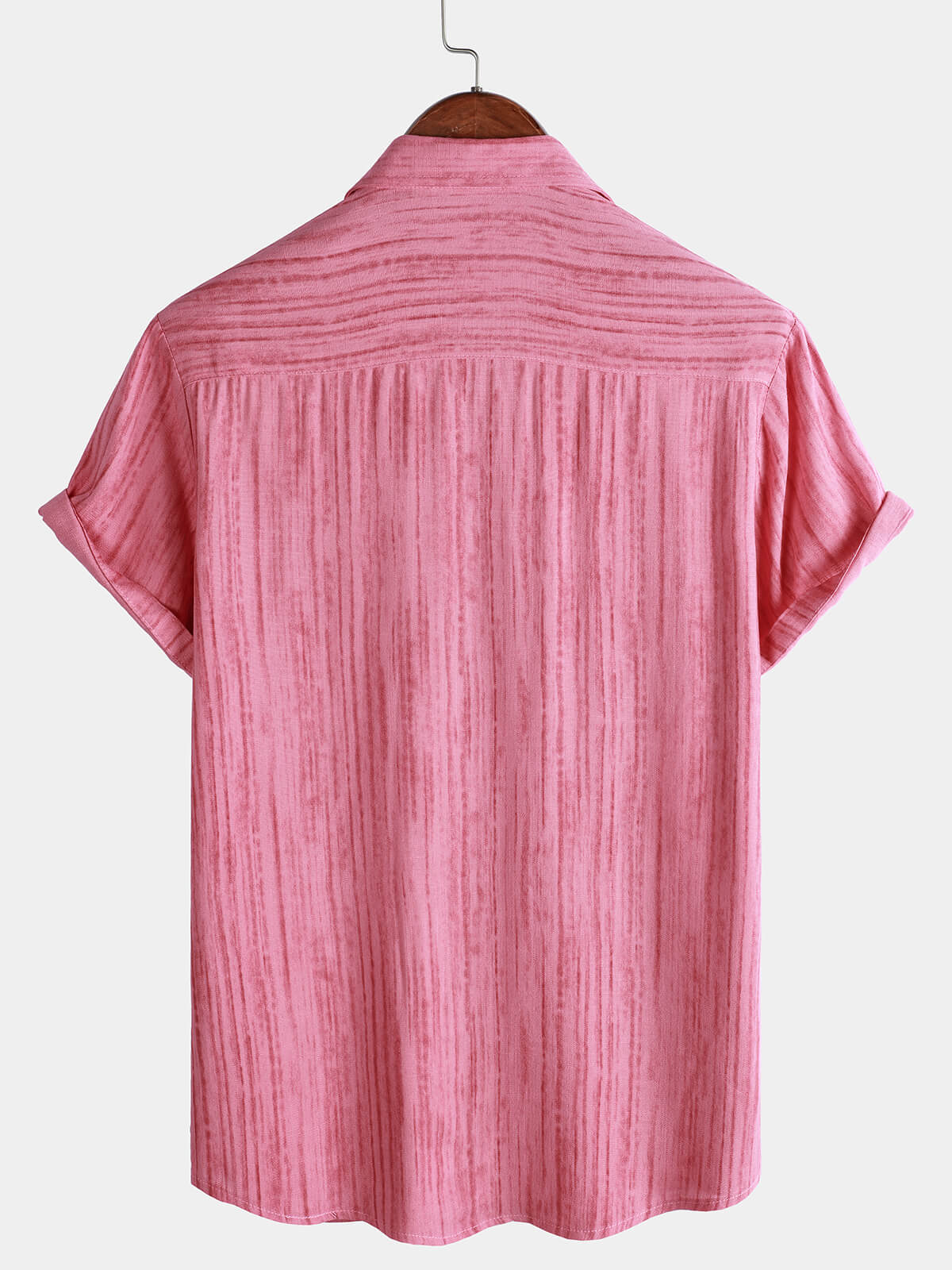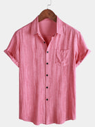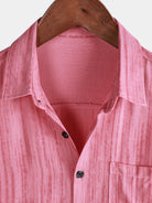 Men's Breathable Short Sleeve Pocket Pink Striped Shirt