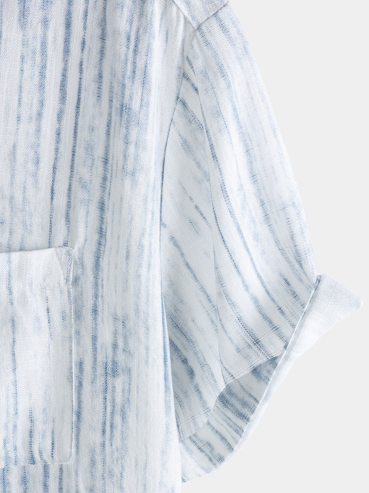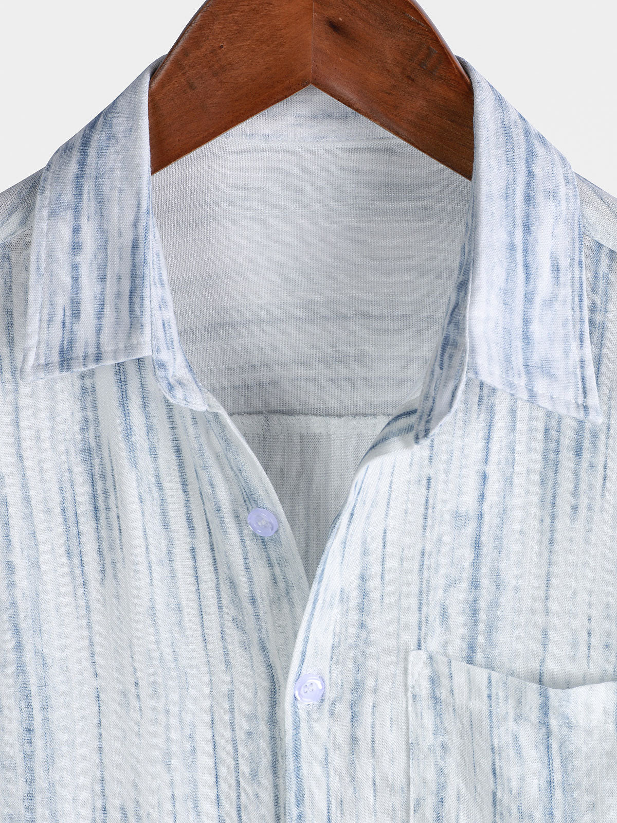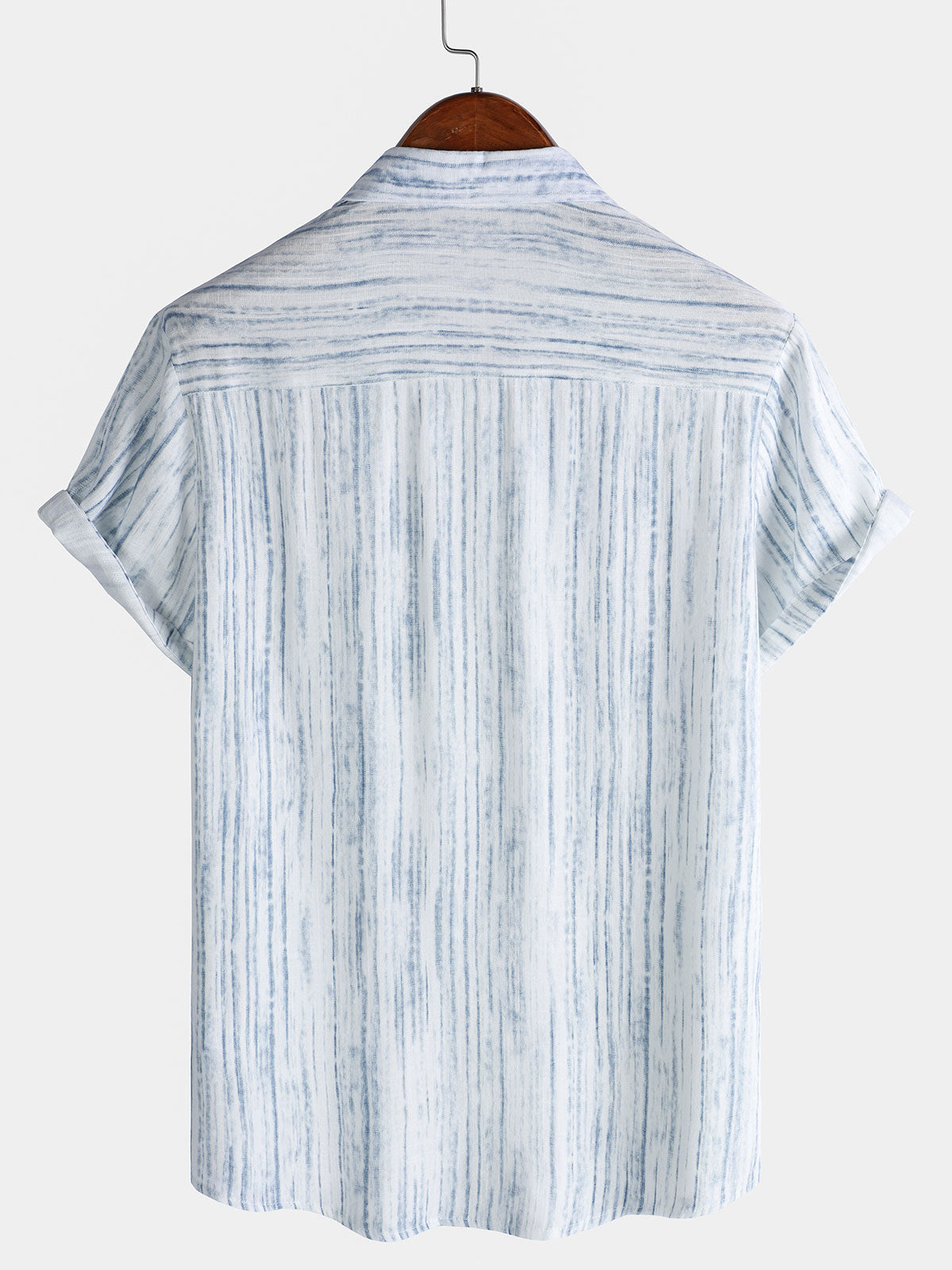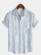 Men's Breathable Short Sleeve Pocket White Striped Shirt