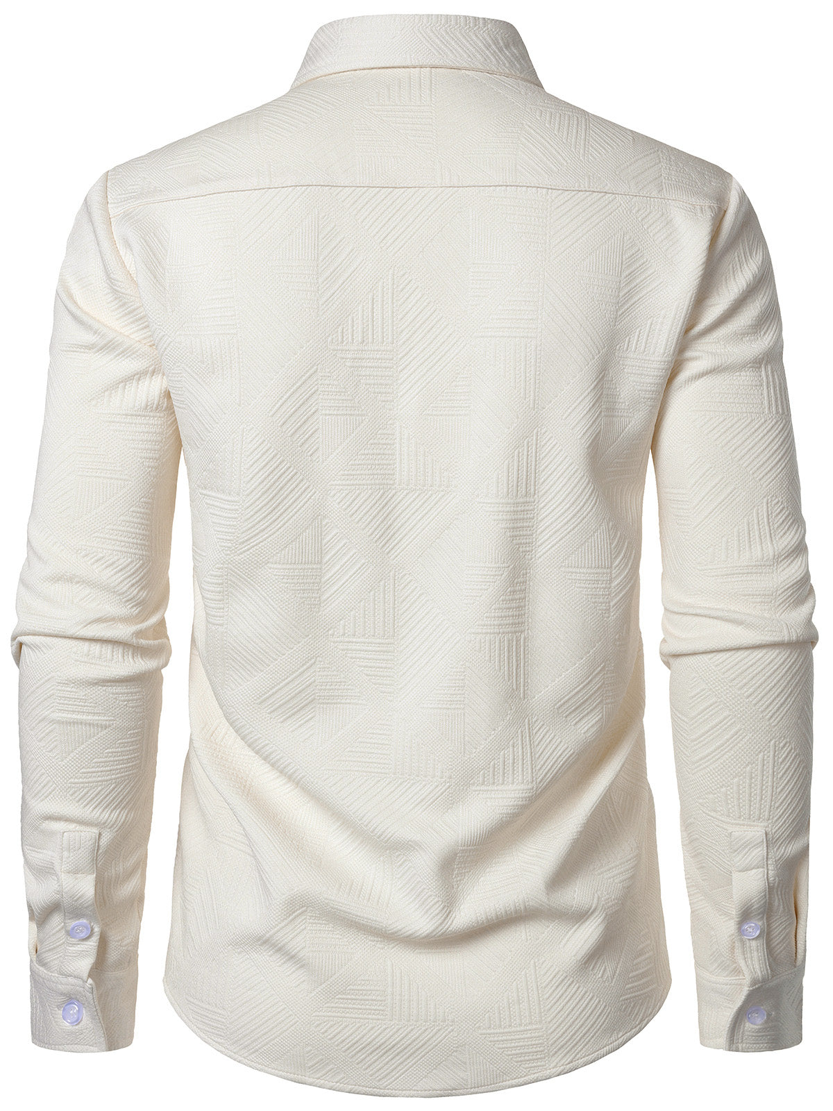 Men's Casual Geometric Beige Long Sleeve Shirt