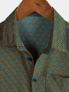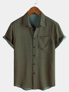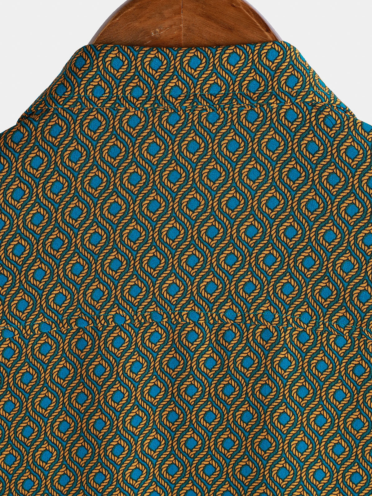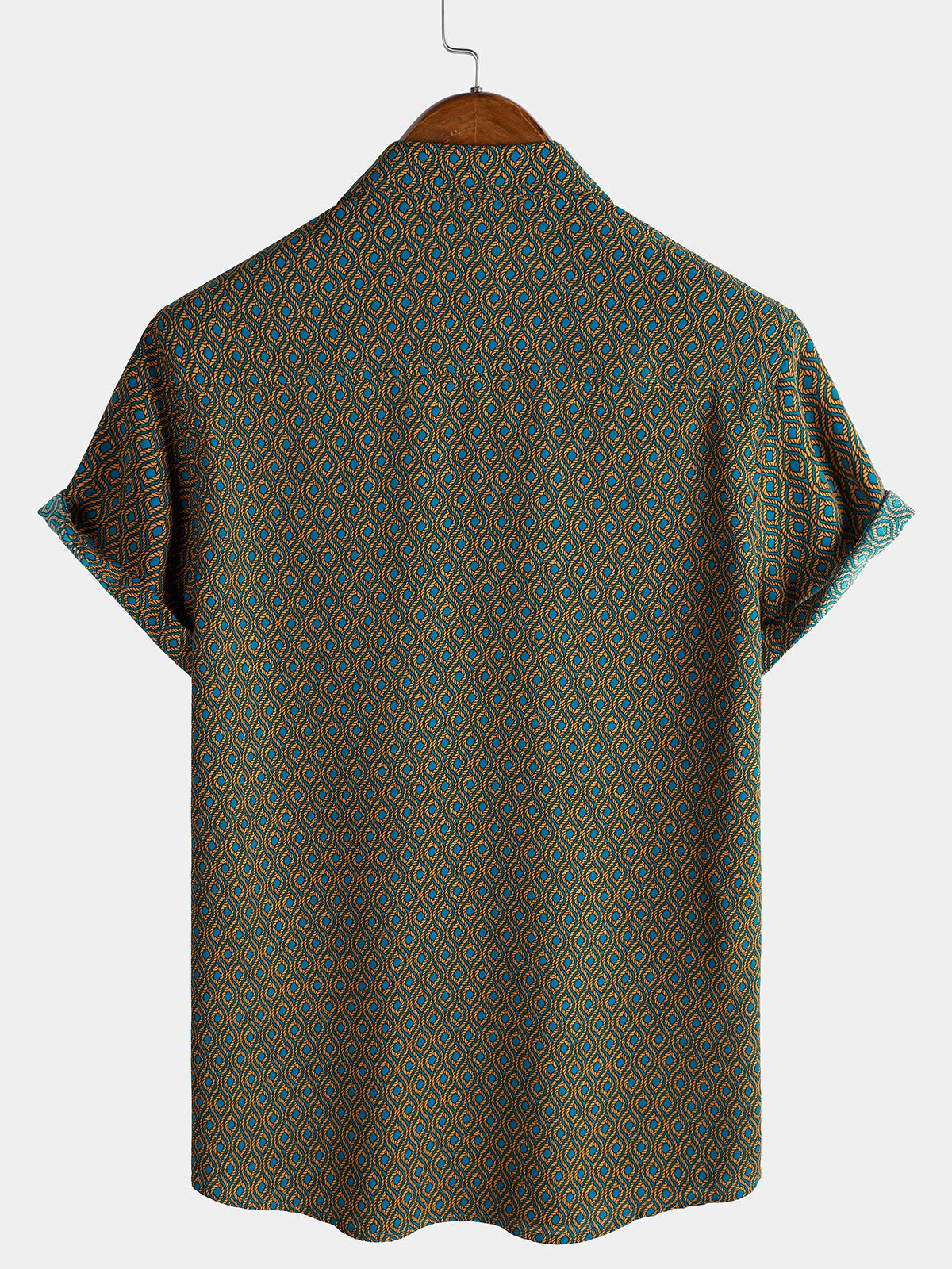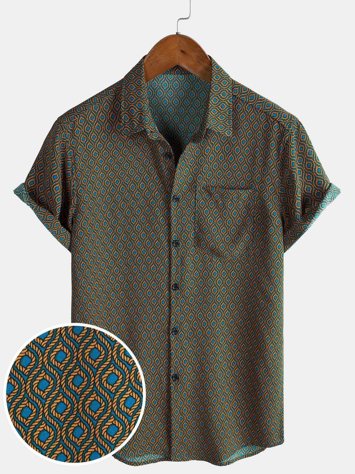 Men's Casual Holiday Blue Short Sleeve Button Up Retro Shirt