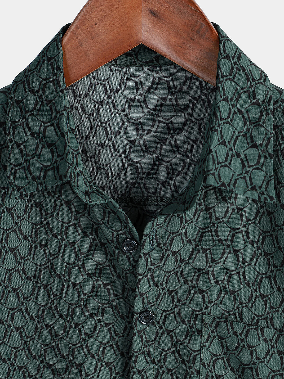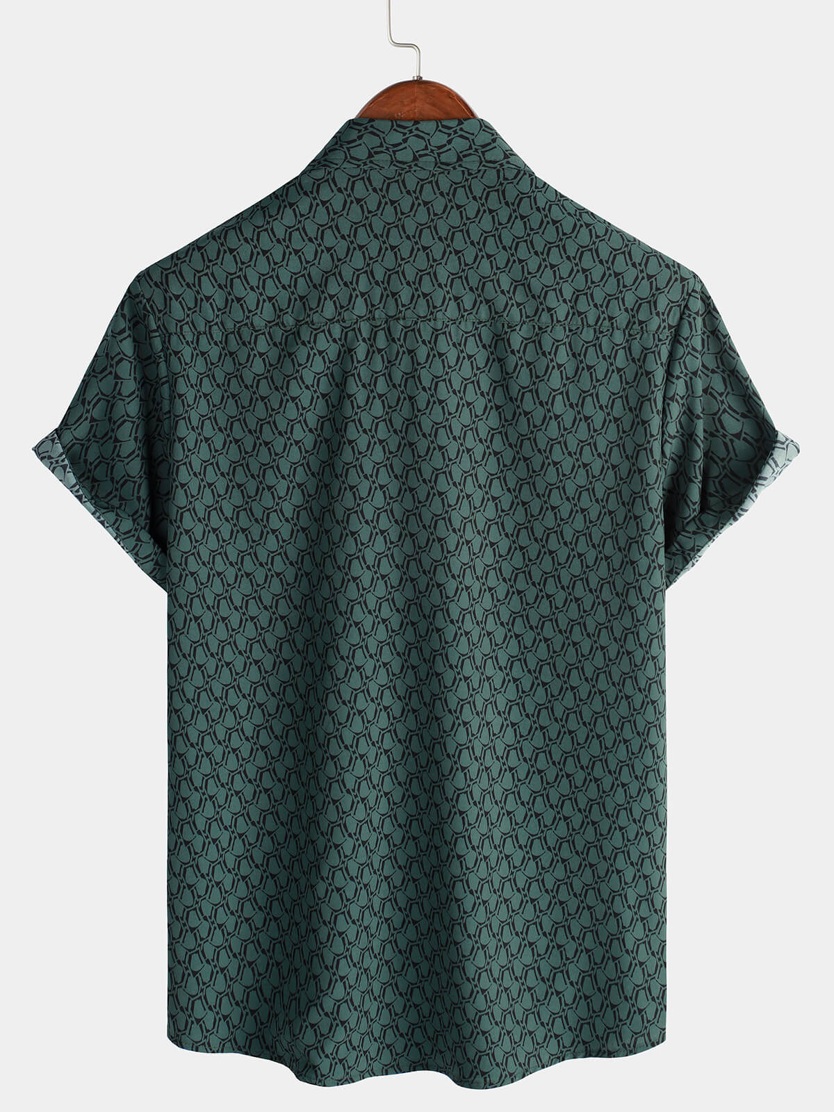 Men's Casual Holiday Short Sleeve Green Button Up Shirt