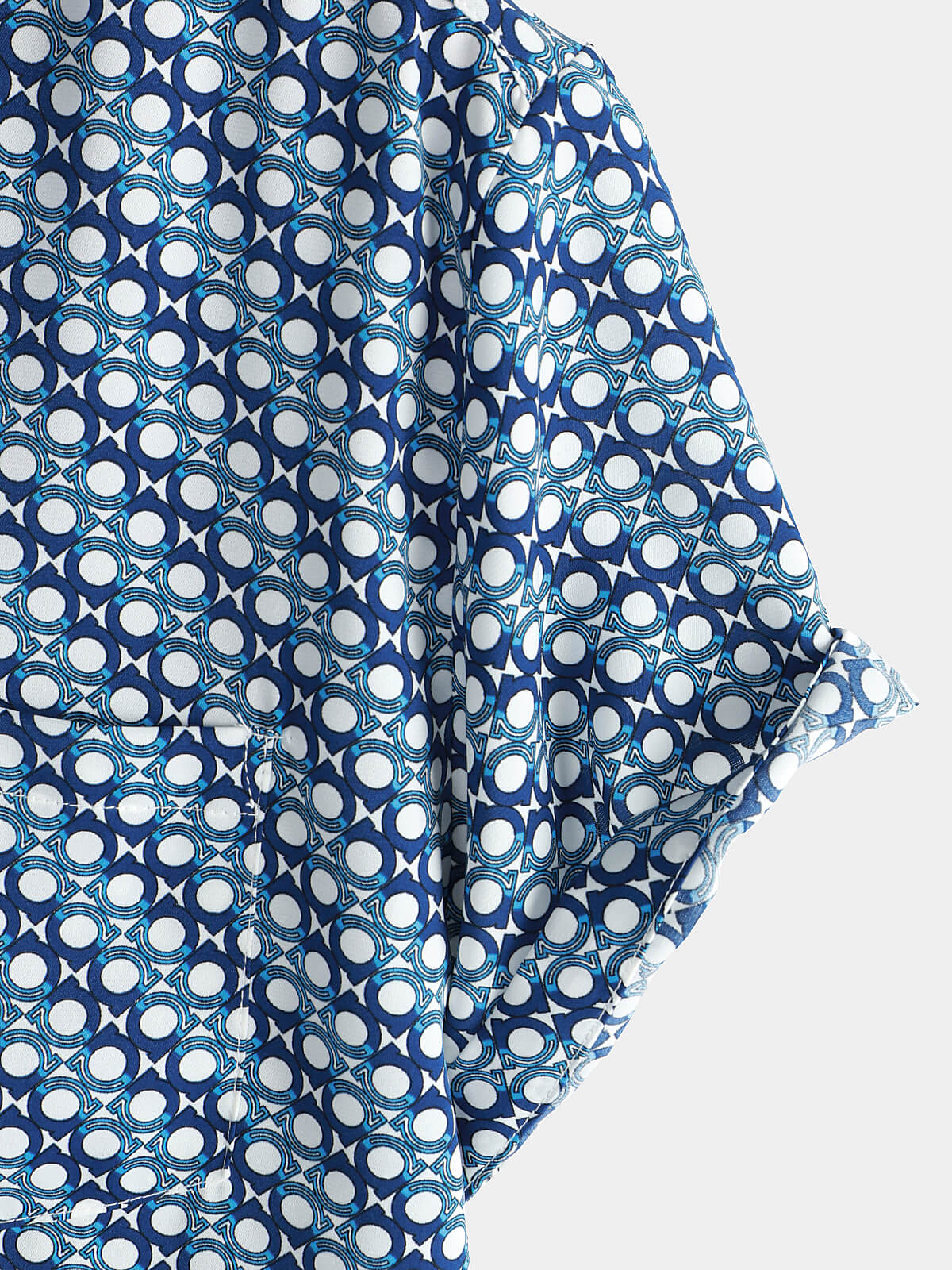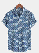 Men's Casual Holiday Summer Short Sleeve Blue Button Up Shirt
