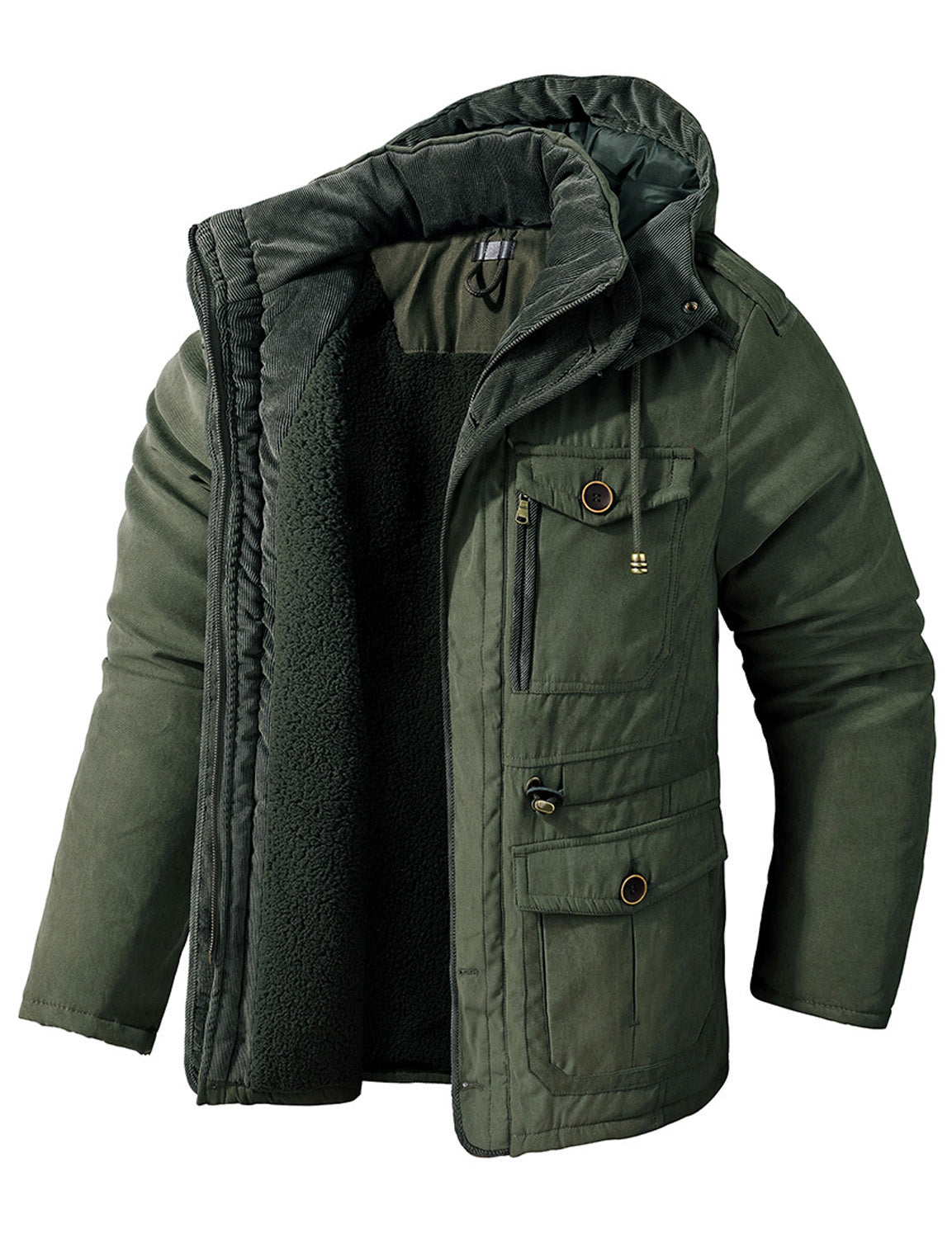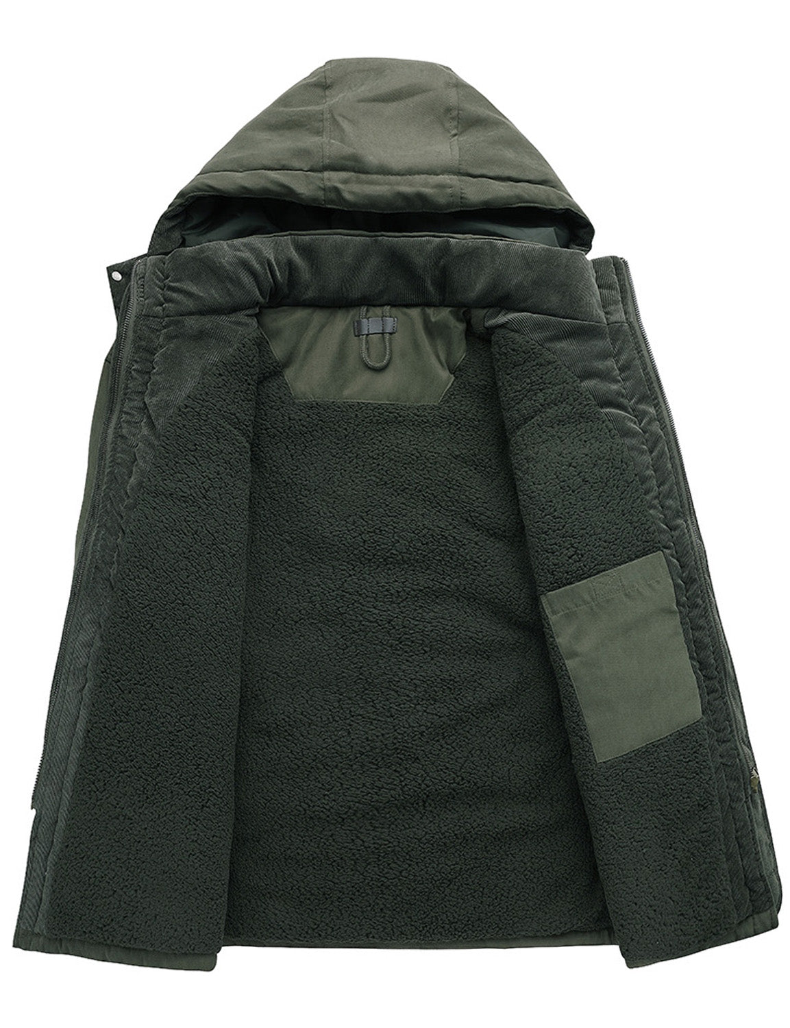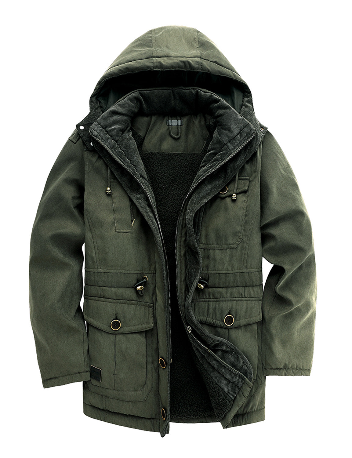 Men's Casual Hooded Sherpa Lined Windproof Coat Warm Winter Jacket