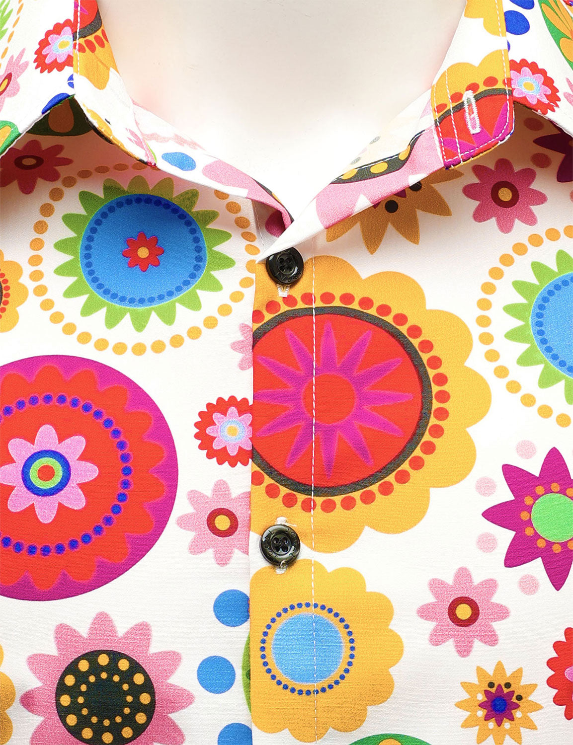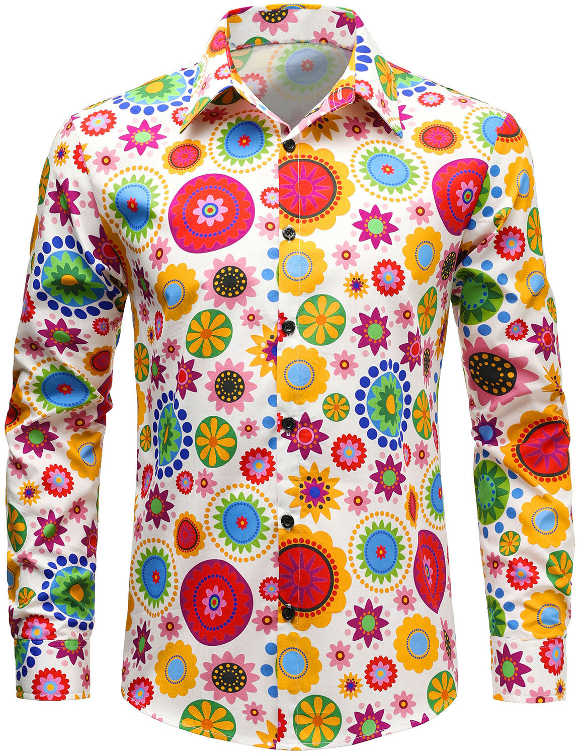 Men's Cotton Floral Disco Party Button Up Long Sleeve Shirt