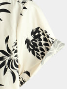 Men's Cotton Pineapple Print Summer Hawaiian Beach Beige Button Up Short Sleeve Shirt