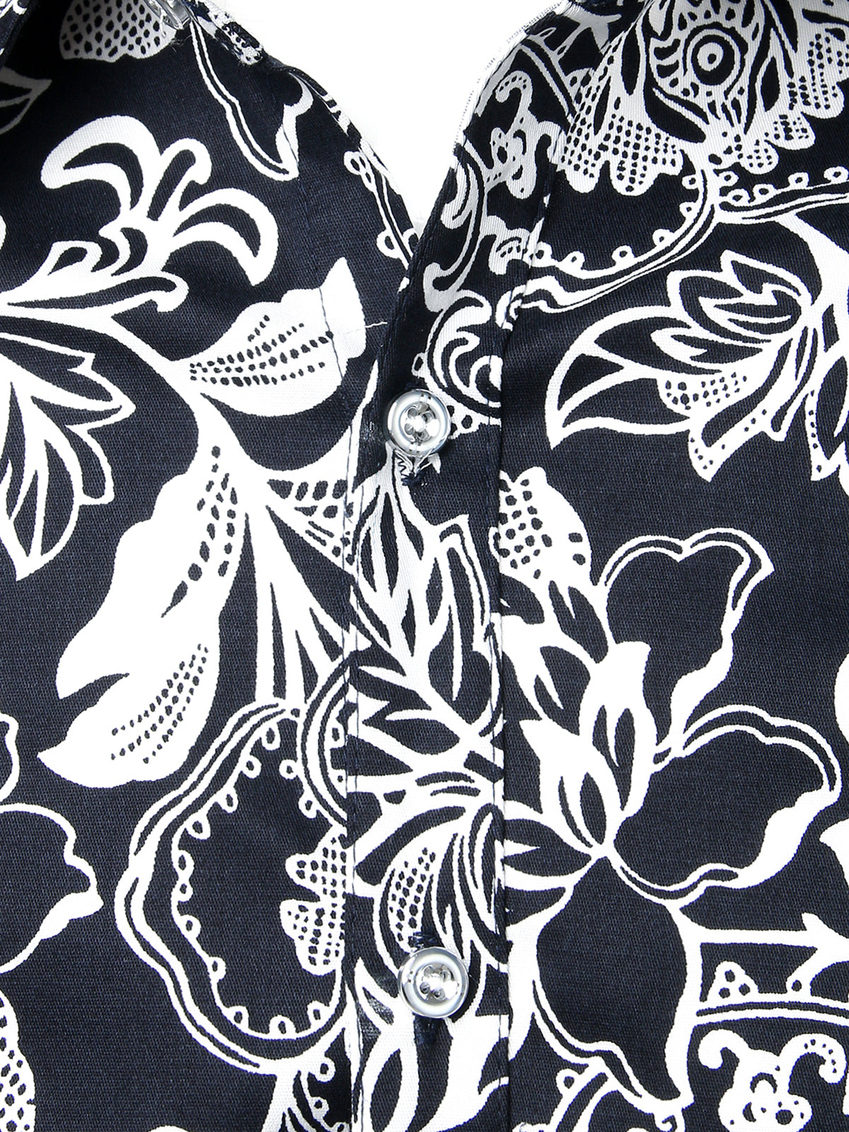 Men's Floral Cotton Casual Button Up Long Sleeve Shirt