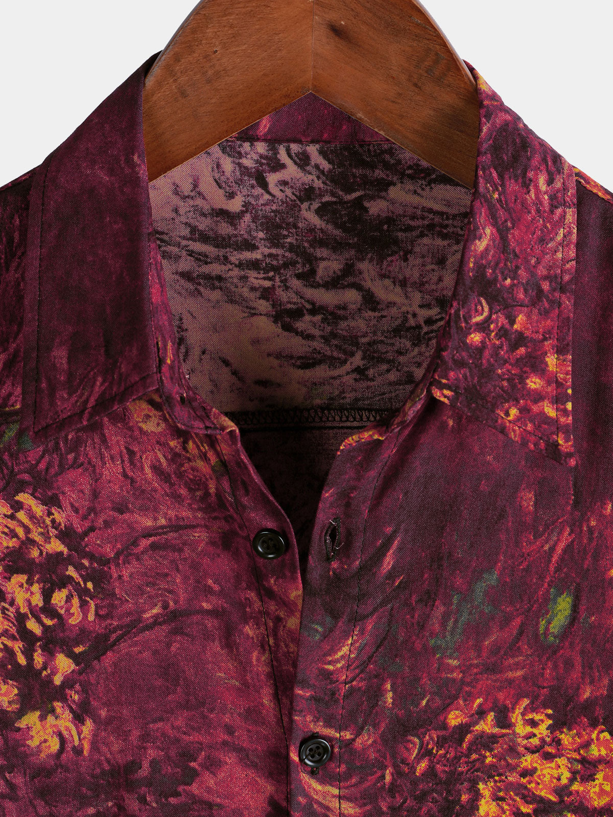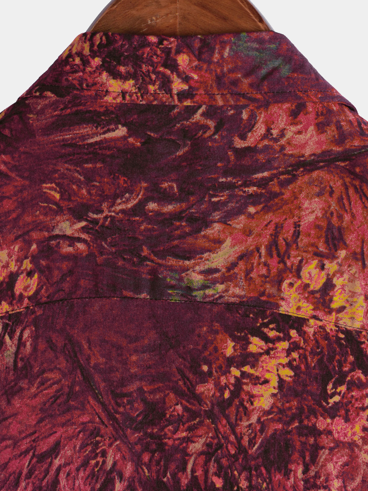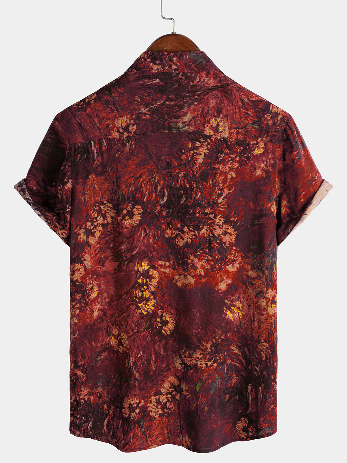 Men's Red Retro Holiday Breathable Hawaiian Short Sleeve Shirt