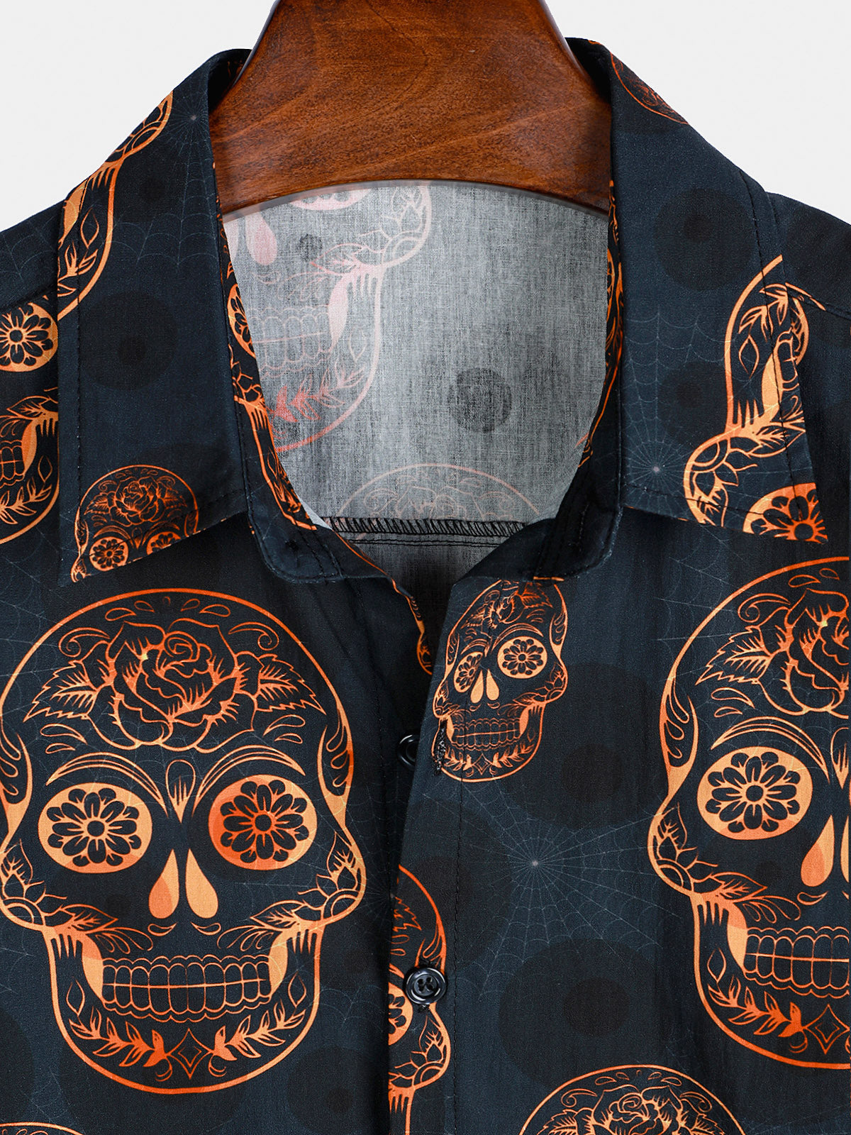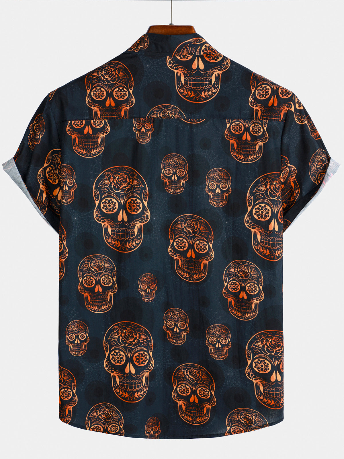 Men's Skull Hawaiian Camp Cool Short Sleeve Shirt