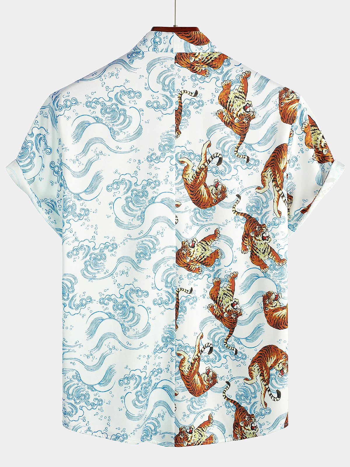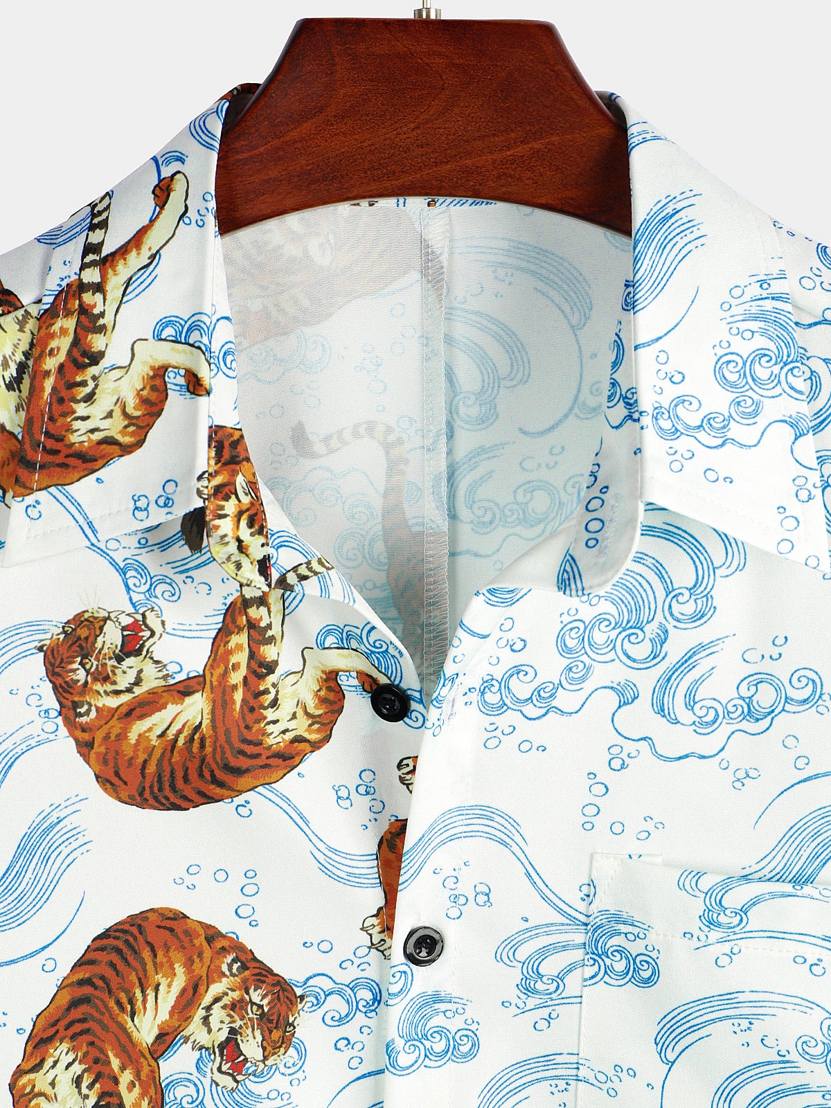 Men's Tiger Print Summer Pocket Short Sleeve Shirt