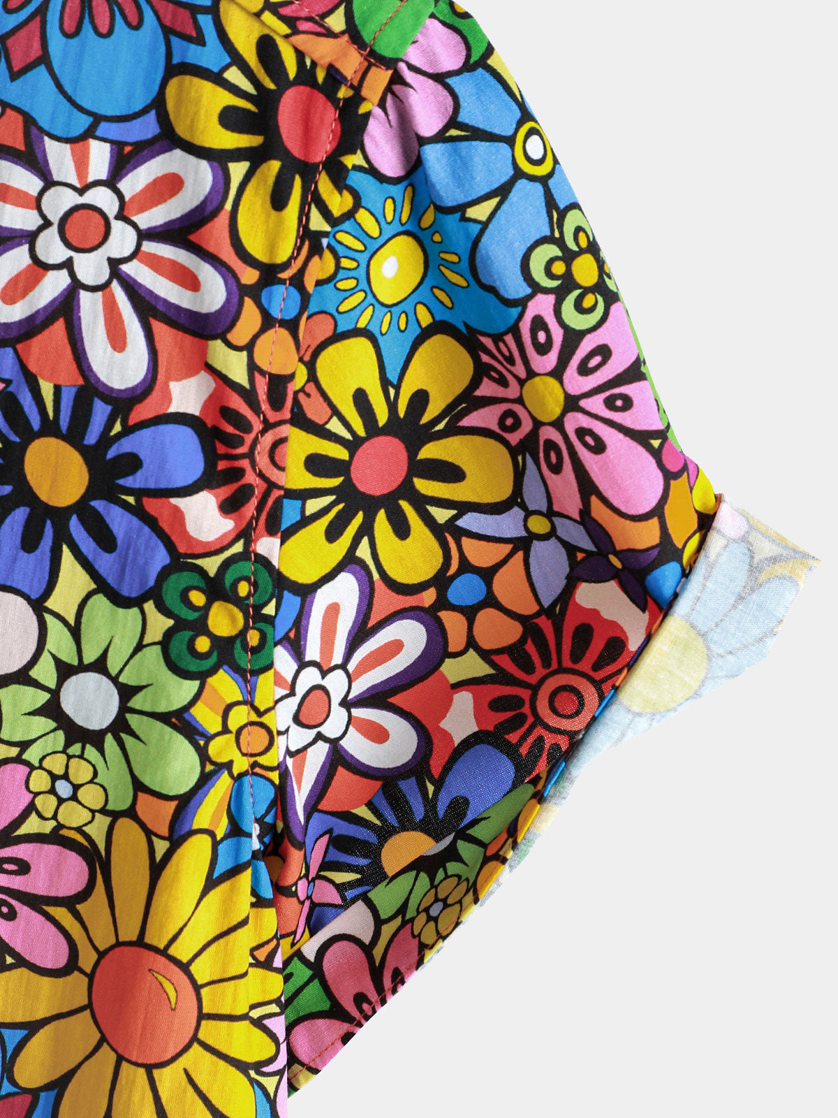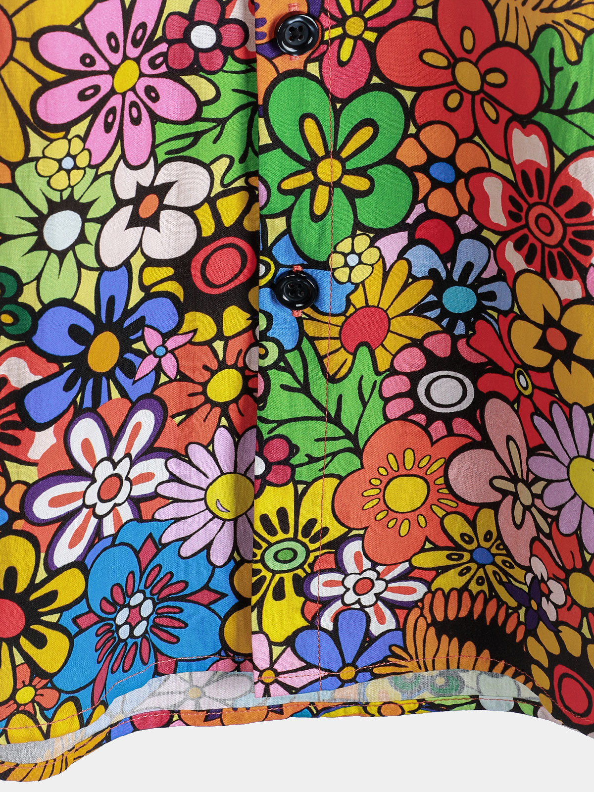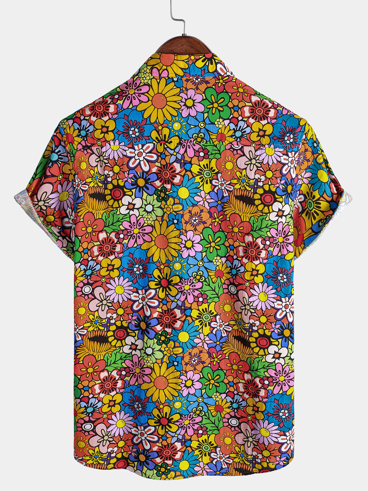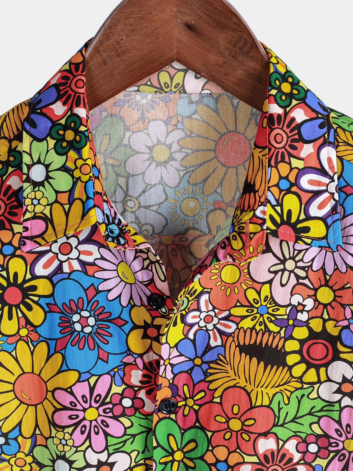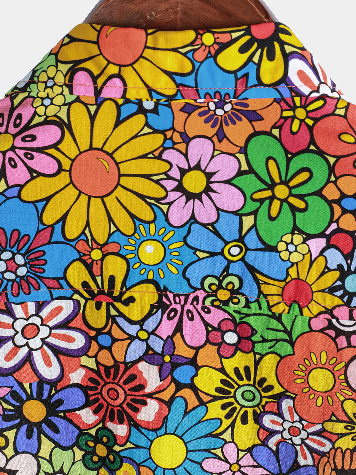 Men's Vintage 70s Floral Print Breathable Cotton Pocket Shirt