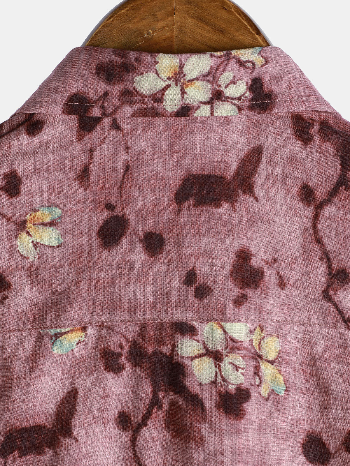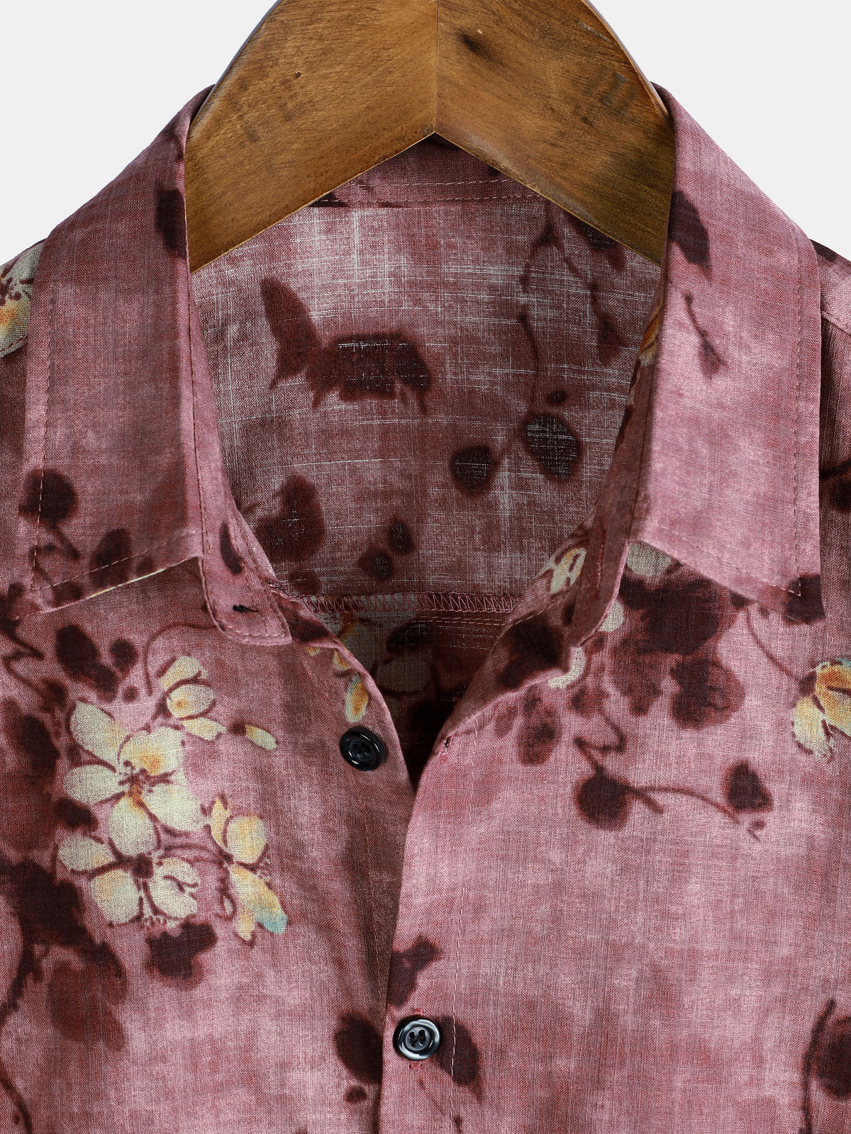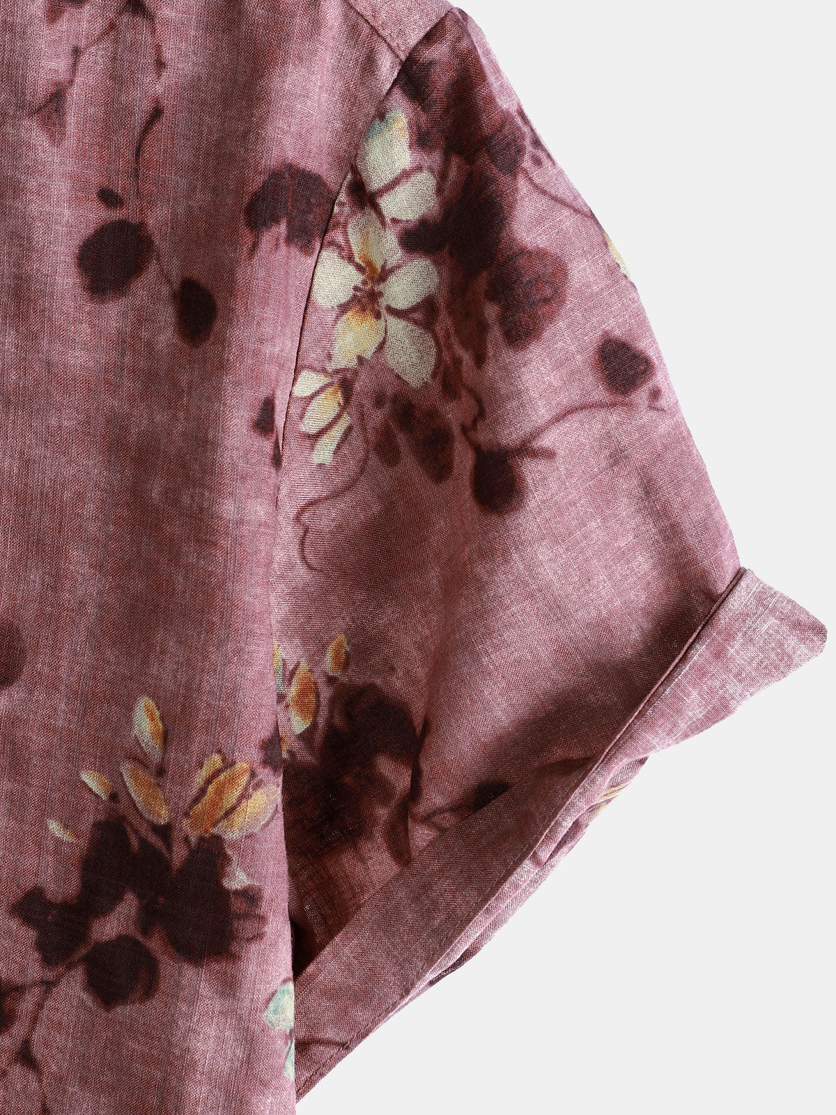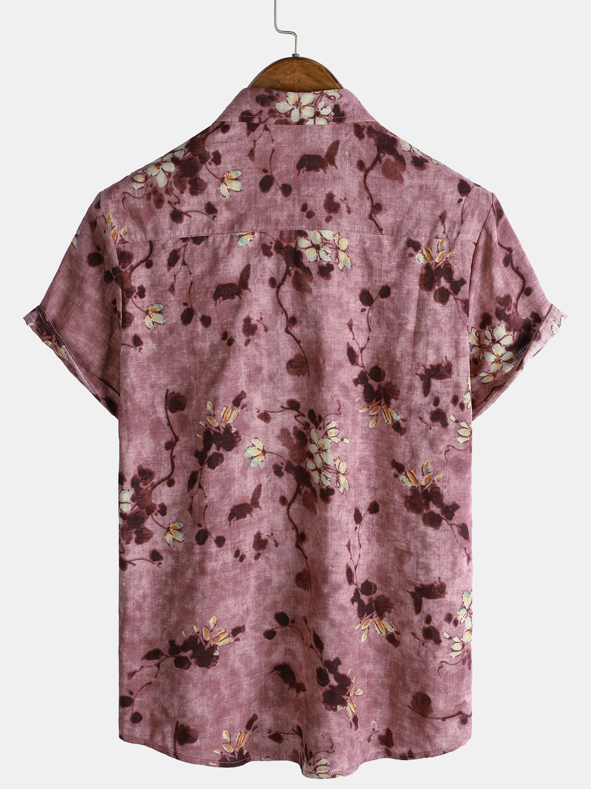 Men's Vintage Floral Cotton Breathable Short Sleeve Button Up Shirt