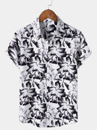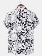Men's Tropical White Floral Button Up Short Sleeve Shirt