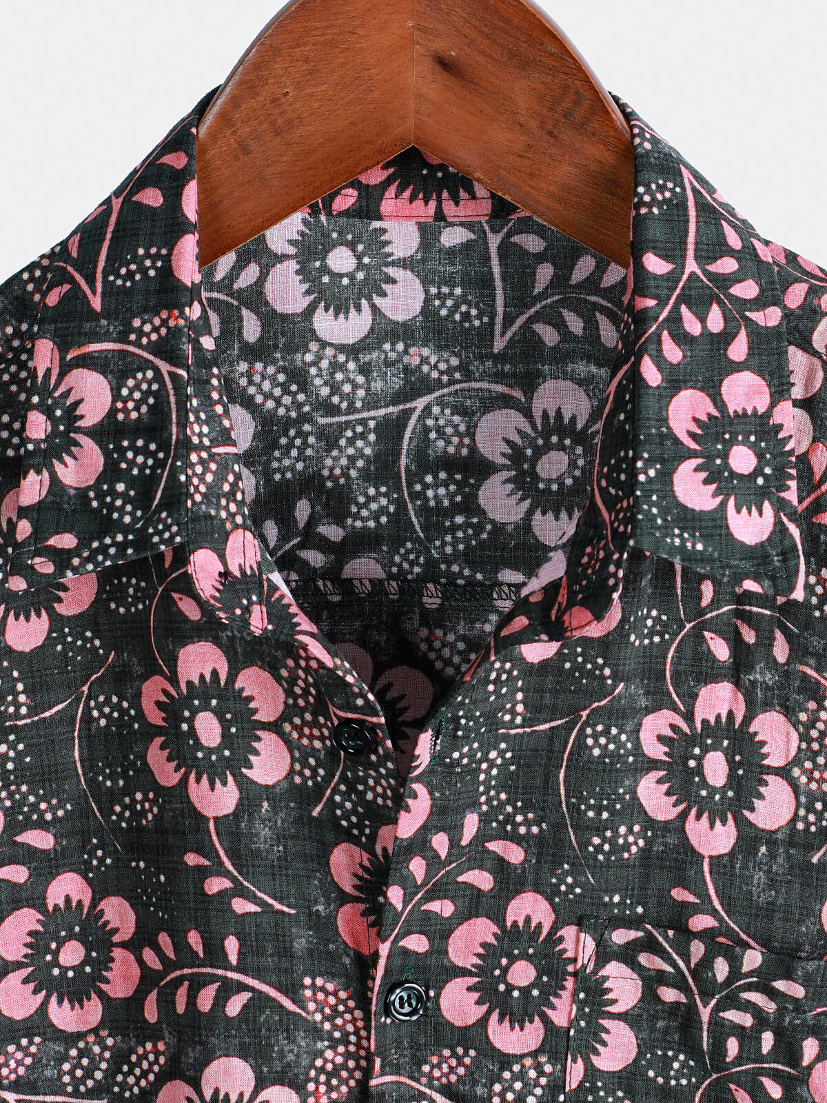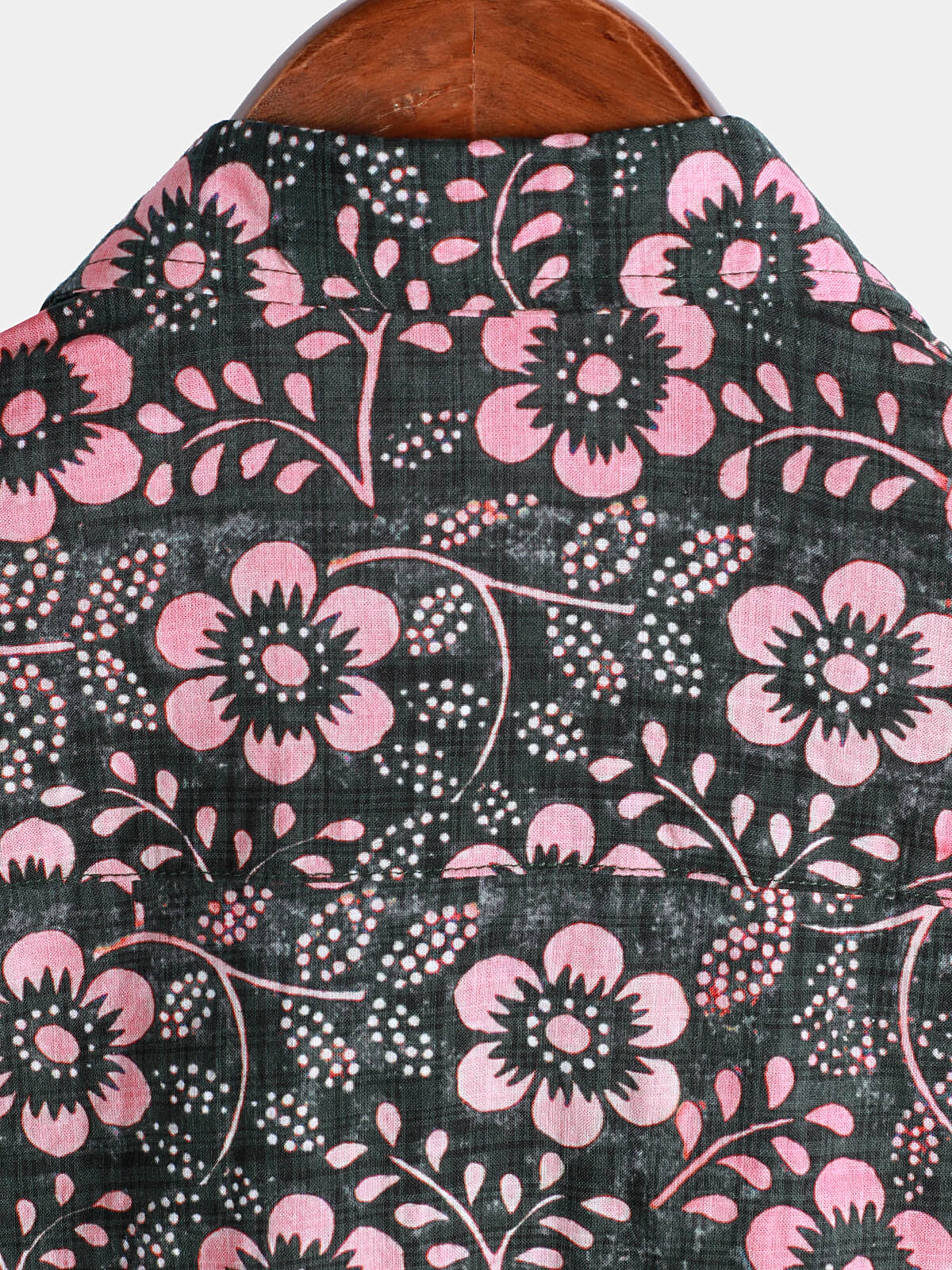 Men's Pink Floral Pocket Short Sleeve Hawaiian Shirt