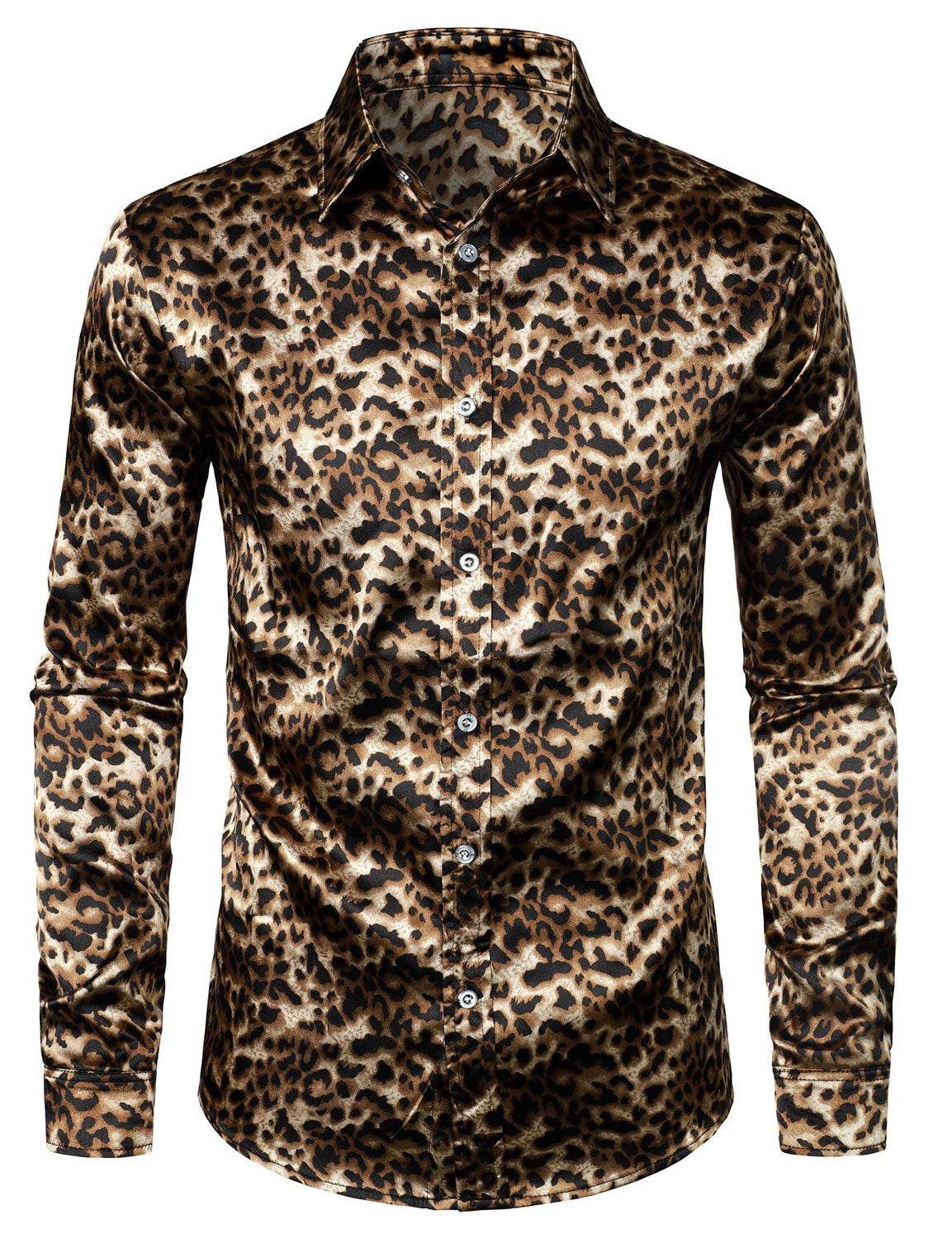 Men's Retro Leopard Button Up Brown Long Sleeve Shirt
