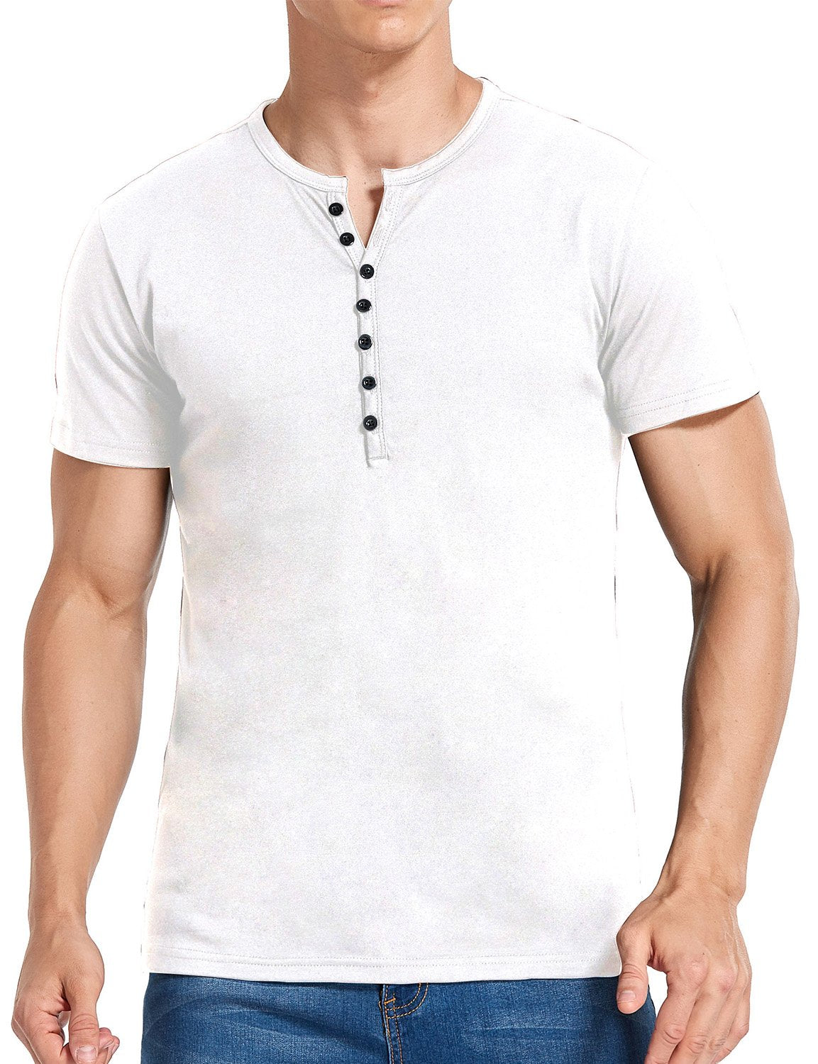 White Men's Casual Solid Color Short Sleeve Henley T-shirt Red Men's Casual Solid Color Short Sleeve Henley T-shirt Green Men's Casual Solid Color Short Sleeve Henley T-shirt Grey Men's Casual Solid Color Short Sleeve Henley T-shirt Black Men's Casual Solid Color Short Sleeve Henley T-shirt Navy Blue Men's Casual Solid Color Short Sleeve Henley T-shirt + 3 more