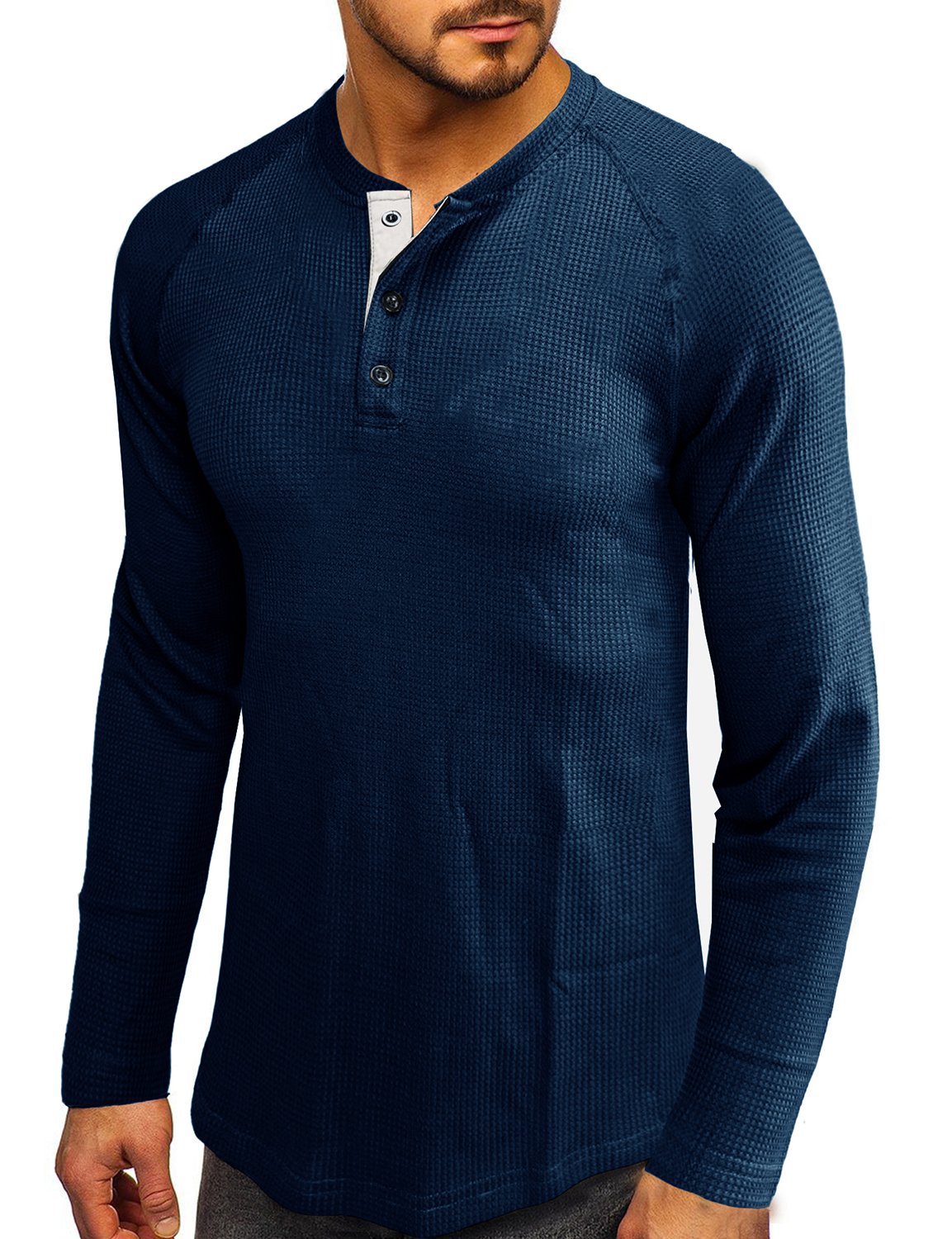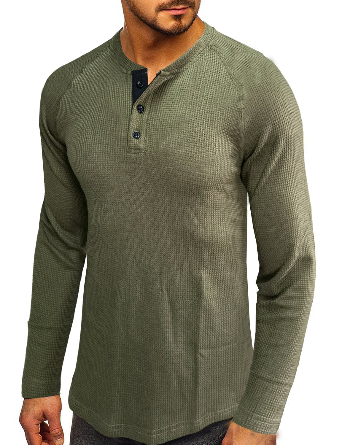 Men's Solid Color Cotton Casual Henry Collar Pocket Long Sleeve T-Shirt
