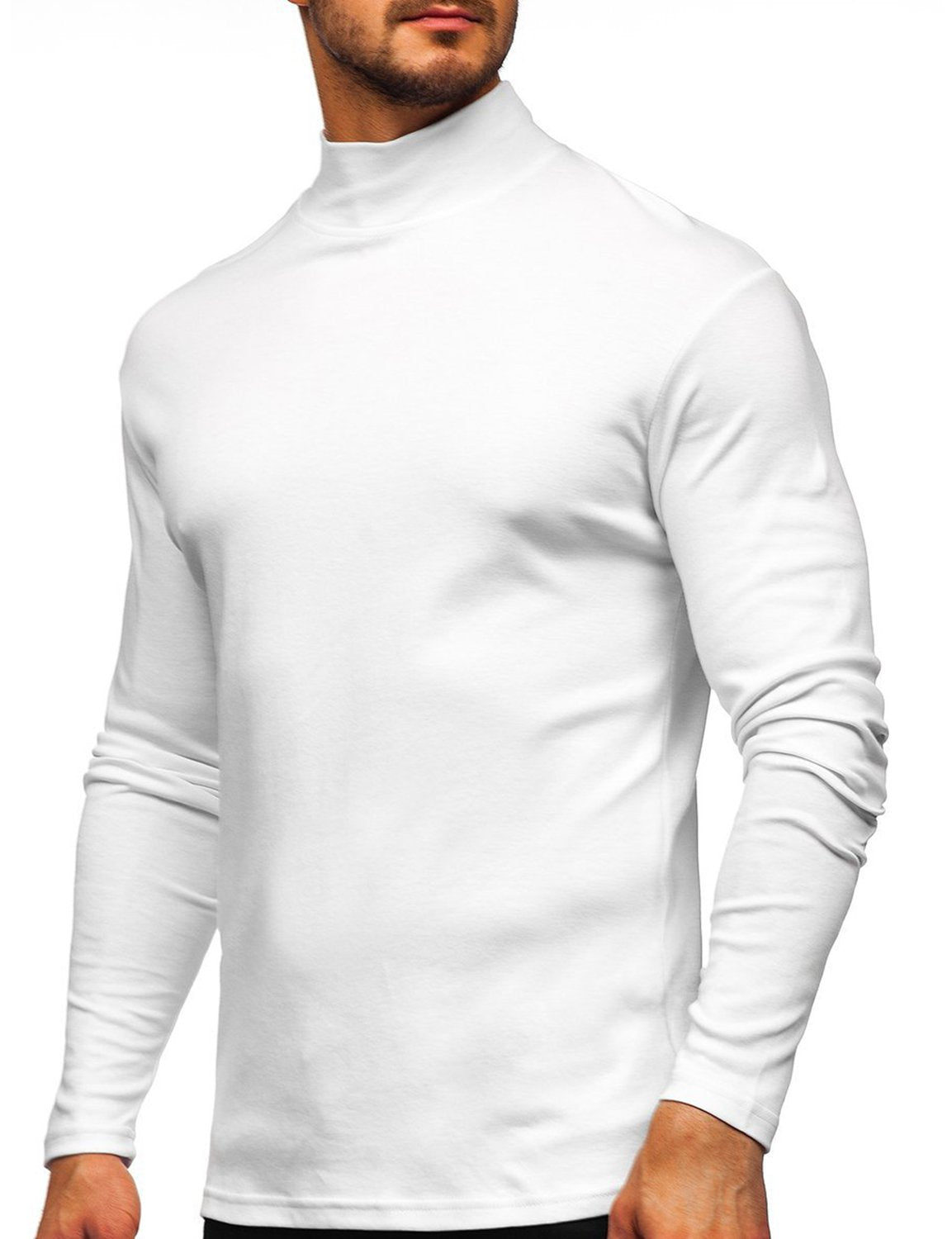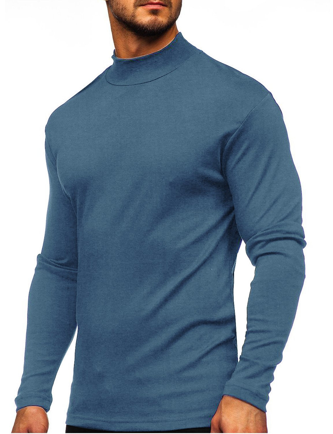 Men's Casual High-Neck Solid Color Long Sleeve T-shirt